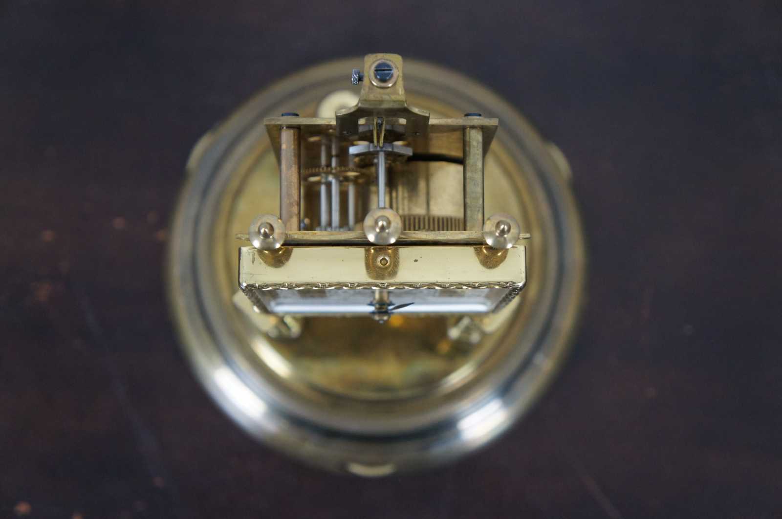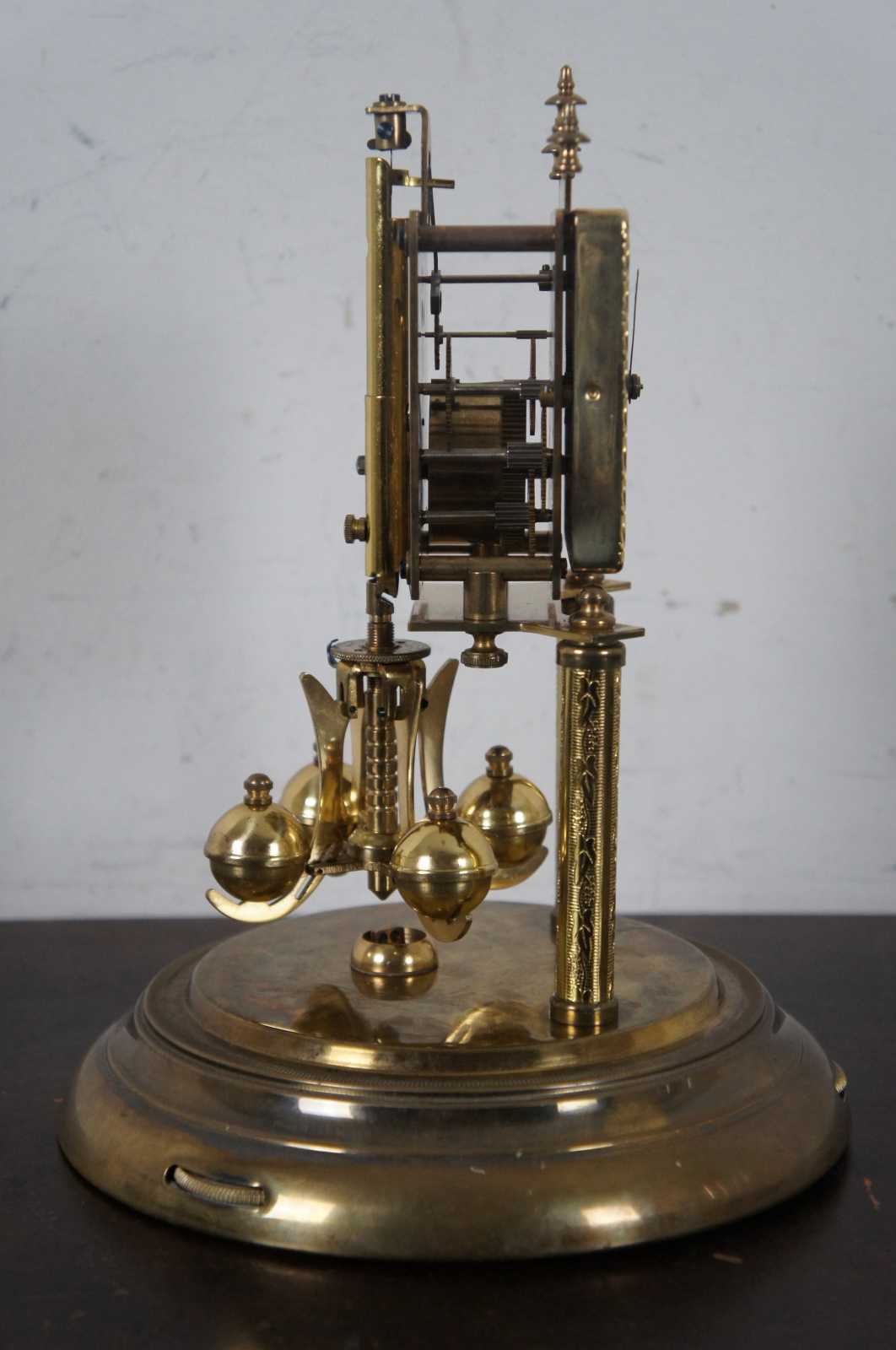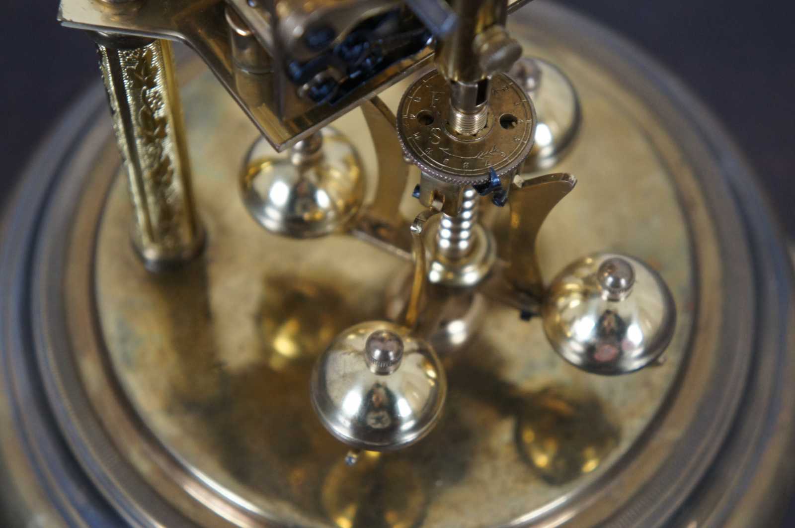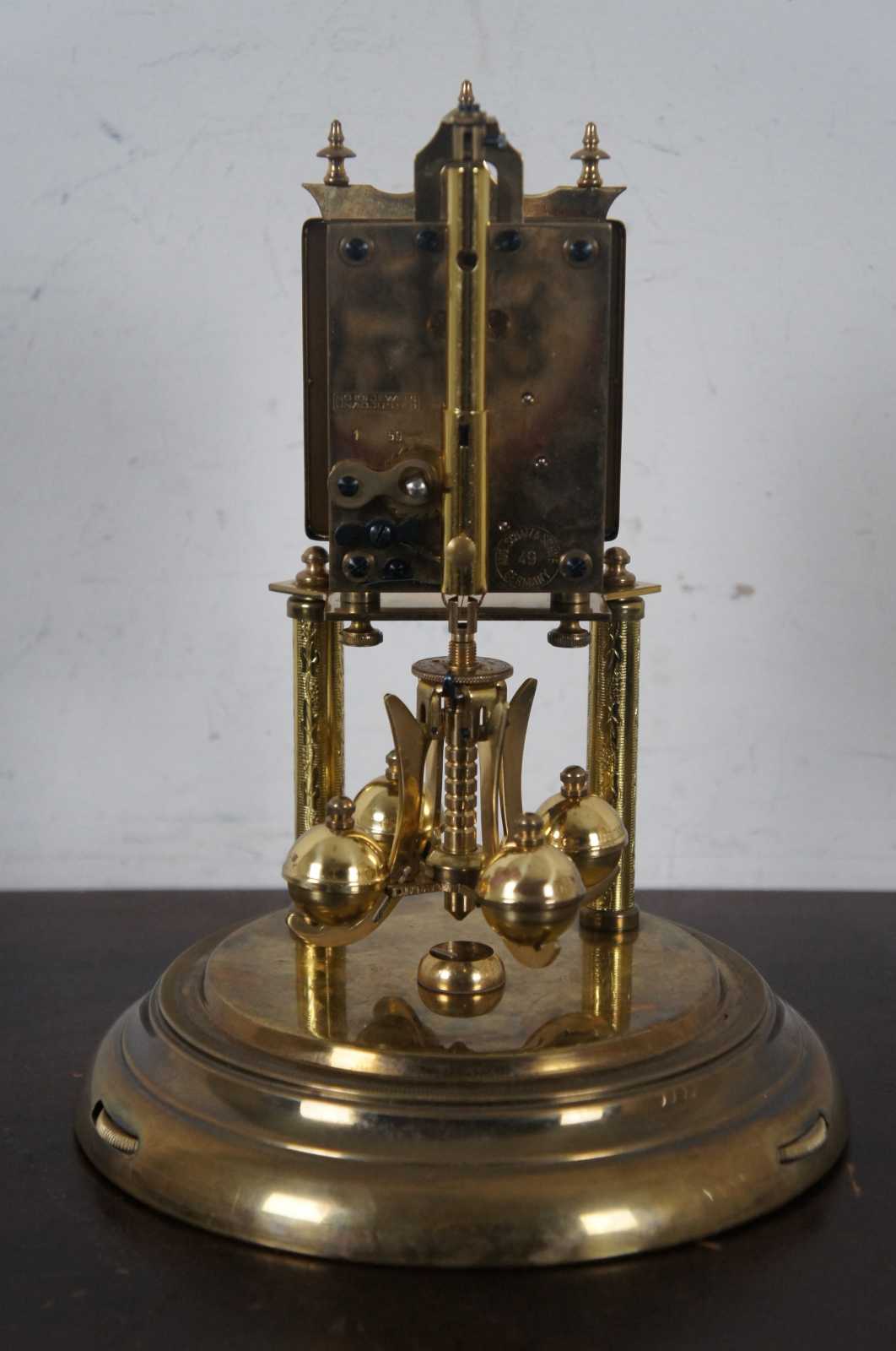 1950s mid century Schatz & Sohne 400 day brass anniversary clock with square face, ivy accents and encased in a glass domed bell jar.