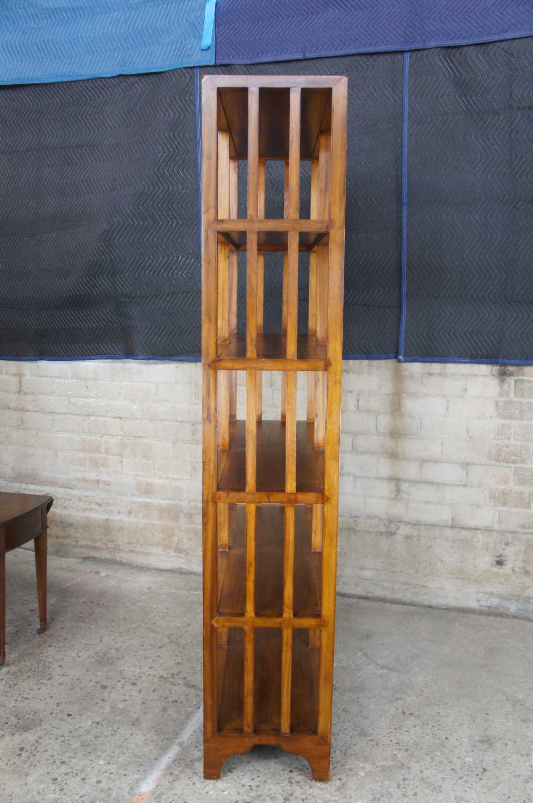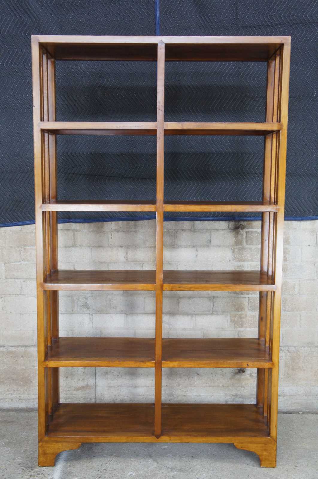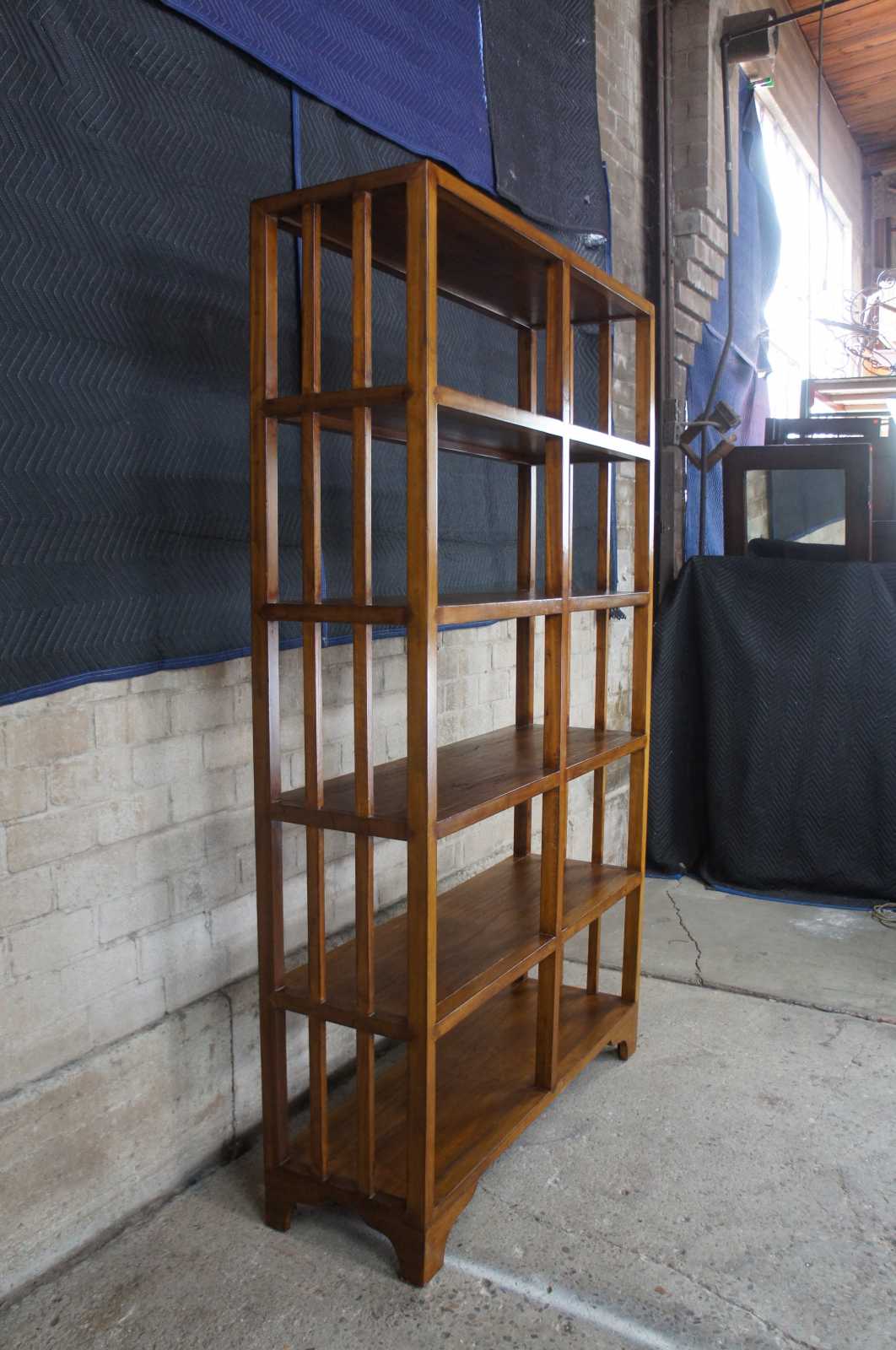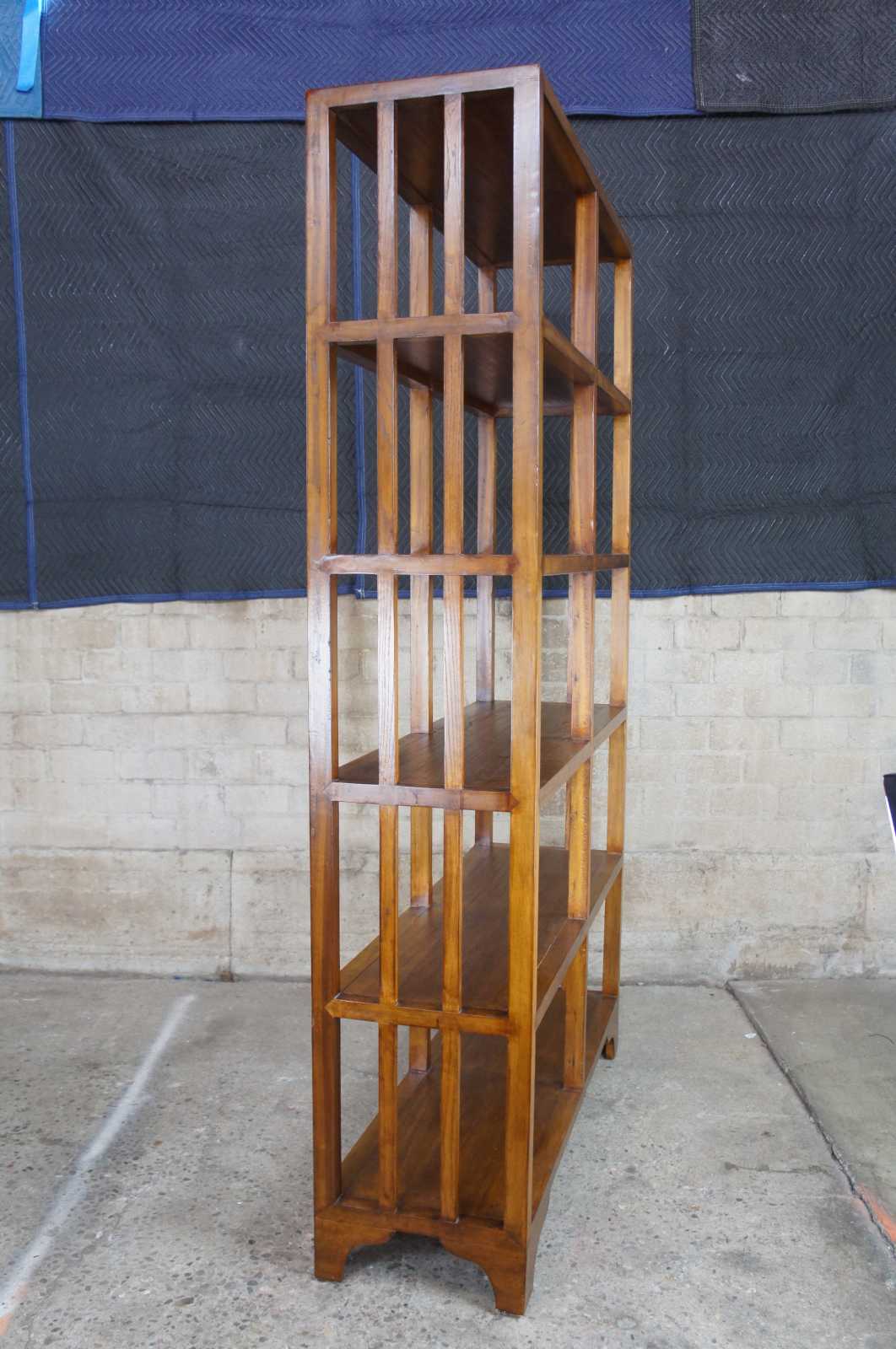 Late 20th century large scale mission style oak bookcase or etagere. Iconic open design with 5 shelves allowing for a plethora of storage.