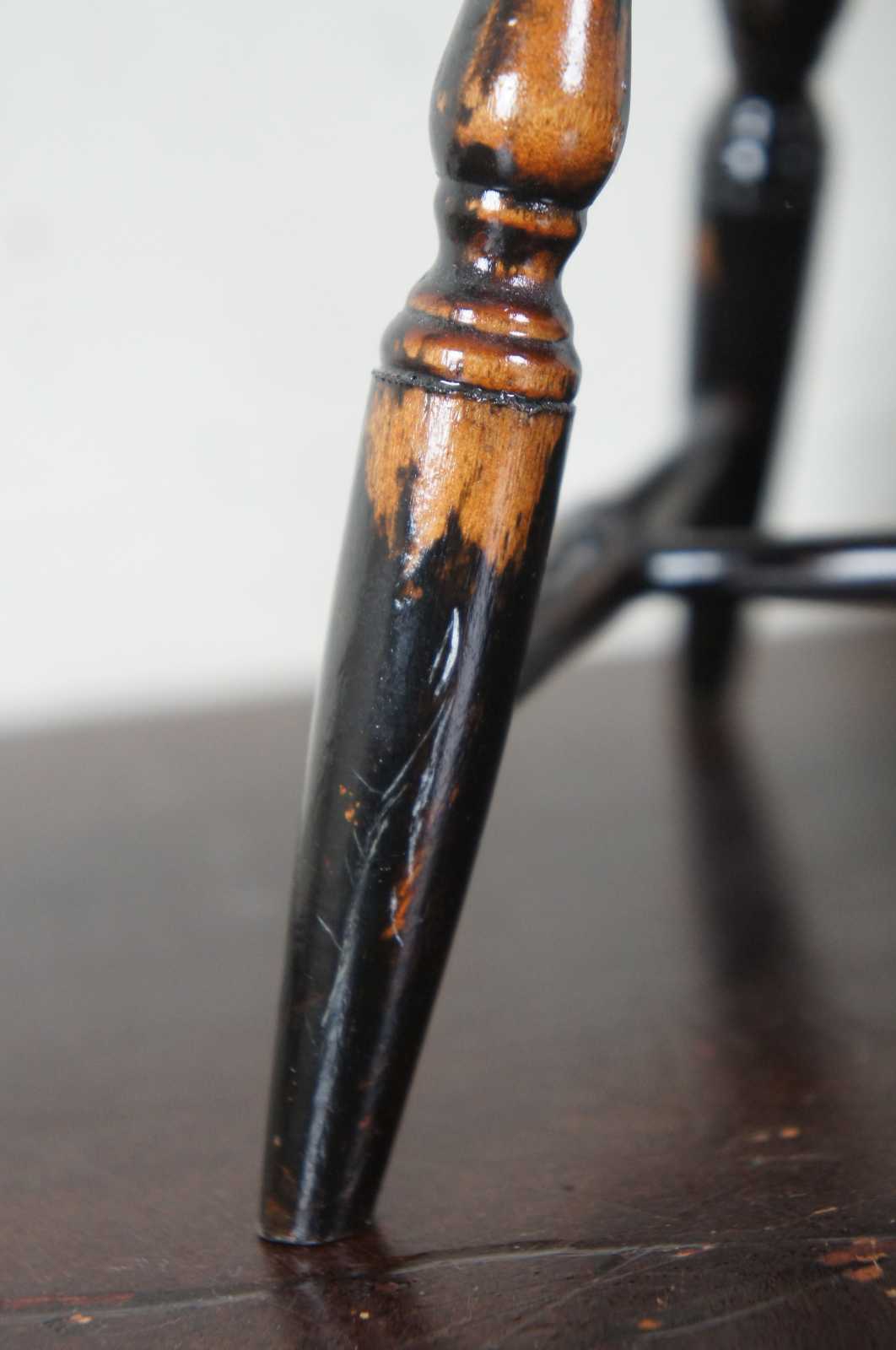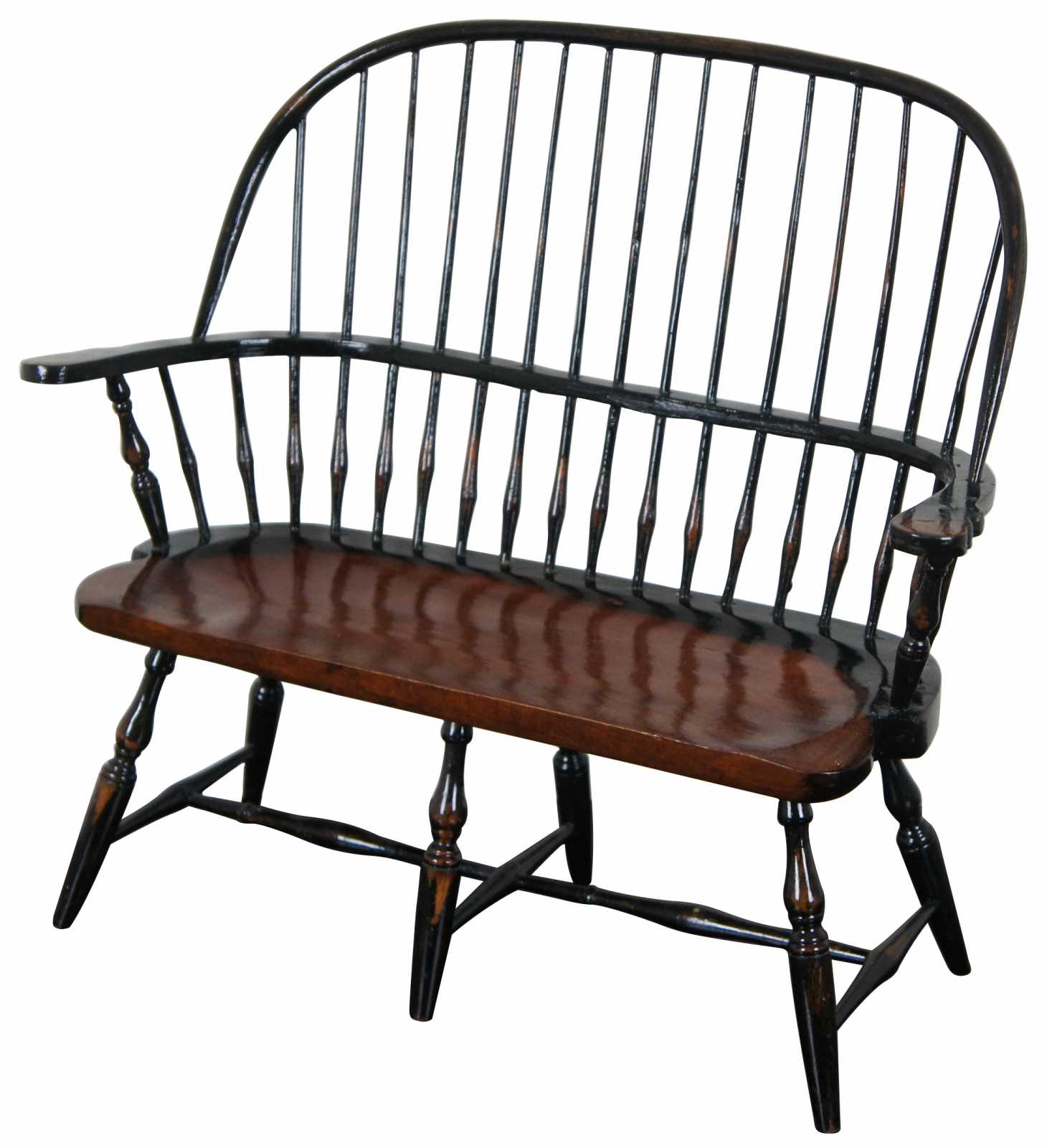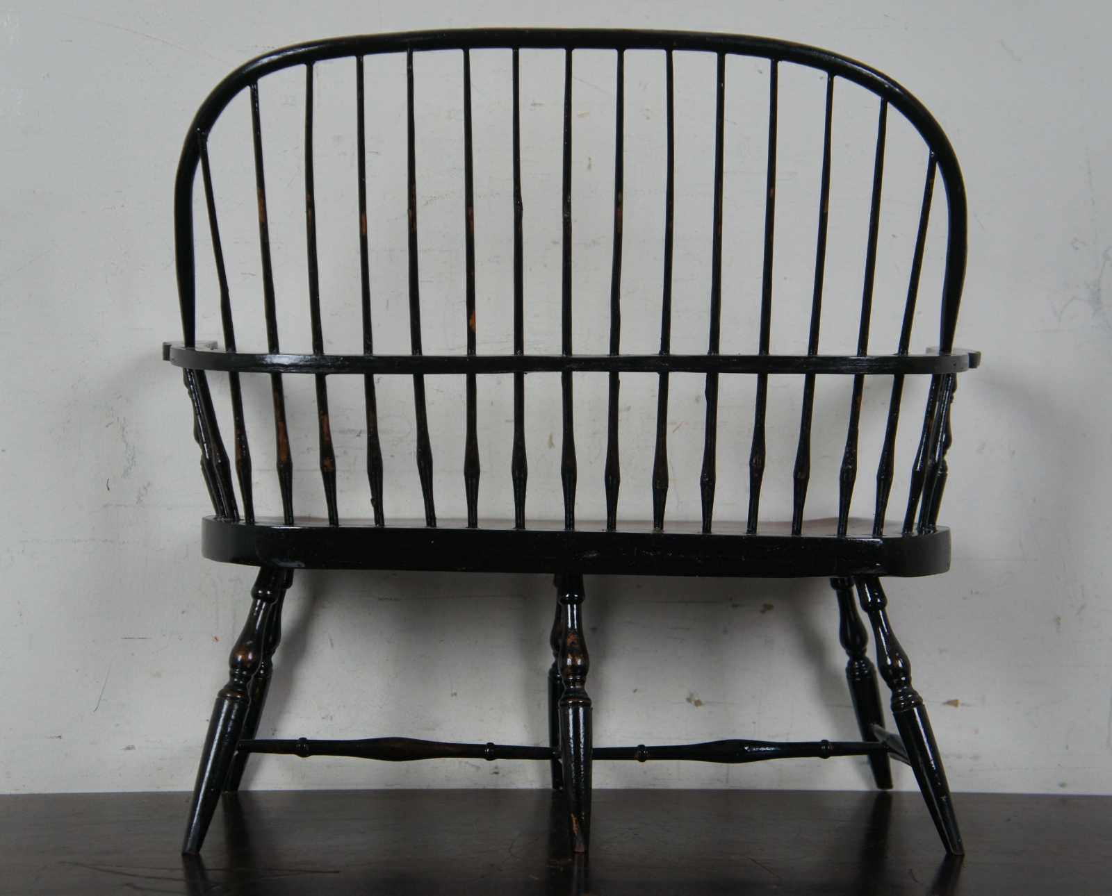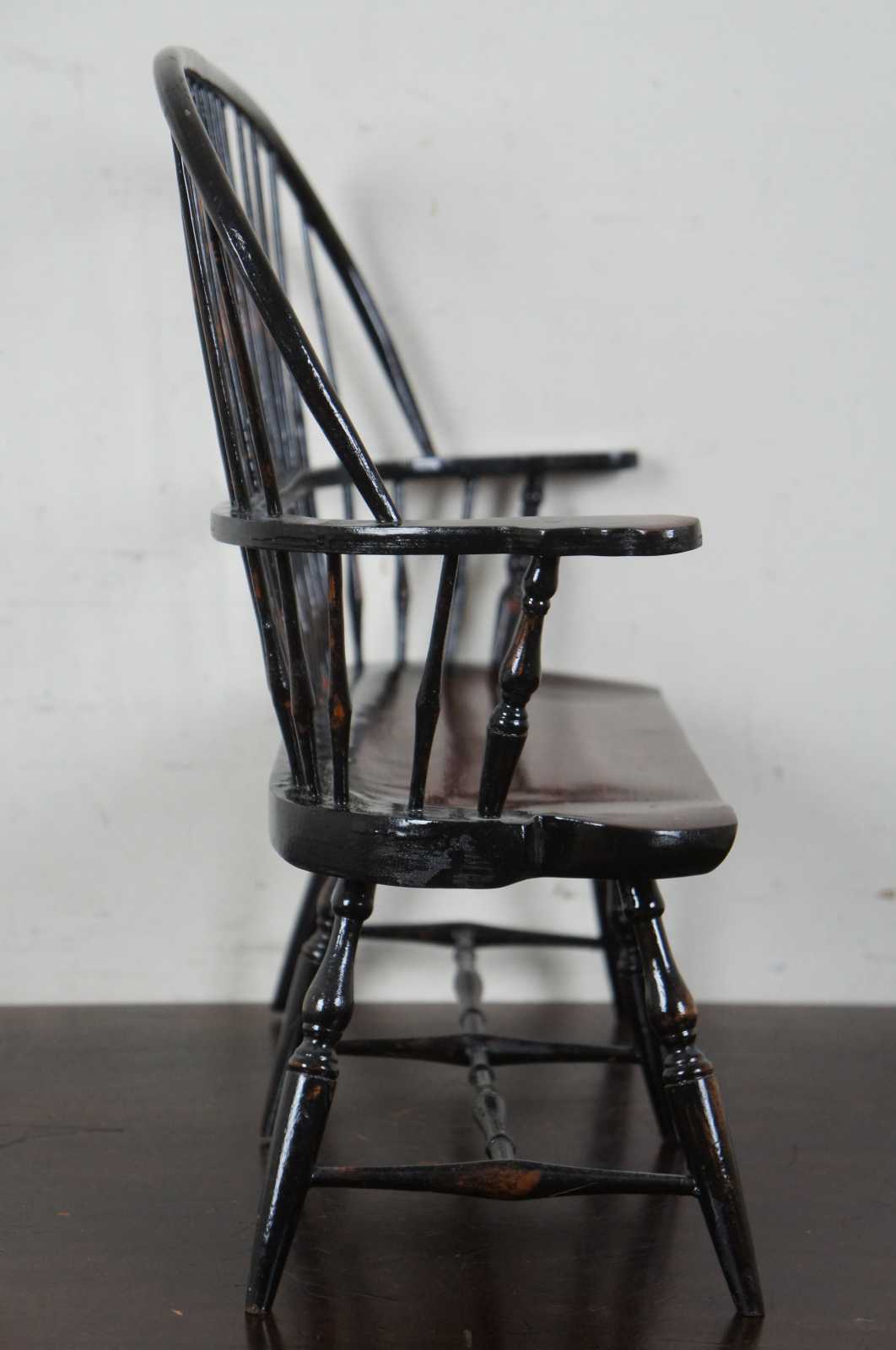 3 Available – Vintage painted wood windsor style barrel back salesman sample doll house bench with spindle turned legs.