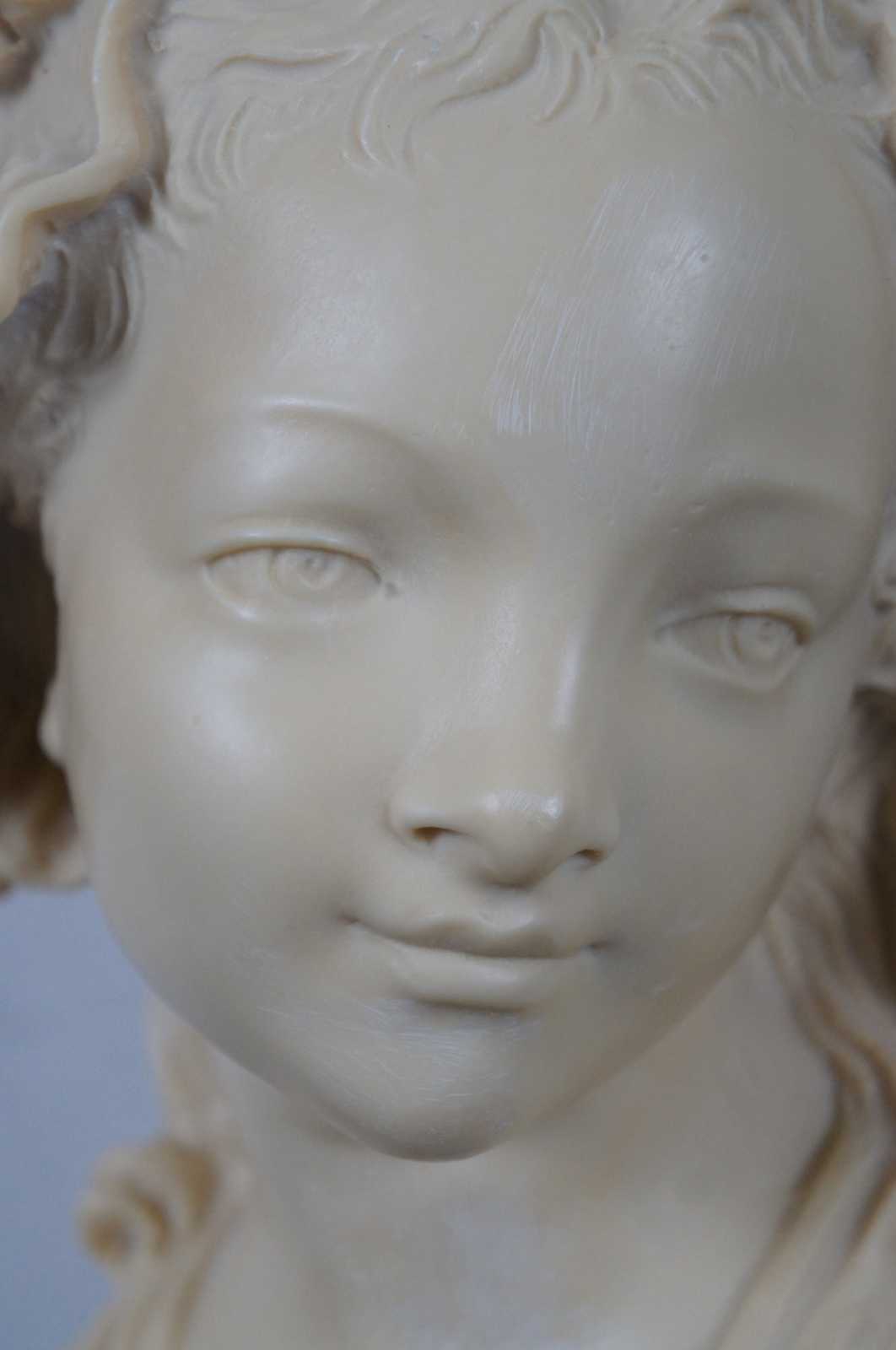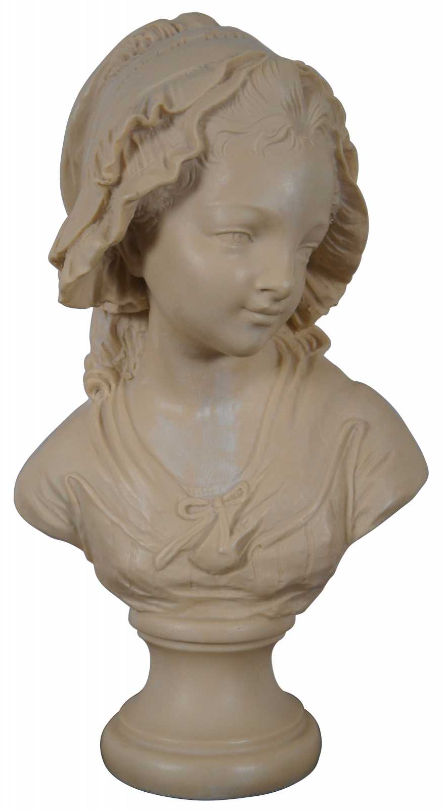 Beautiful bust sculpture of a French peasant girl, signed Grinam Niam Paris along the back shoulder.