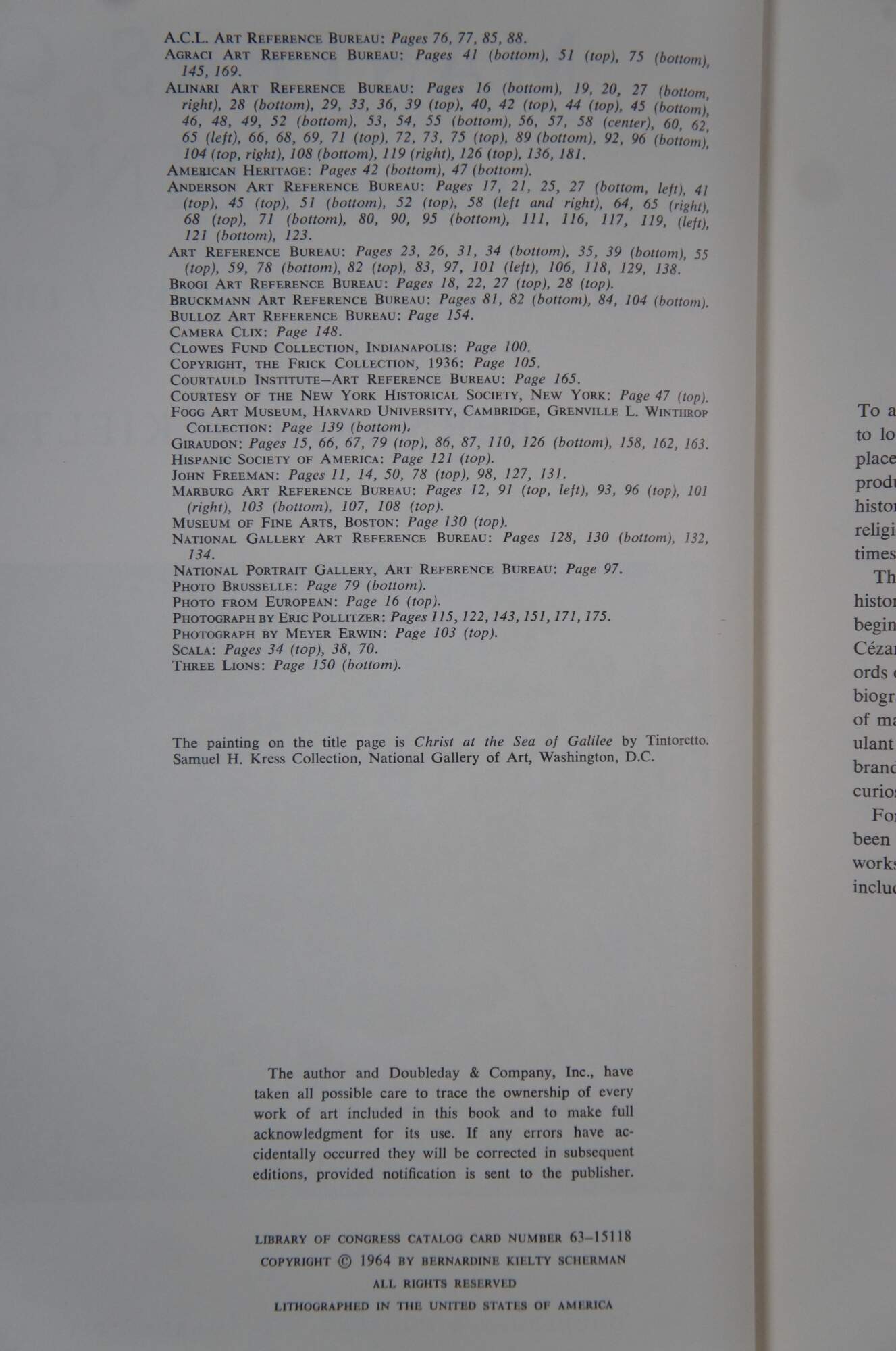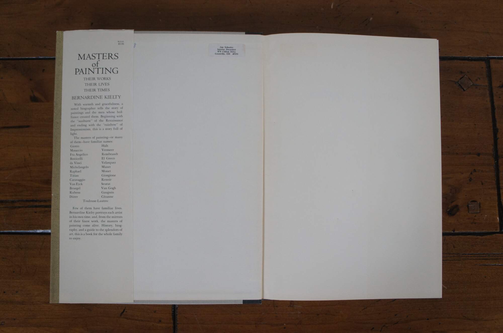 Masters of Painting: Their Works / Their Lives / Their Times" by Bernardine Kielty - Doubleday & Company, Inc, New York - Copyright 1964 by Bernardine Kielty Scherman - Library of Congress Catalog Card Number: 63-15118 - Lithographed in the United States of America. Hardback / hard bound gray and black fabric cover with dust jacket.