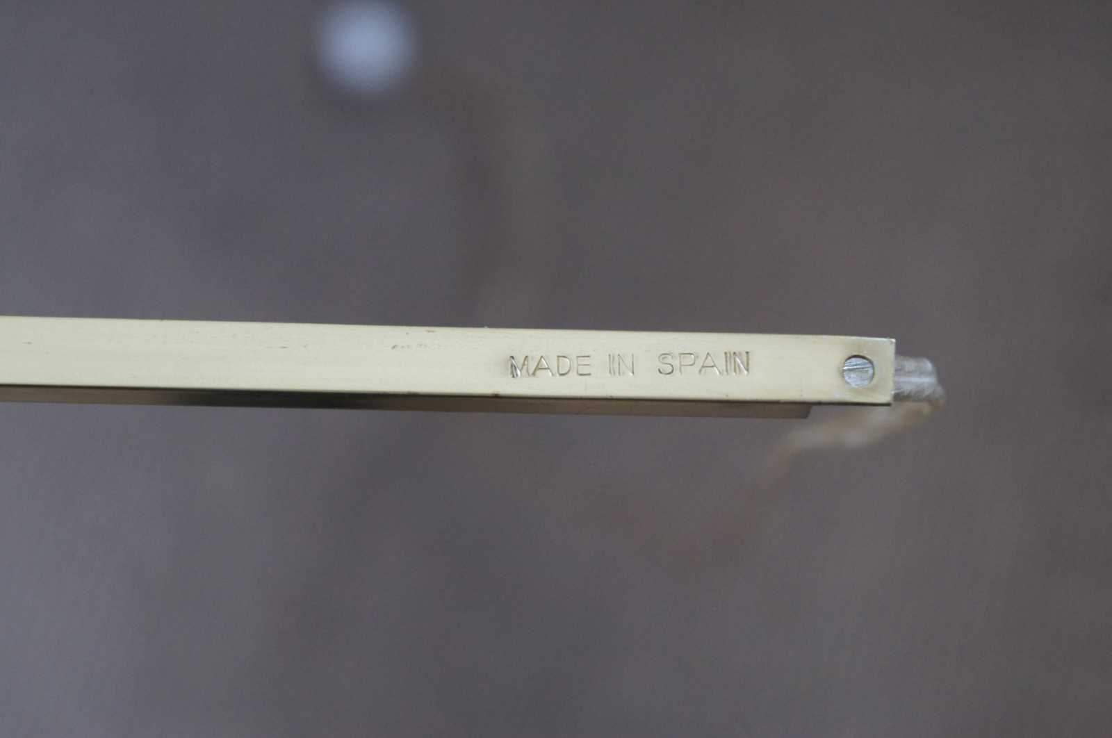 Pair of brass swing arm wall sconces made in Spain by Metalarte for George W. Hansen Lamps of New York.