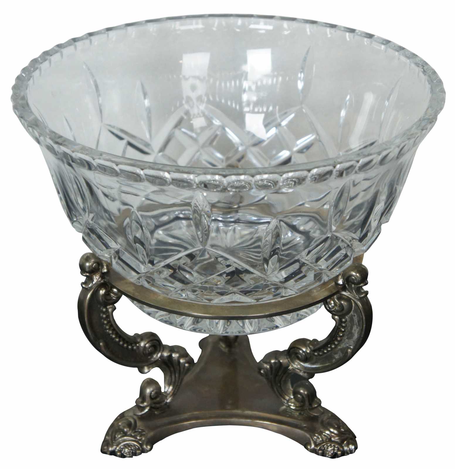 Godinger Silver Art Co Museum Re-Creations ornate footed stand with Shannon cut crystal serving bowl.