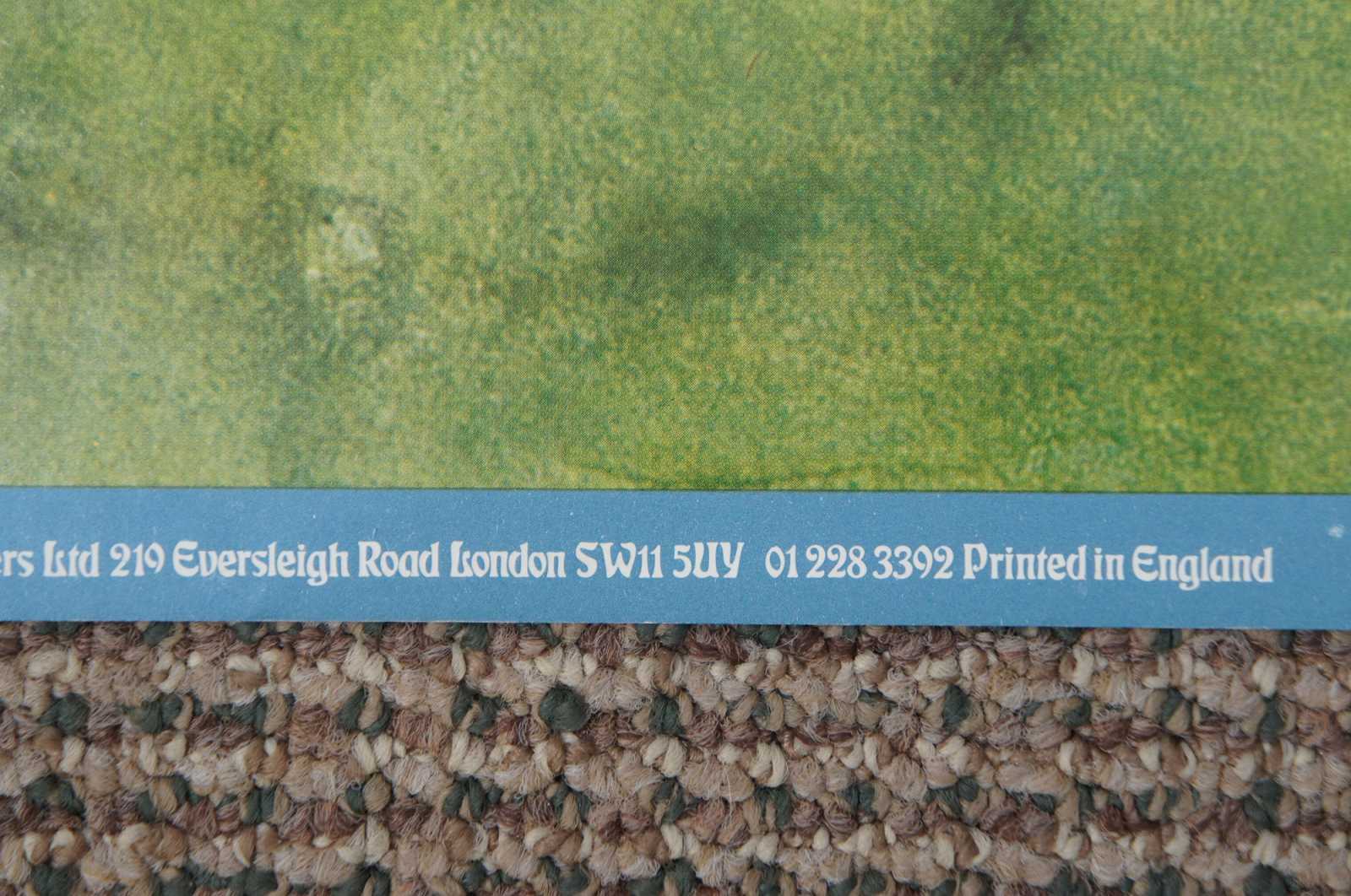 1973 poster print of one of the interior cover art landscapes from Yessongs featuring Moose grazing in the floating islands amongst Bonsai style tress. Yessongs is the first live album by the English progressive rock band Yes, released as a triple album in May 1973 on Atlantic Records. After completing their Close to the Edge Tour in April 1973, the band selected live recordings between February and December 1972 on their tours supporting Fragile (1971) and Close to the Edge (1972) for a live album release. They were then edited and remixed with their producer and live sound mixer Eddy Offord. Three tracks feature original Yes drummer Bill Bruford while the remaining tracks feature his replacement, Alan White.