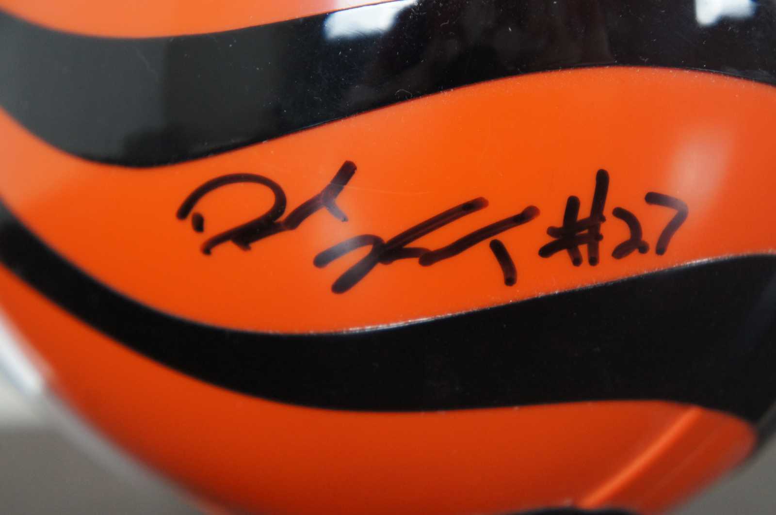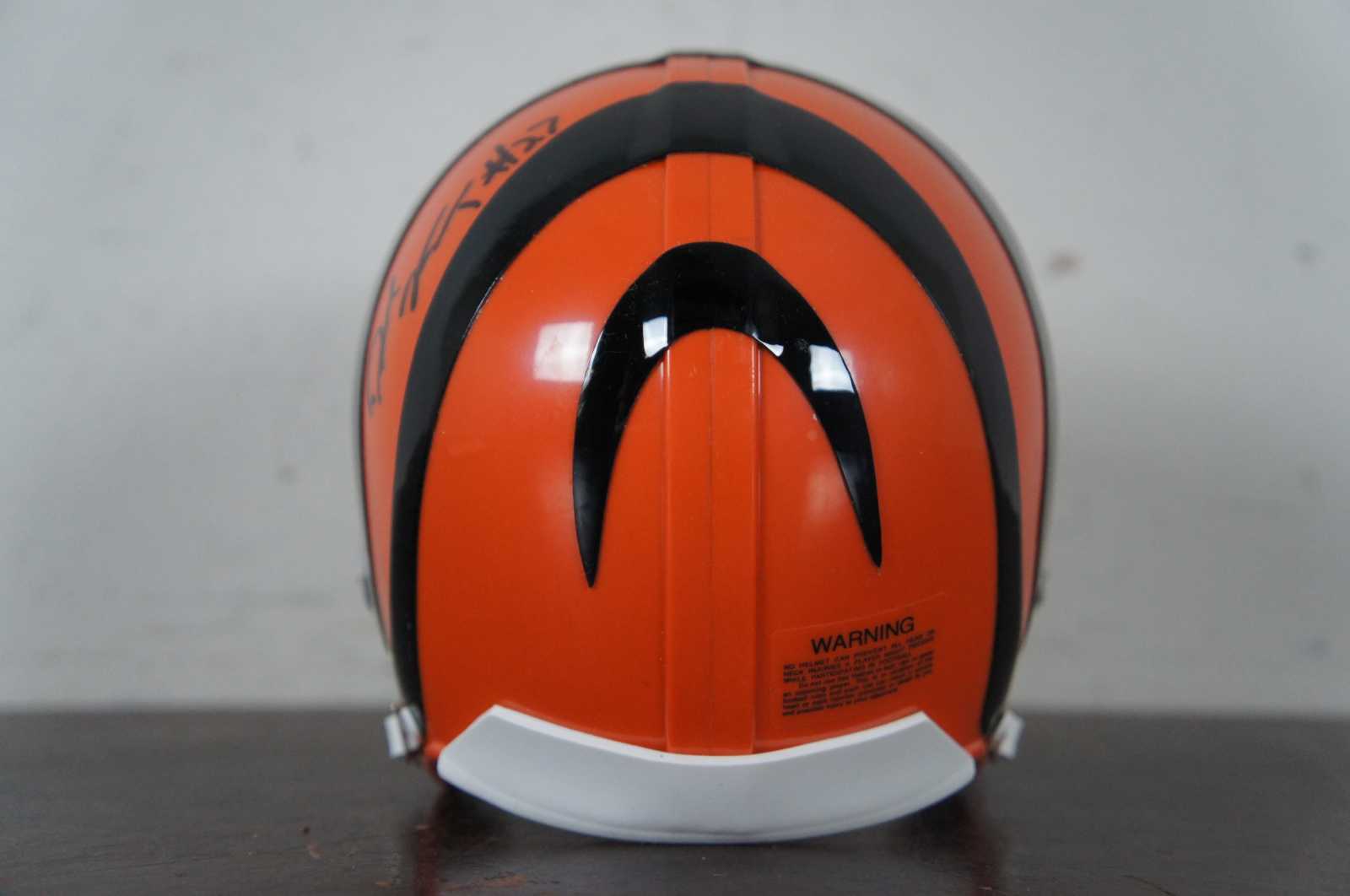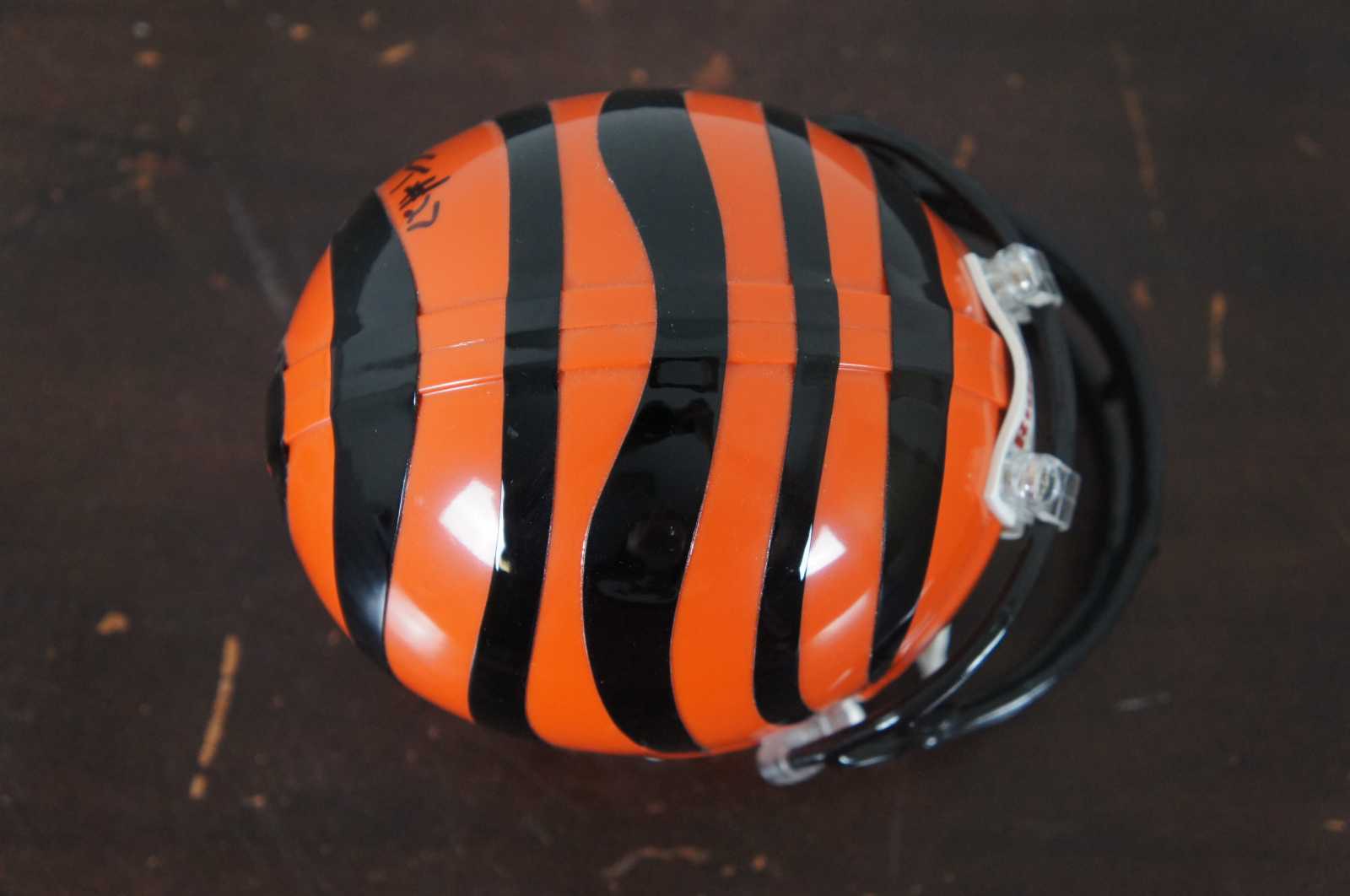 Riddell Cincinnati Bengals tiger striped mini helmet autographed by Dre Kirkpatrick; includes COA. “D'Andre Lawan "Dre" Kirkpatrick (born October 26, 1989) is an American football cornerback who is a free agent. He played college football at Alabama and was drafted by the Cincinnati Bengals in the first round of the 2012 NFL Draft.”