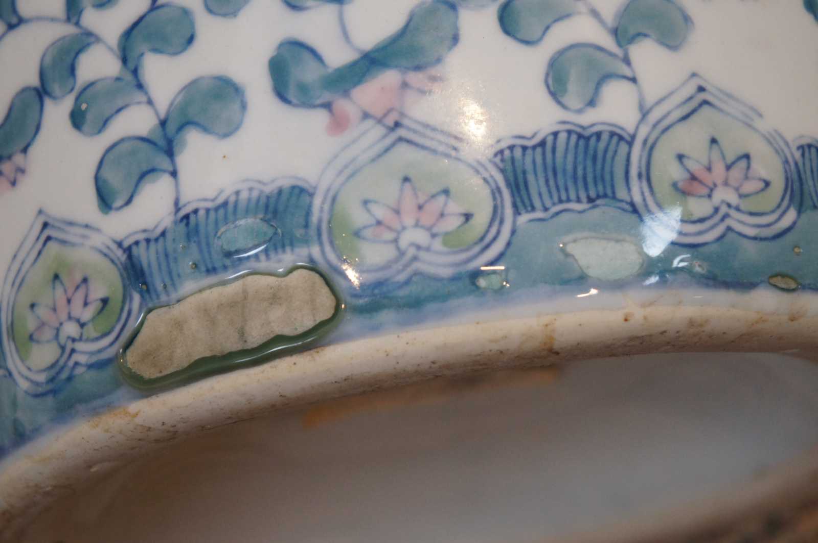 Vintage pink and green Chinese Famille Verte floral porcelain umbrella or cane stand.