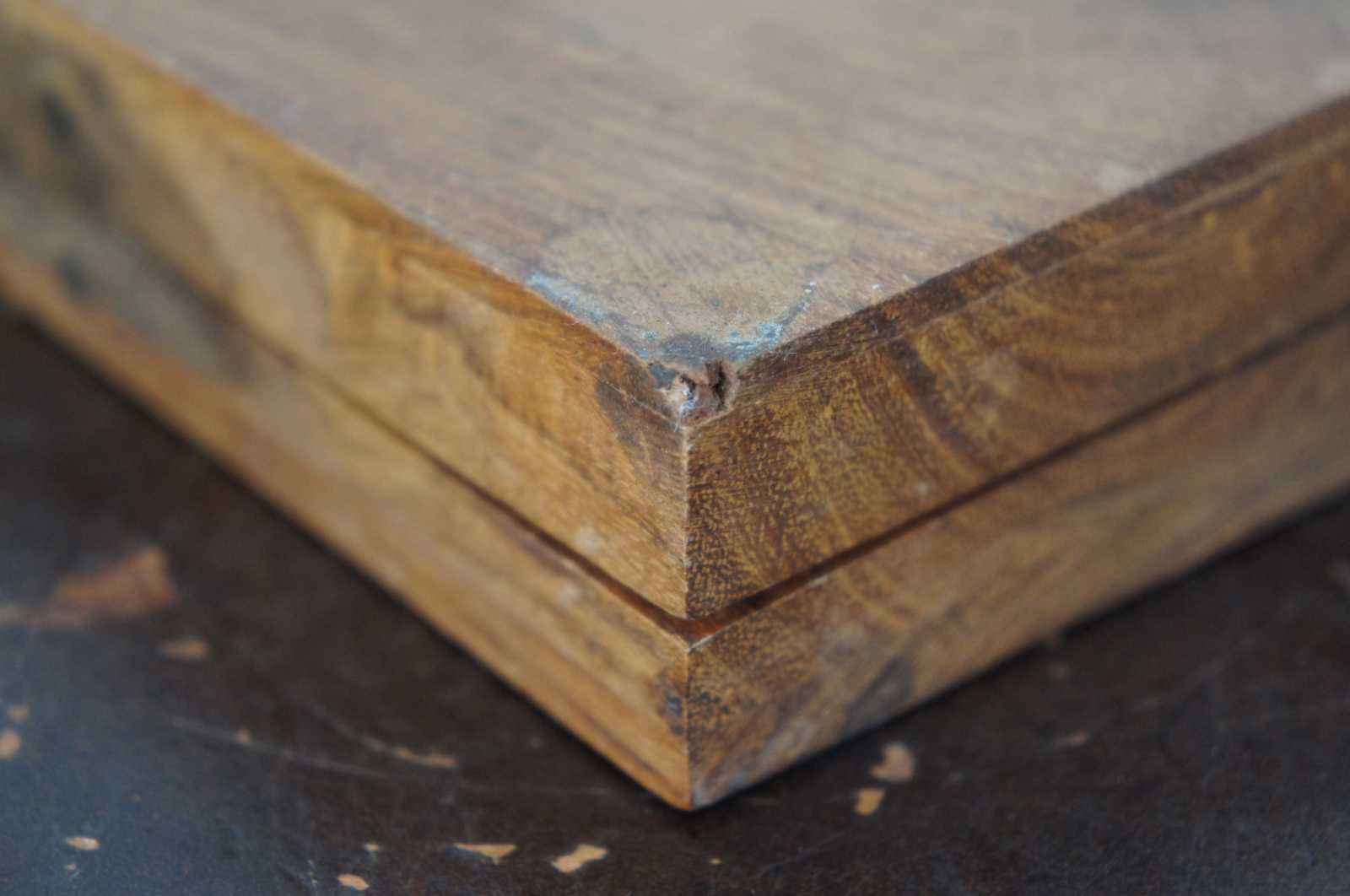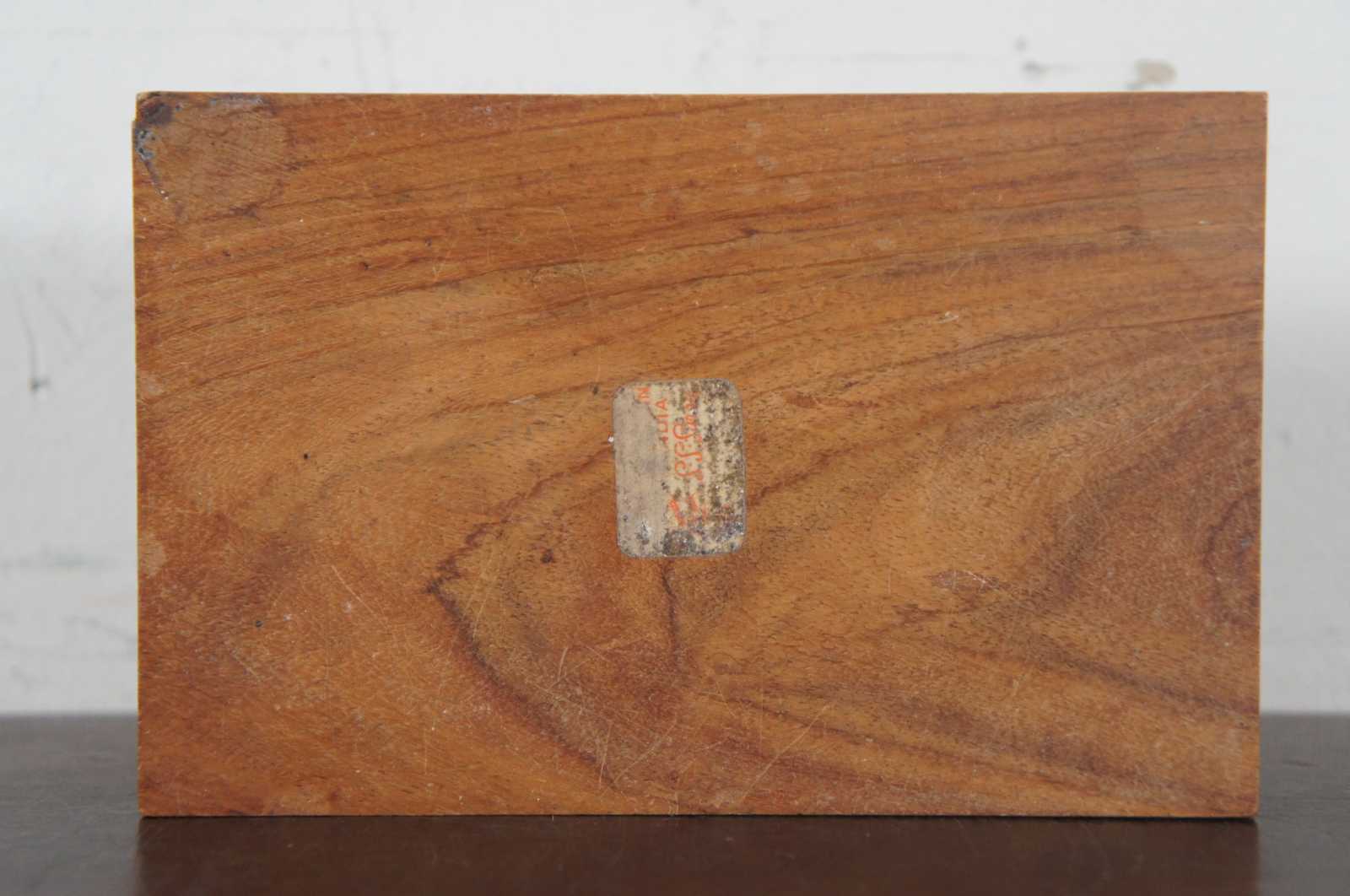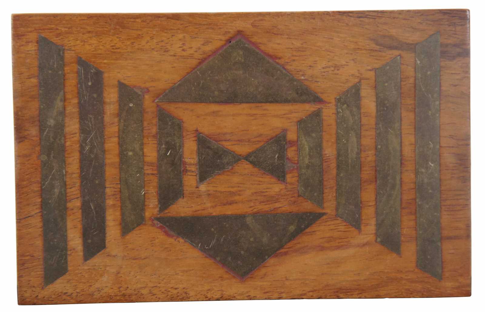 Vintage made in India wooden box with inlaid brass geometric triangle design.
