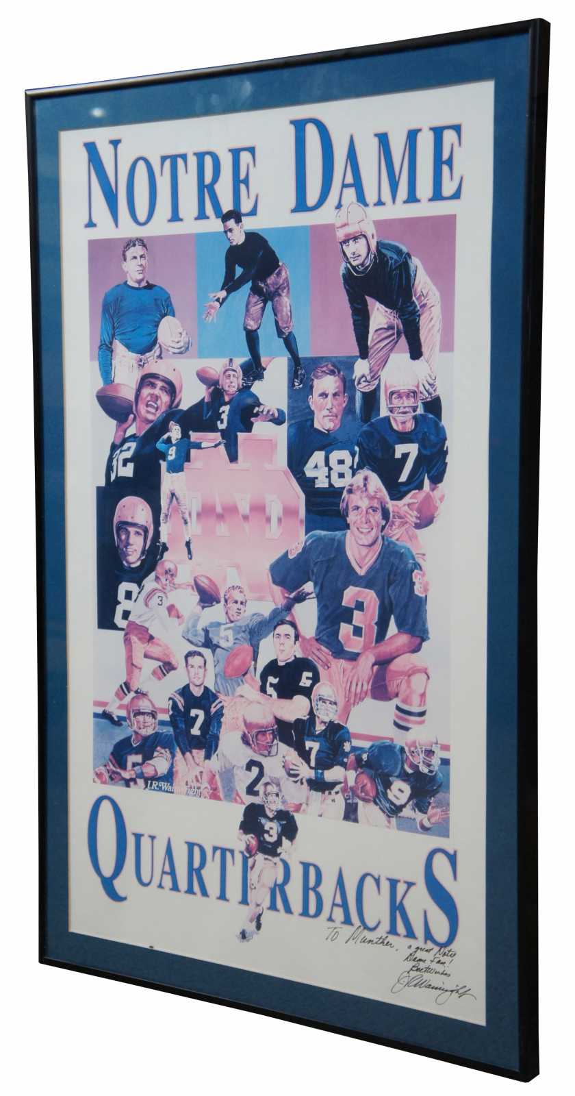 Vintage 1992 Notre Dame Quarterbacks poster print signed by the artist J.R. Wainwright.