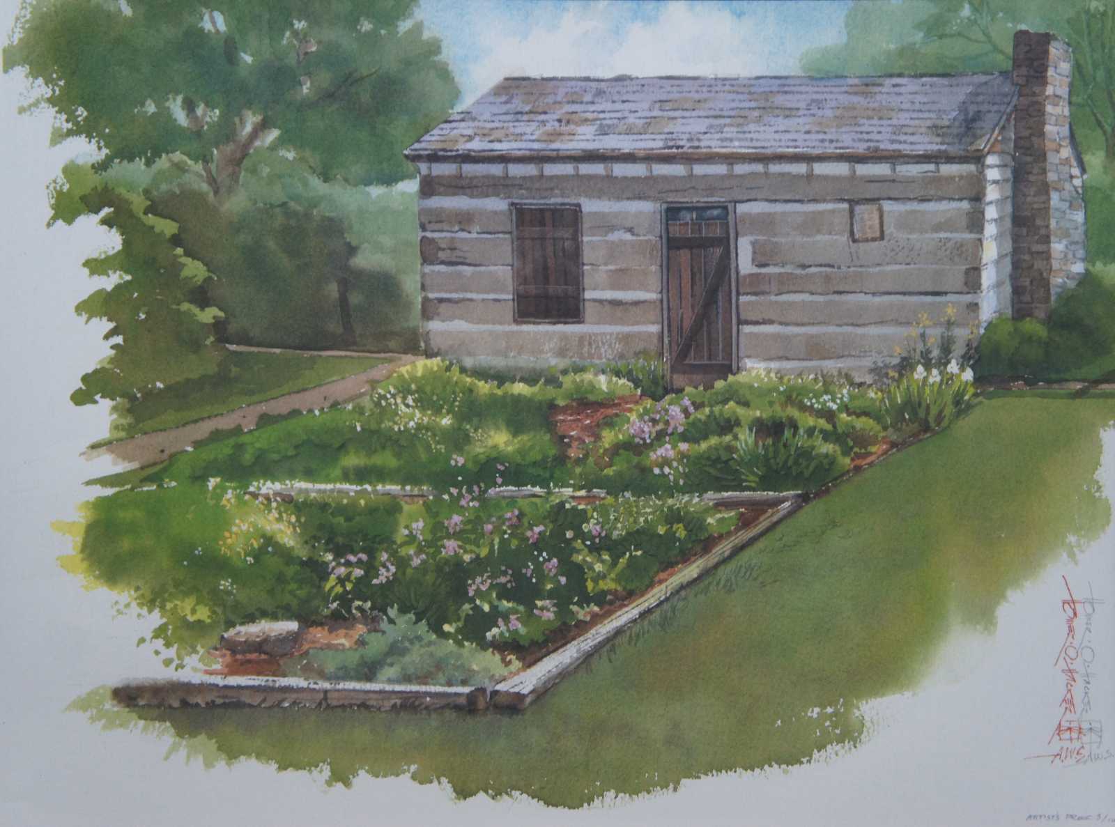 Homer O Hacker Garden landscape artist’s proof lithograph print “Kitchen Herb Garden – Jarusiewic Cabin,” pencil signed and numbered 3/10.