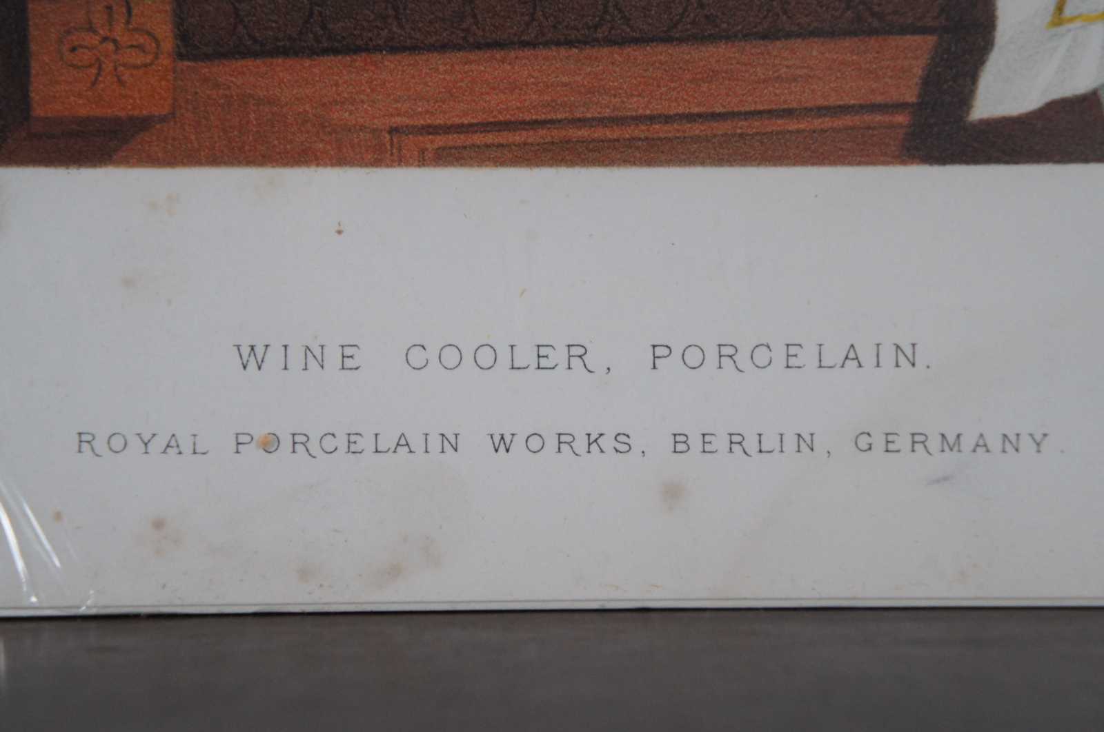 Antique 1876 chromolithograph print - “Wine Cooler, Porcelain. Royal Porcelain Works, Berlin, Germany” produced by Clay, Cosack & CO of Buffalo, New York.