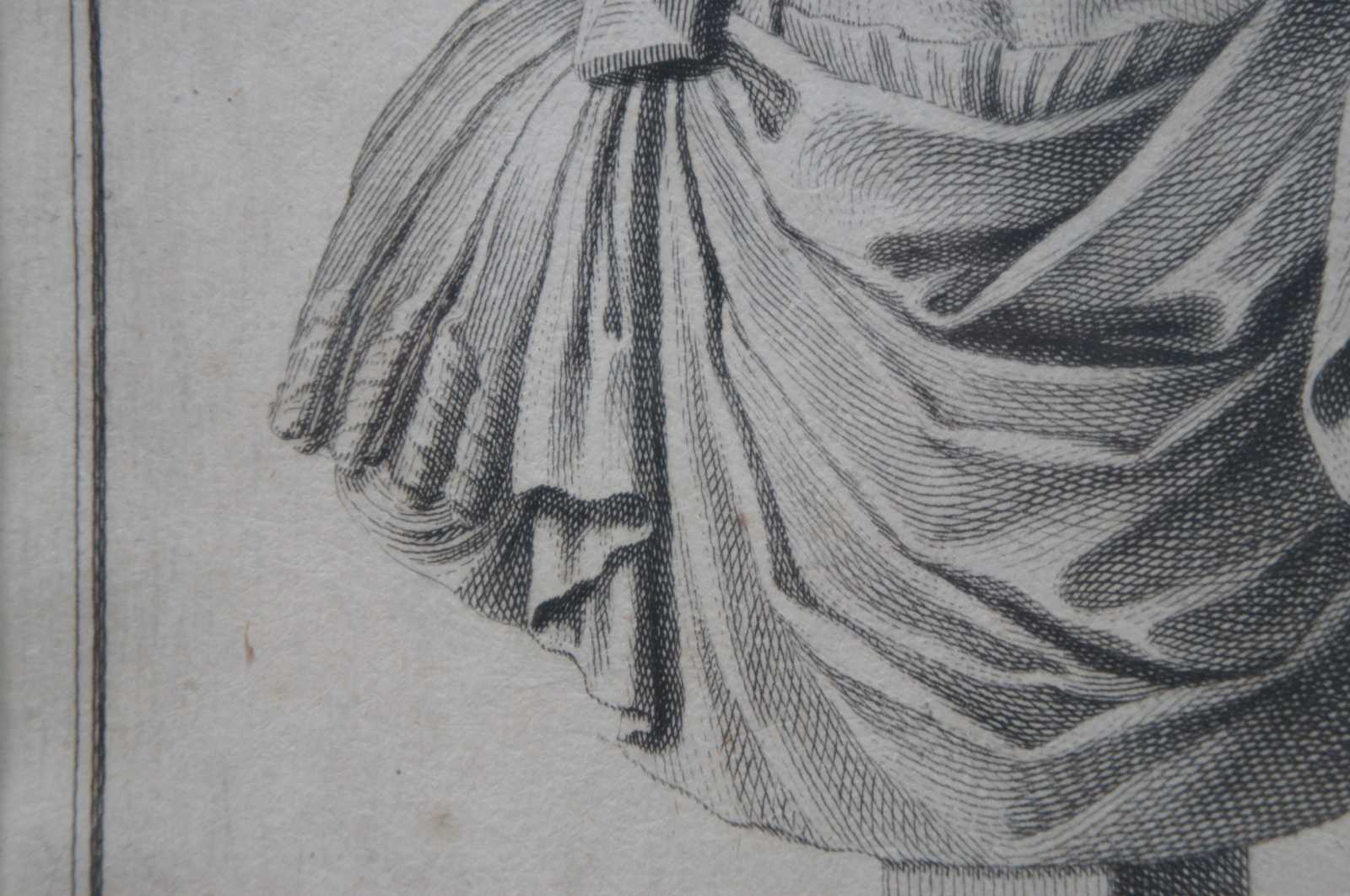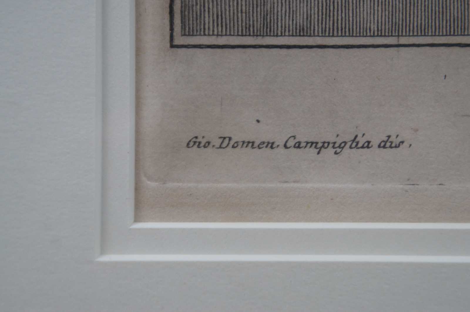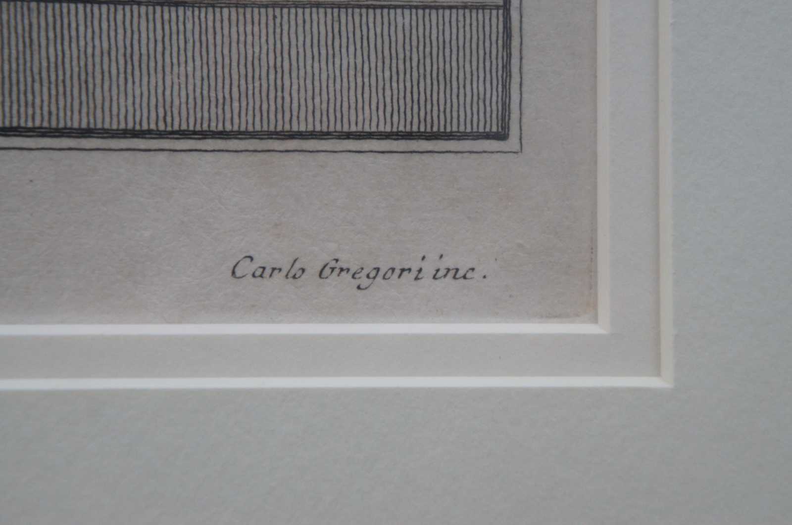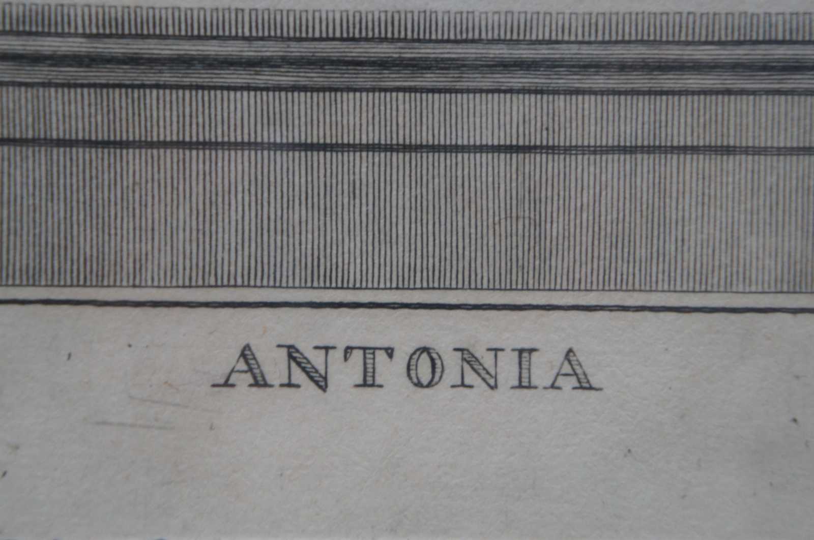 Antique Italian copper-line engraving of the bust of Roman Emperor Vespasian and his consort Antonia by Carlo Gregori after Giovanni Domenica Campiglia’s series “Musei Capitolini,” a series of work inspired by the sculptures of the Capitoline Museum in Rome. “Vespasian was Roman emperor from 69 to 79. The fourth and last in the Year of the Four Emperors, he founded the Flavian dynasty that ruled the Empire for 27 years. He reformed the financial system of Rome after the campaign against Judaea ended successfully, and initiated several ambitious construction projects, including the building of the Flavian Amphitheatre, better known today as the Roman Colosseum. After the death of his wife, Vespasian's long-standing mistress, Antonia Caenis, became his wife in all but formal status, a relationship that continued until she died in 75.” “Carlo Gregori was an Engraver and etcher from an Italian family of engravers; born 1702 in Lucca, active in, and died 1759 in Florence; studied with Johann Jakob Frey in Rome before pursuing his career in Florence. He made prints after Old Master paintings by, for example, Titian, Rubens and Correggio and also reproduced artists' portraits. His engravings illustrated some important 18th century publications, including Ignazio Enrico Hugford's work (1762) on Anton Domenico Gabbiani. He primarily signed with his name in full, but also used an interwoven monogram of c and g.” “Giovanni Domenico Campiglia (1692–1768) was an Italian painter and engraver from Florence, active under the patronage of the House of Medici.