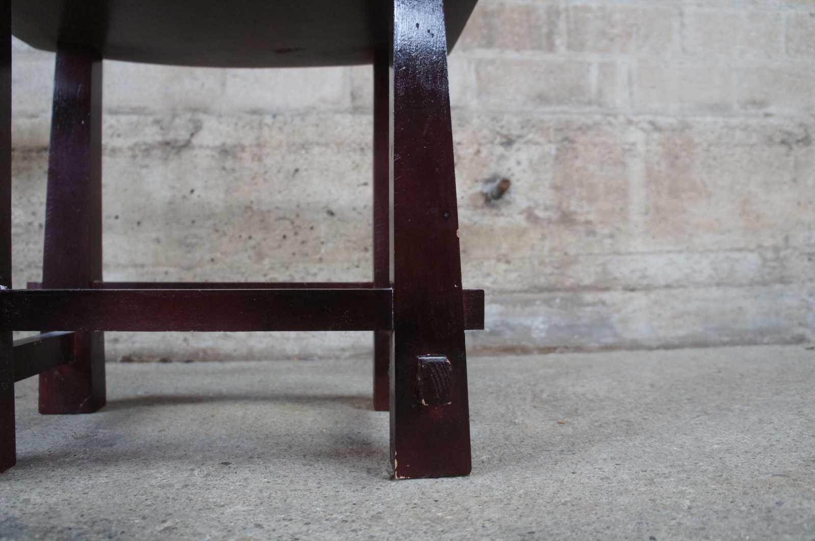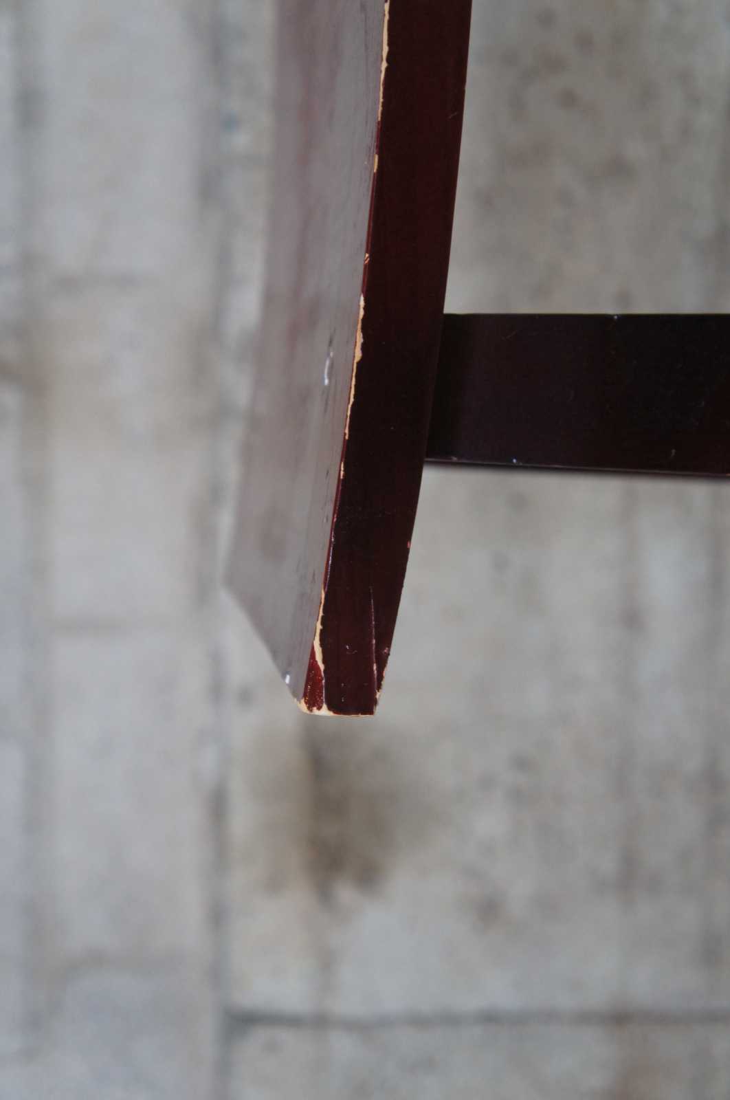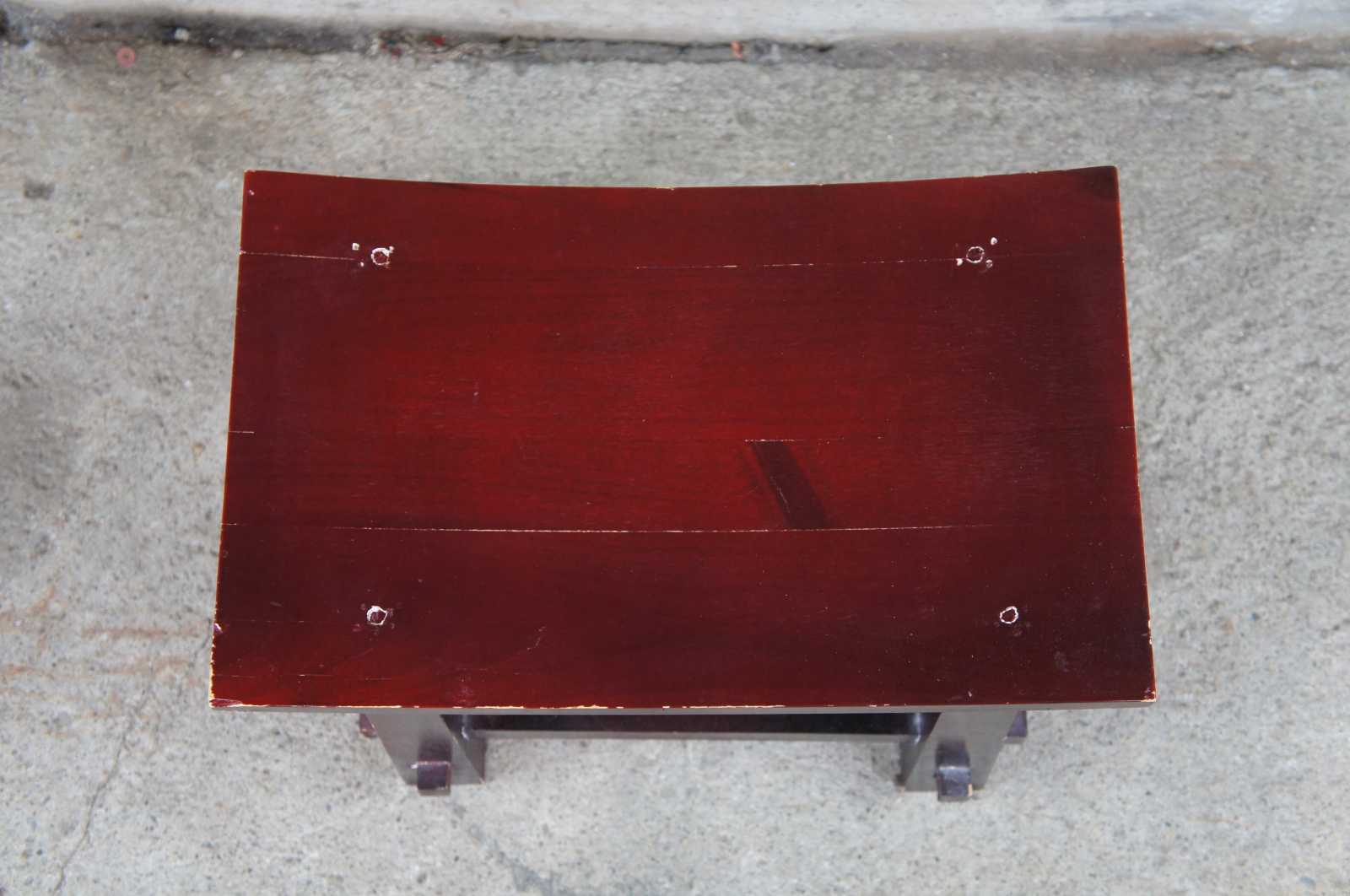 Vintage saddle seat vanity stool featuring Asian styling and cherry finish.