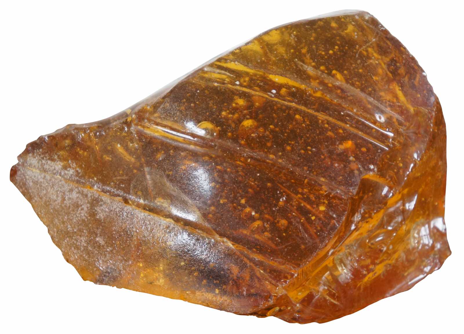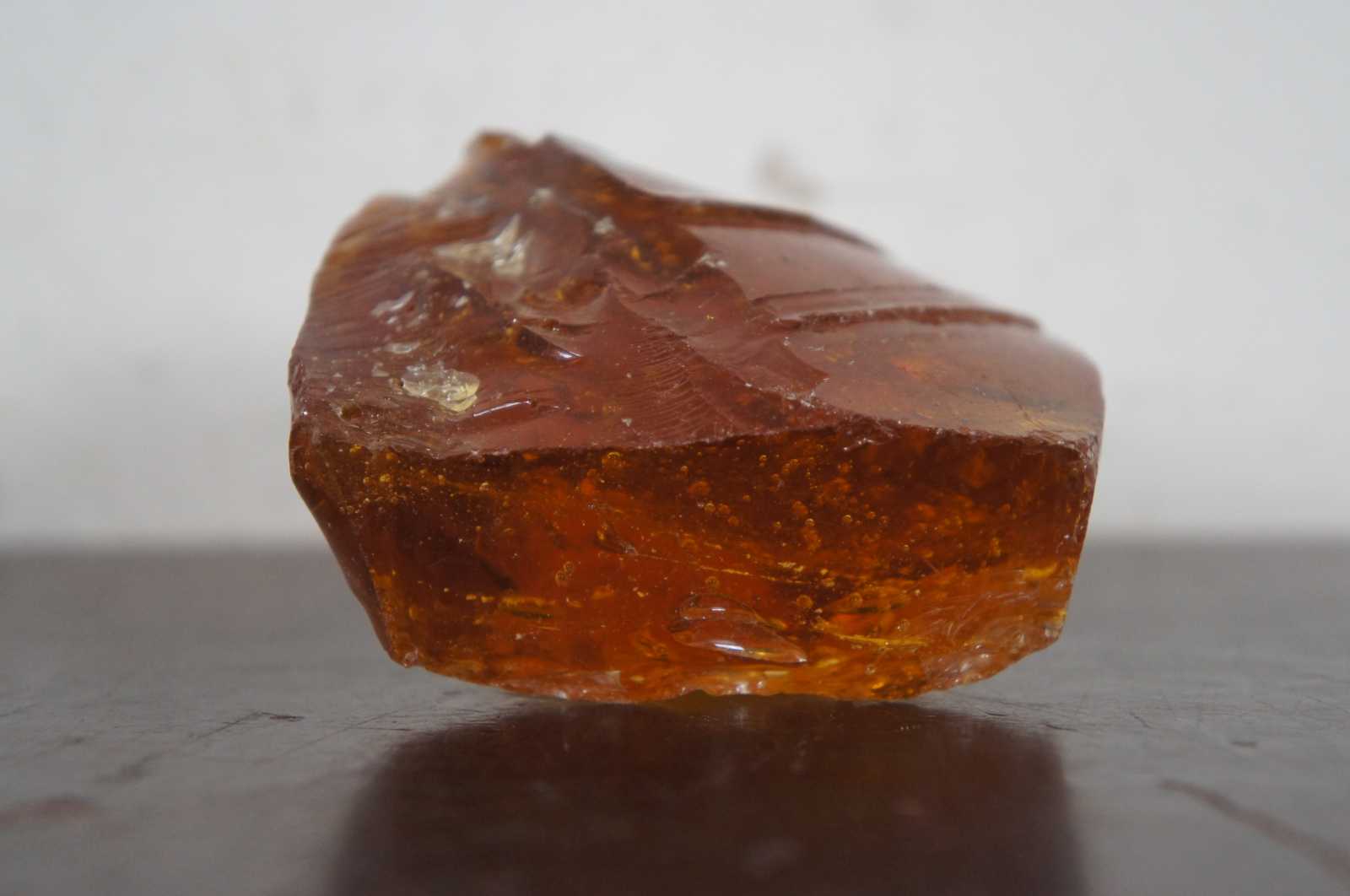 Segment of natural raw, polished amber with nice dark butterscotch tone and suspended air bubbles.