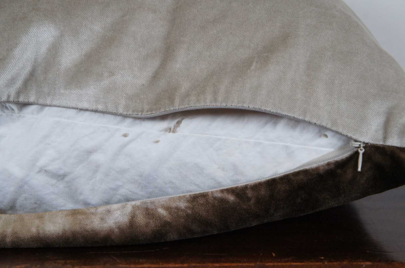 Pair of Calvin Klein Dipped Velvet duck down filled throw pillows in Barley brown.