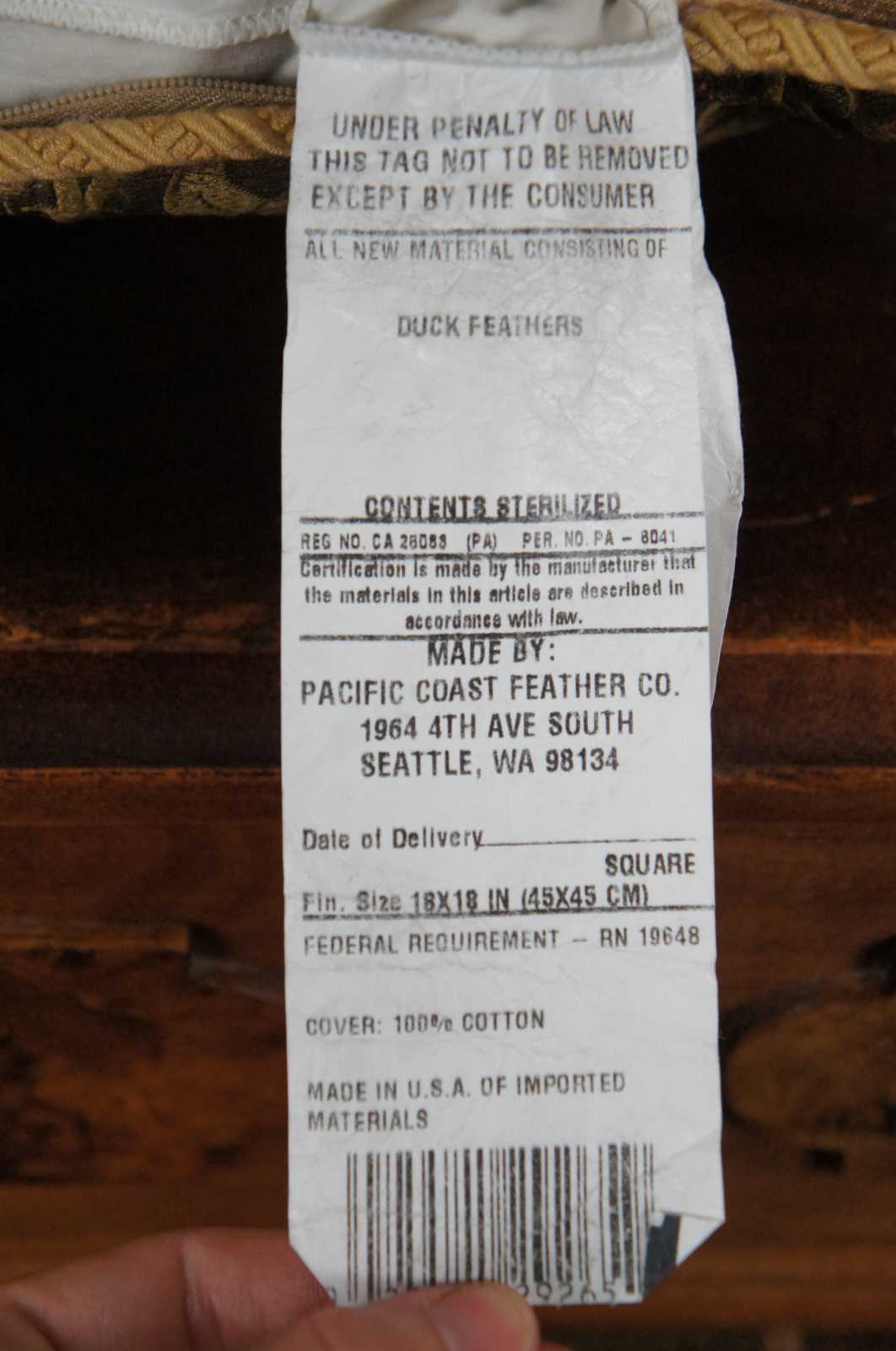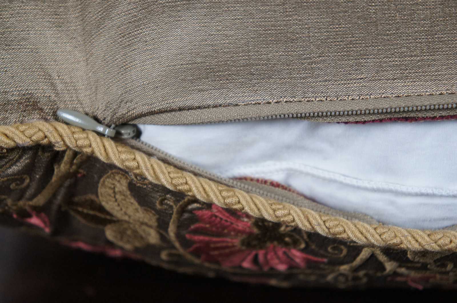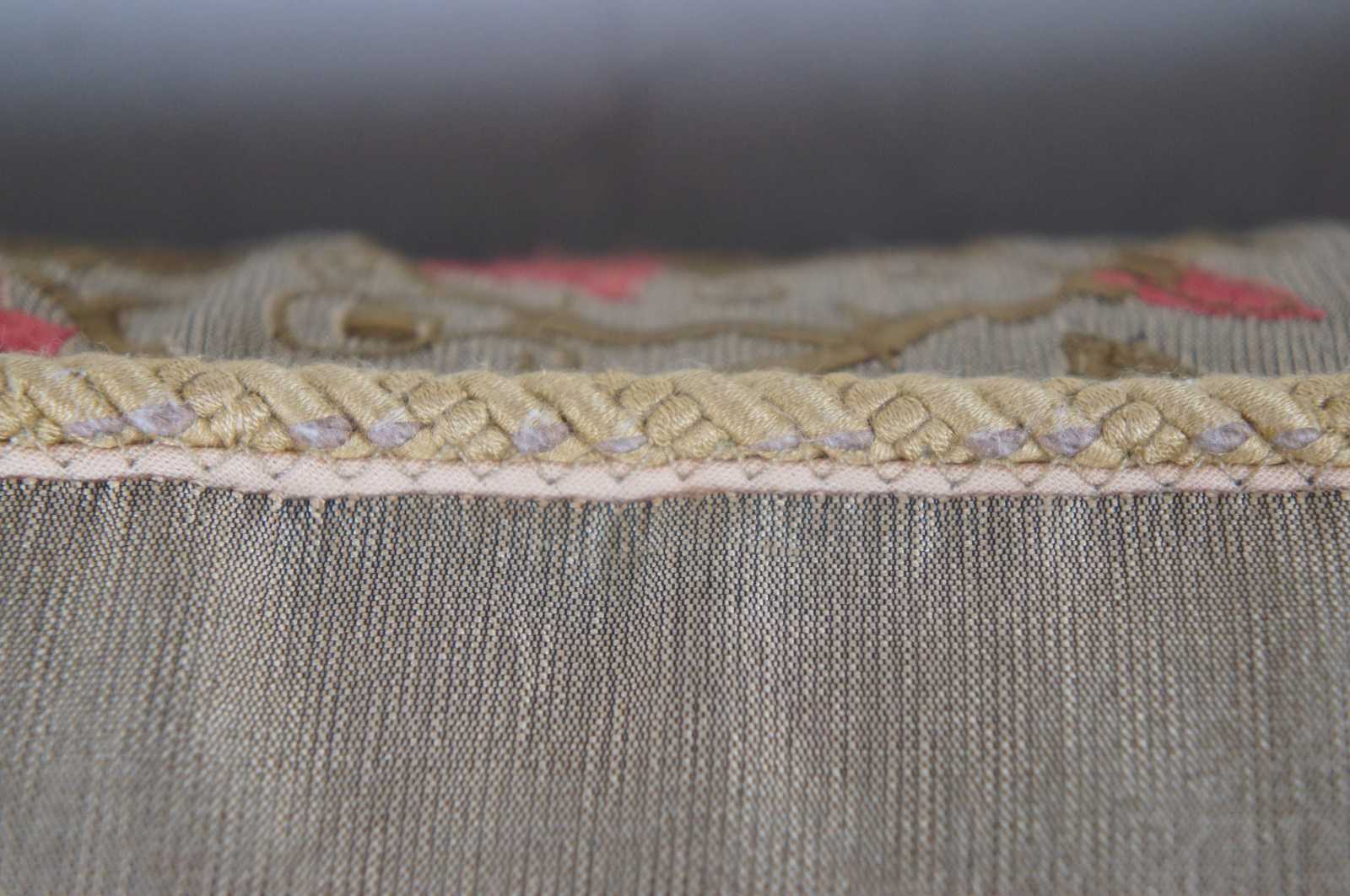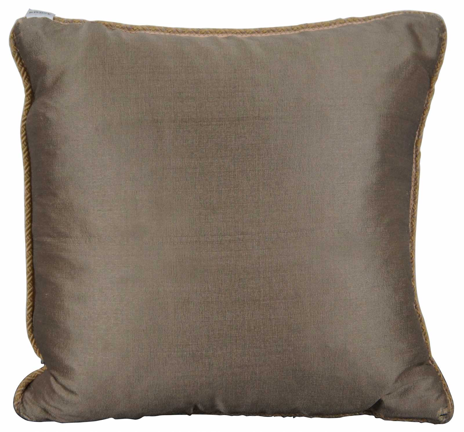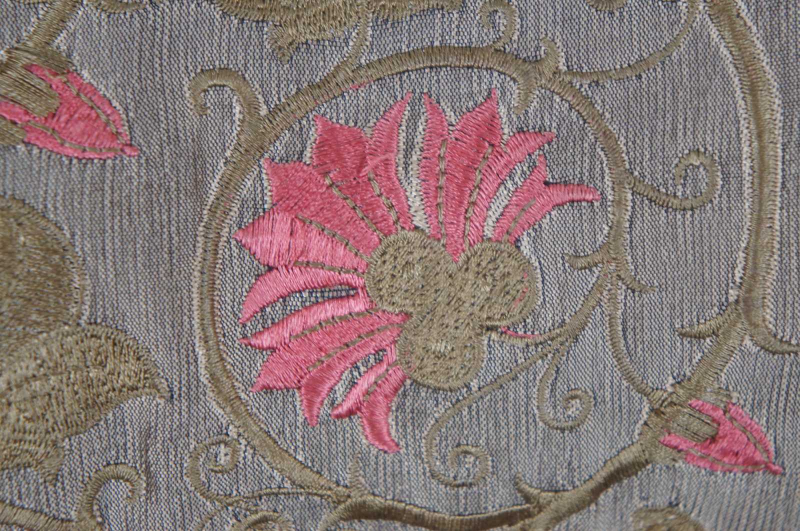 Arhaus Royal Gold and Apricot silk down filled throw pillow with an embroidered pattern of flowering vines.