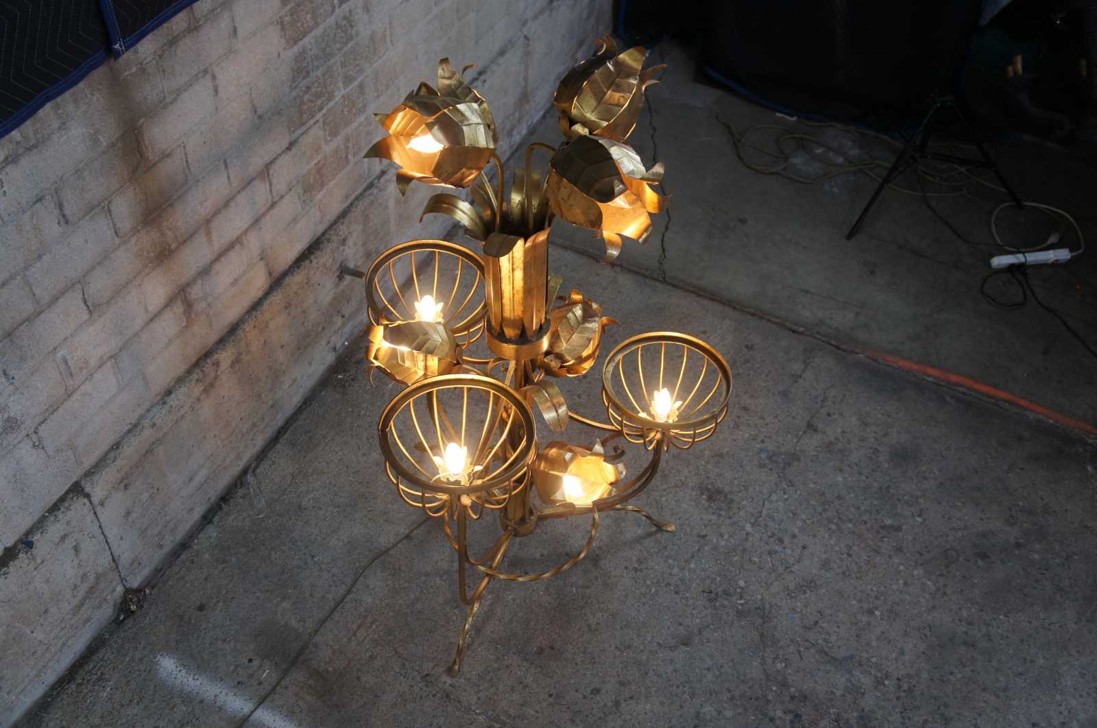 Good Vintage Condition; We believe globes were originally in place over the baskets.