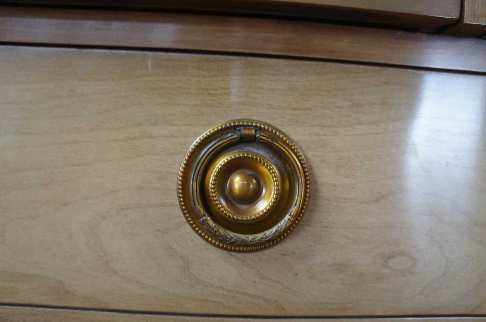 Vintage National Furniture Company double dresser. Made of walnut featuring Louis XVI styling with nine drawers and neoclassical hardware. Made in Mt. Airy, North Carolina.