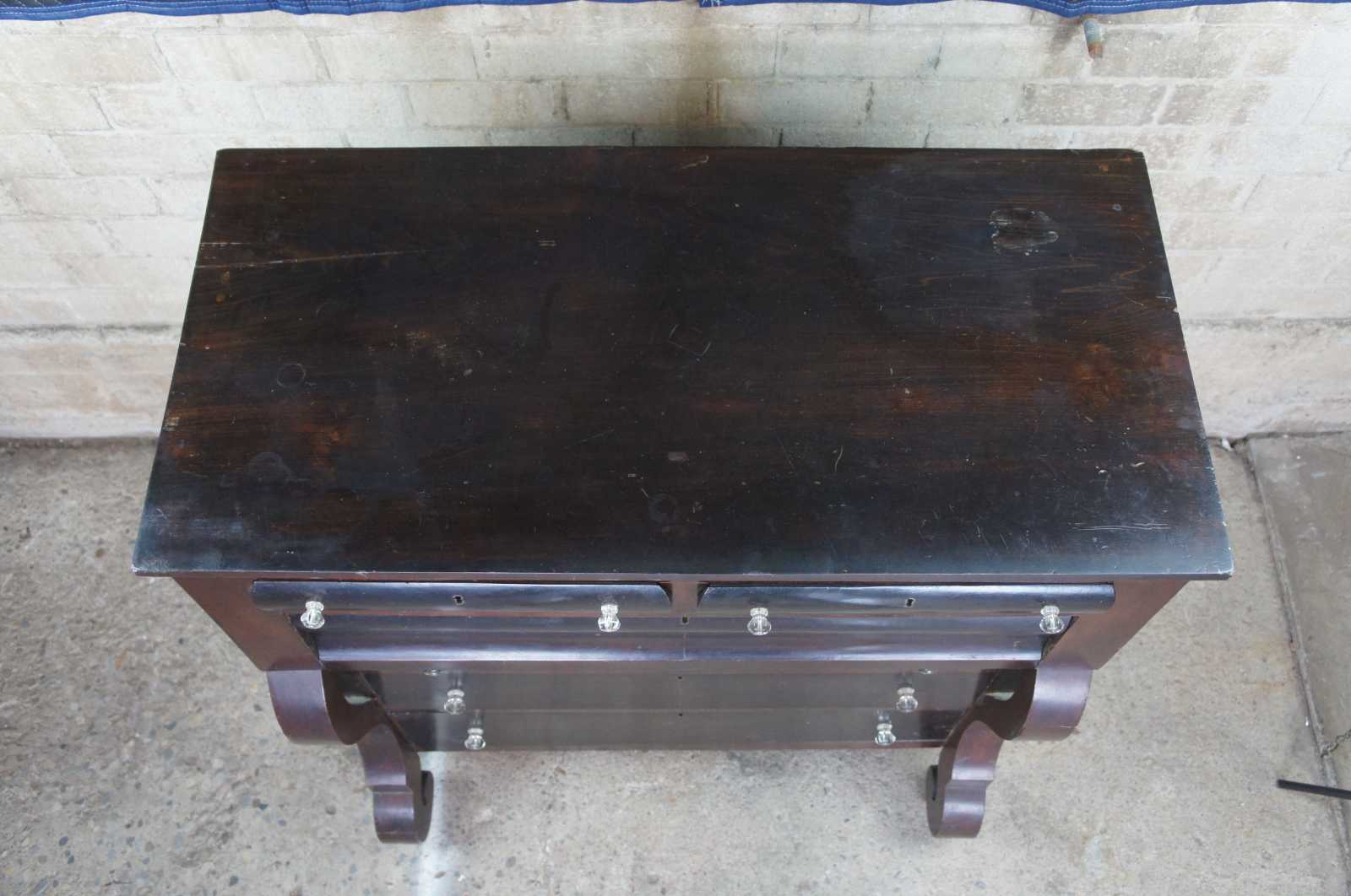 Good Antique Condition with age related wear. Some staining, marking and veneer wear