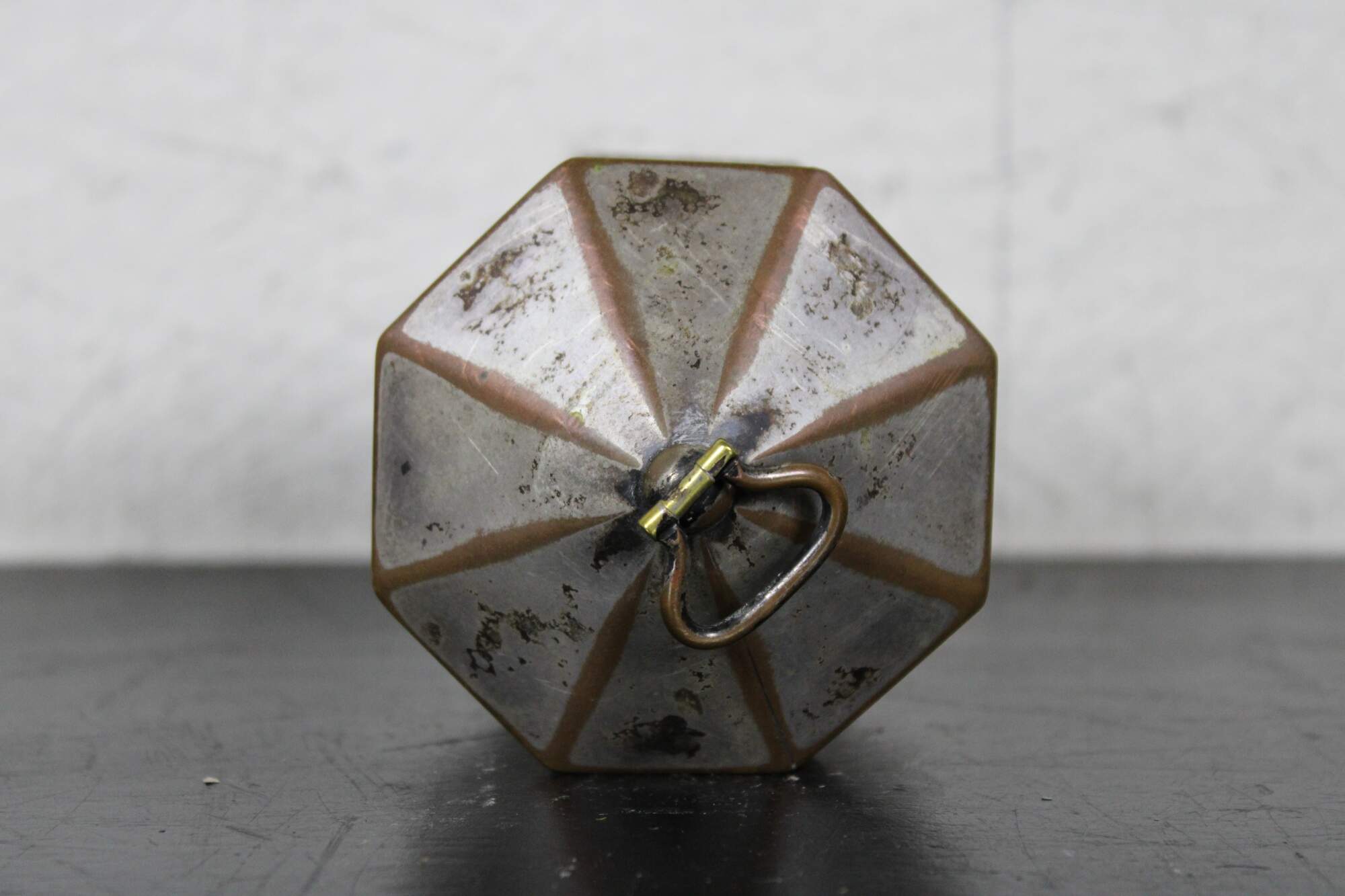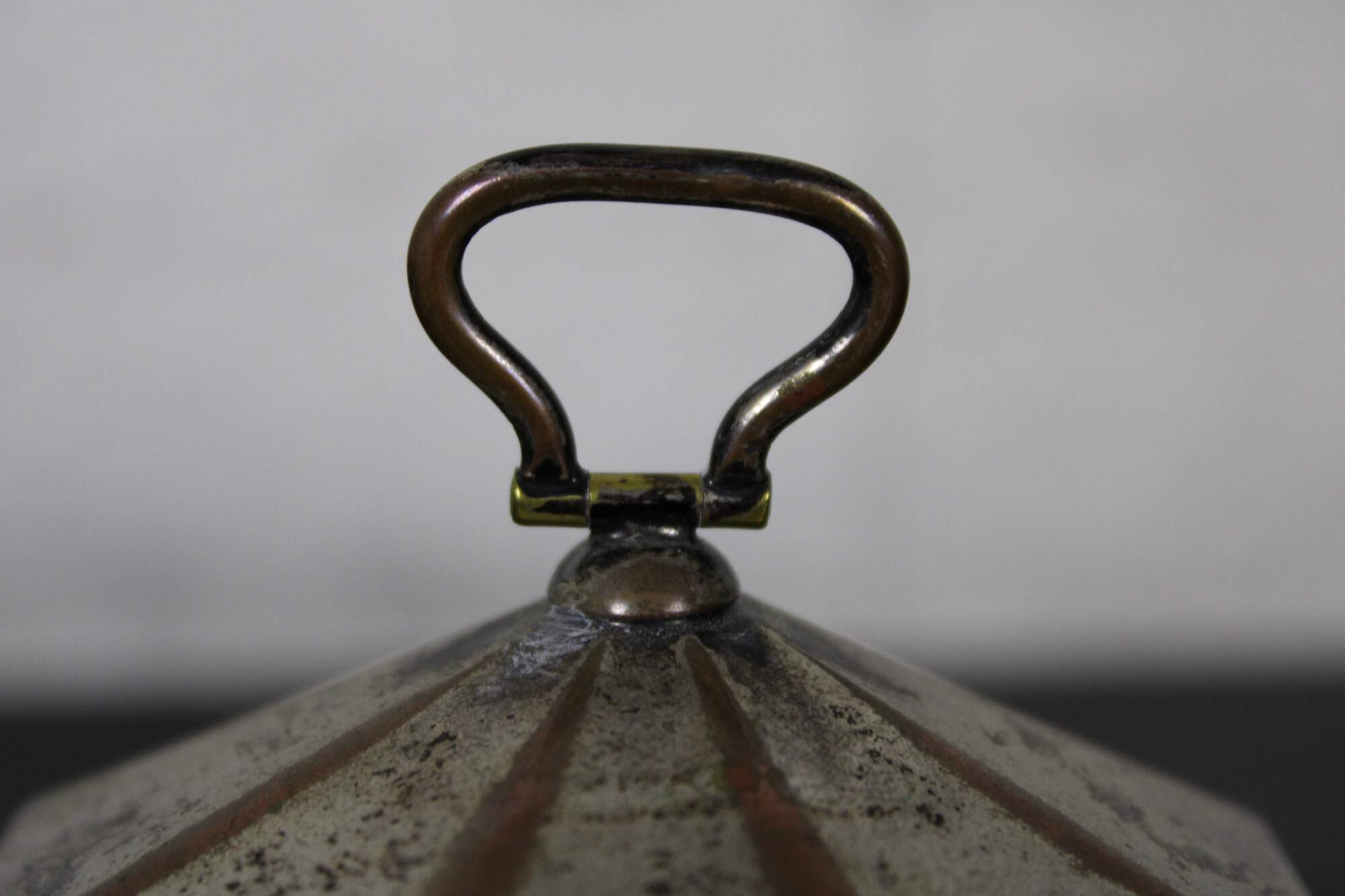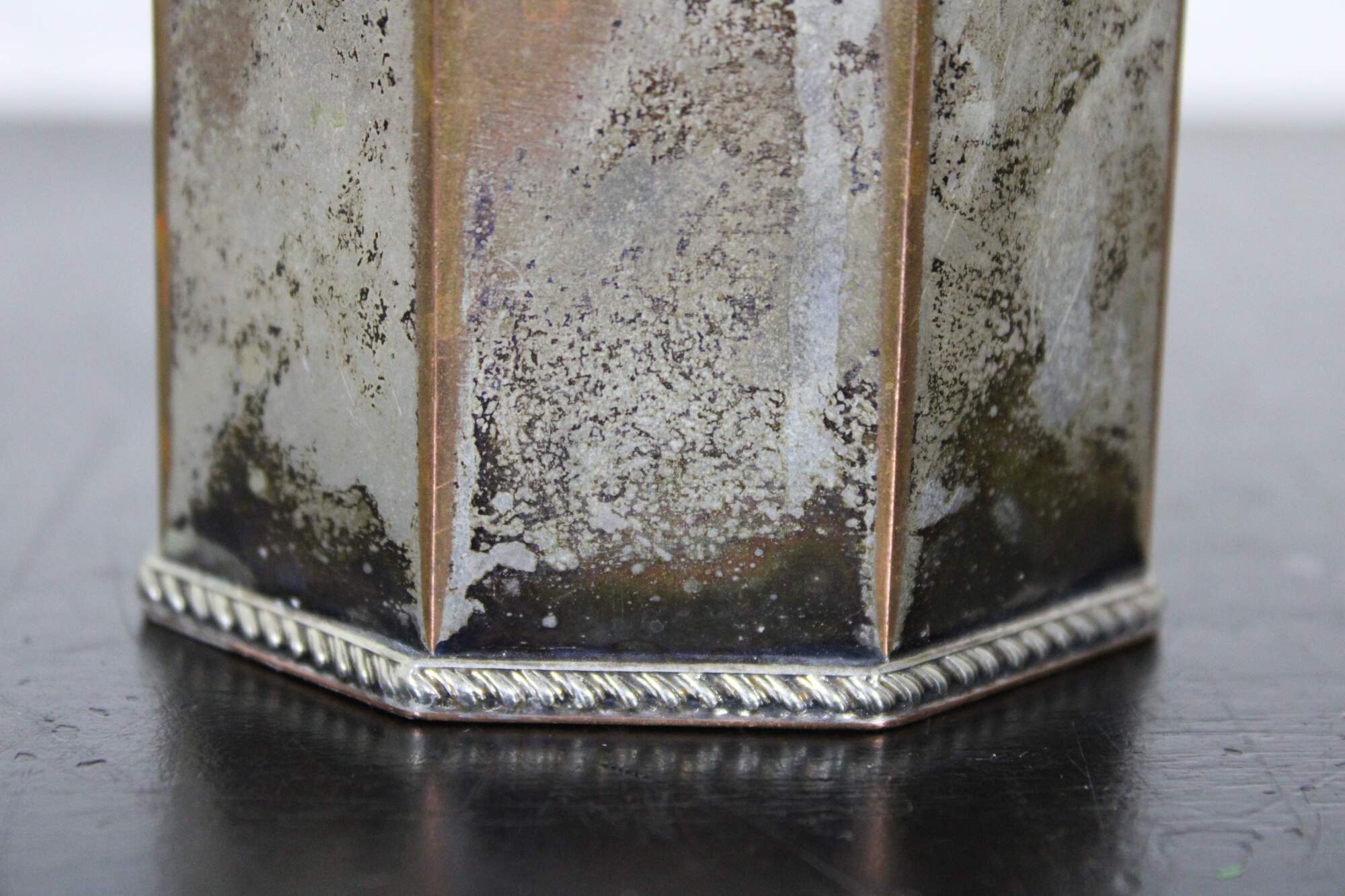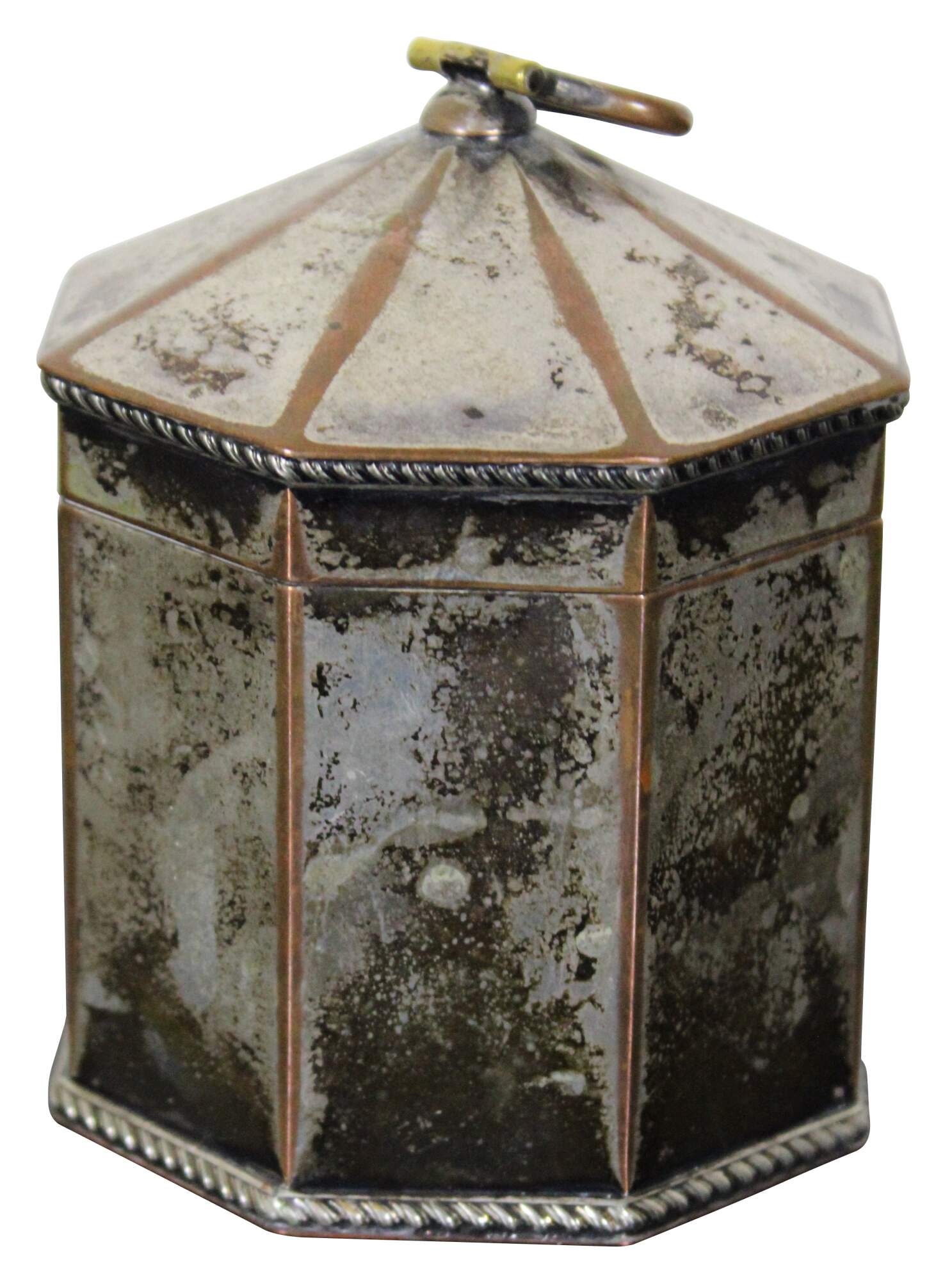 Antique silver plate on copper, octagonal tea caddy or trinket box.