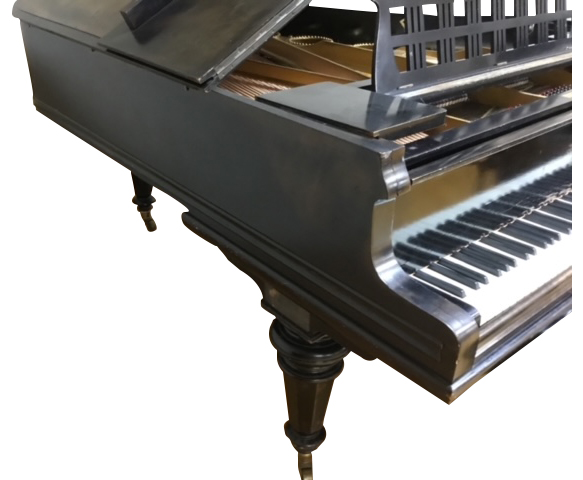 Schiedmayer 6’ 4” Grand Piano. Built in 1914 in Stuttgart, Germany. Strong sounding piano. Un-restored condition. Just tuned. Pinblock is tight. Several cracks in soundboard that do not affect the sound (see pictures). New bass strings. Nice original piano keys only a couple of chips. Original faded ebony finish consistent with years of normal wear. Never rebuilt, but good candidate for restoration. Includes Jansen artist bench.