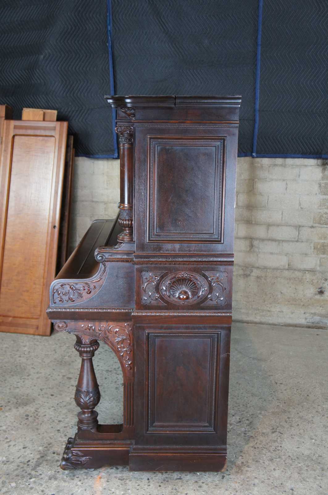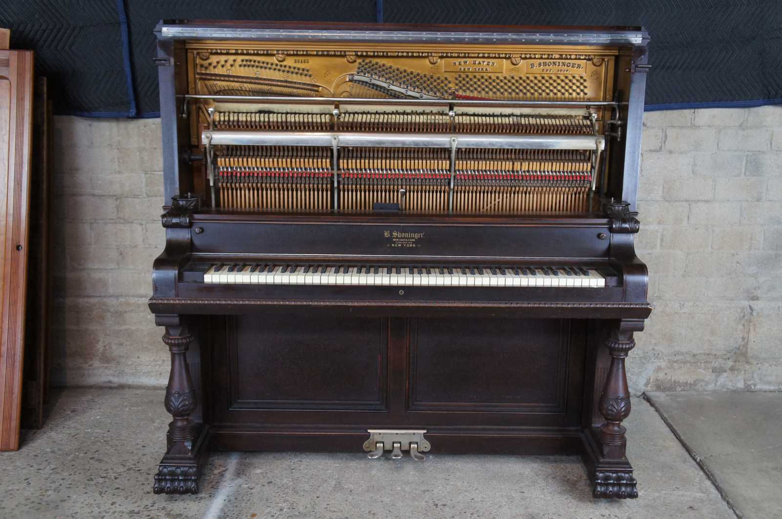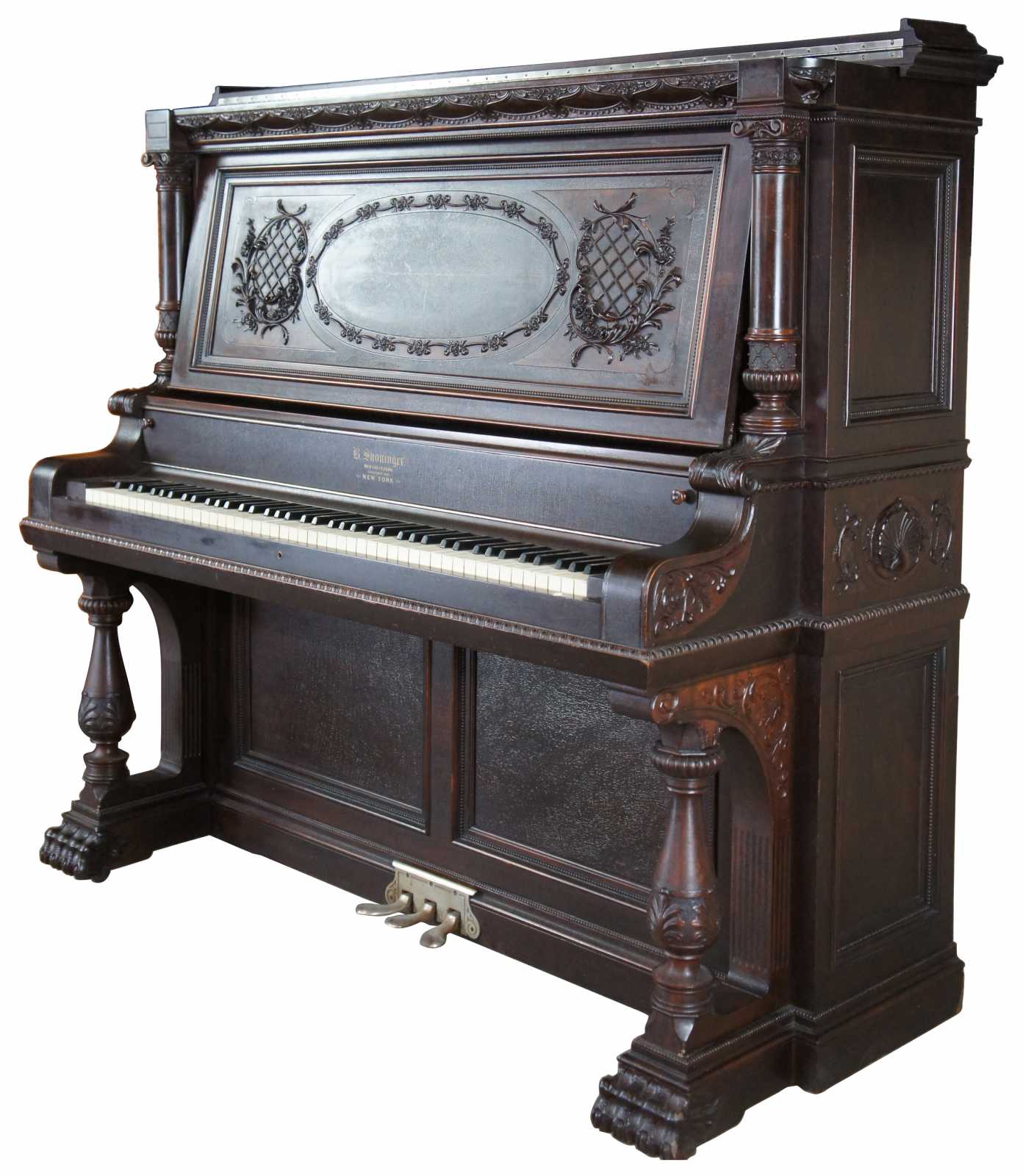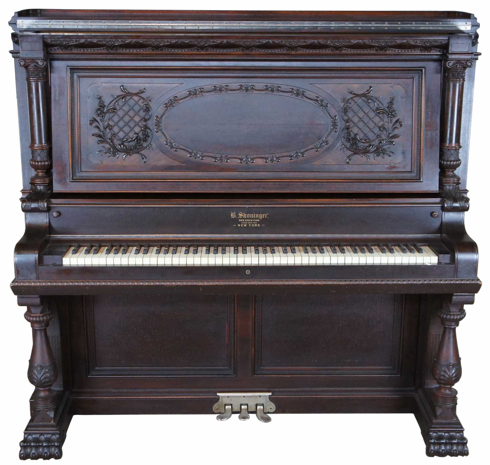 Antique Shoninger Upright Grand Piano. Made from mahogany with a beautiful baroque rival carved case. Circa 1878