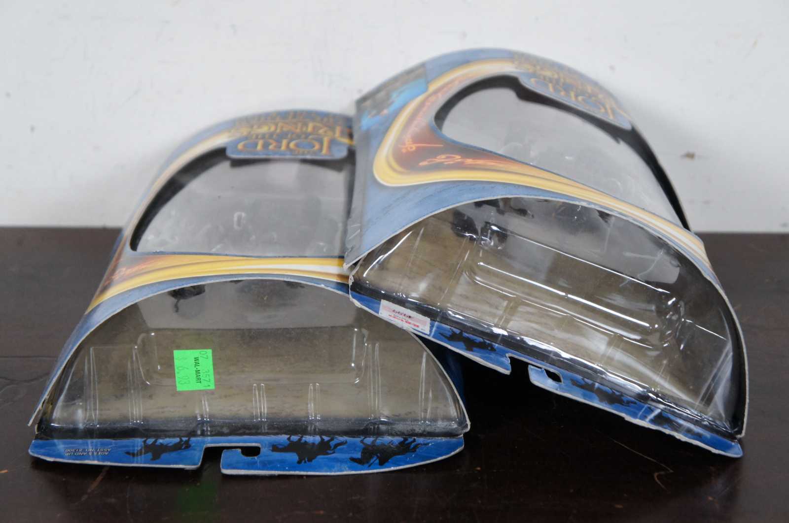 Set of six vintage 2003 Toy Biz Lord of the Rings: Return of the King action figures with accessories in sealed boxes. Lot includes Samwise Gamgee, Frodo, Super Posable Pelennor Fields Aragorn, Eomer, Super Poseable Gollum, and Smeagol.