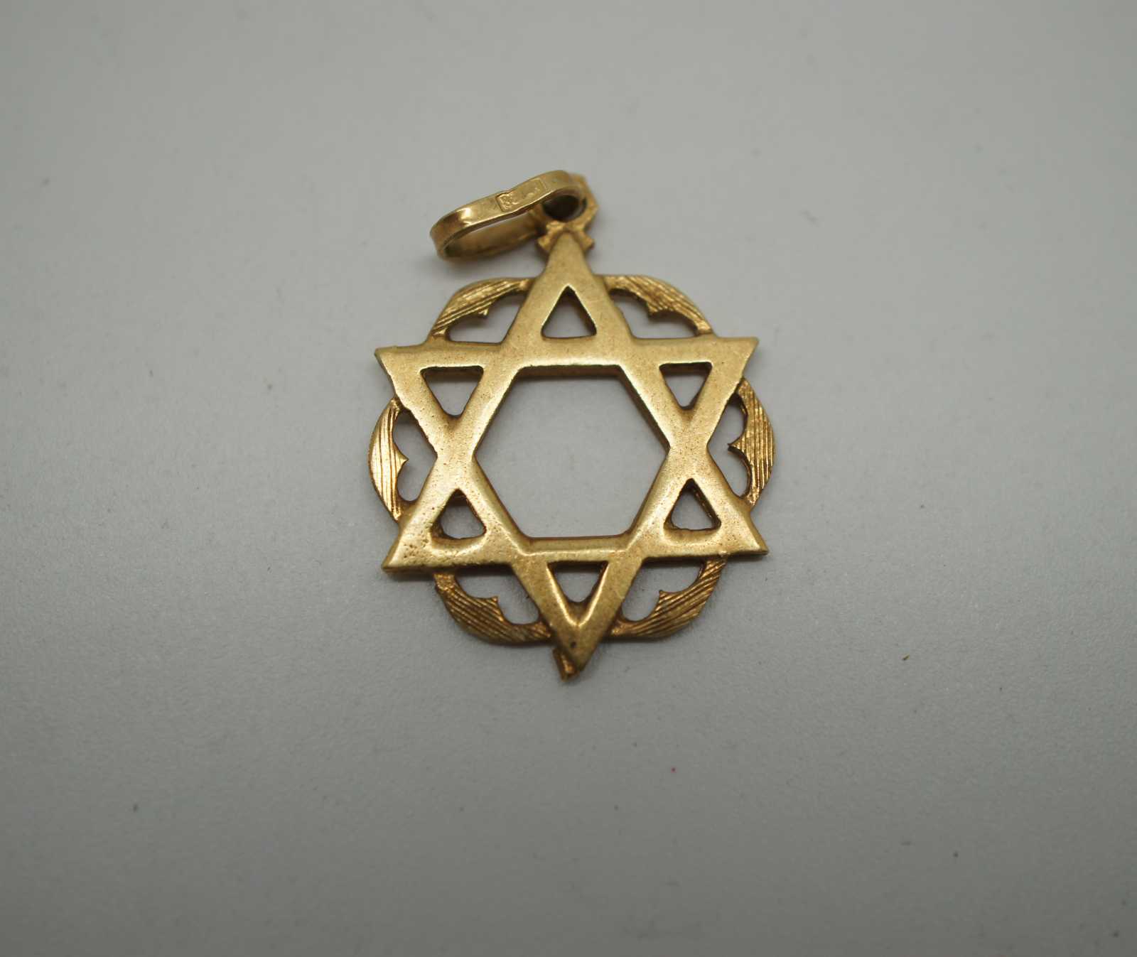 Vintage 14K gold Star of David pendant charm with scalloped details.