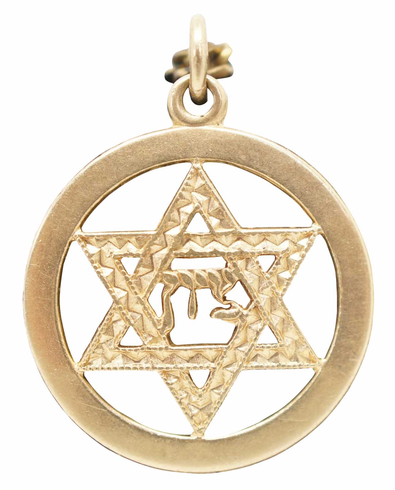 Vintage 14K gold Star of David pendant with zig zag detailing , surround by a circle, on a Speidel 12K gold filled chain.