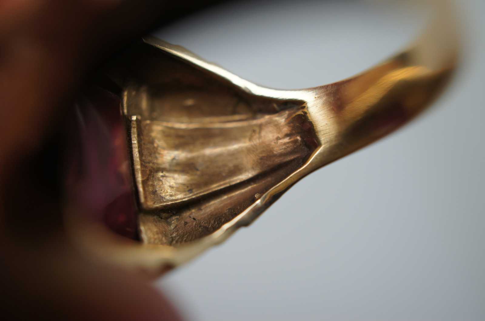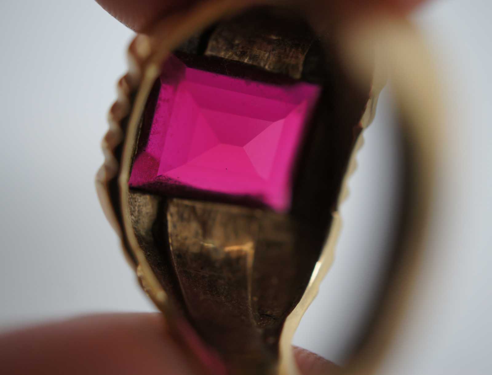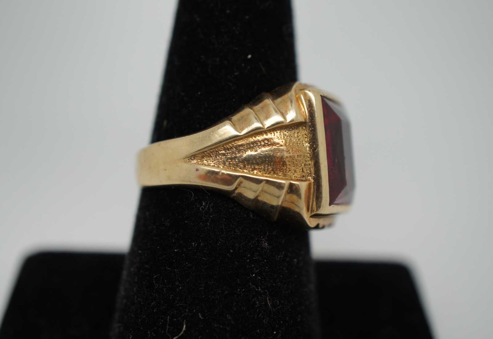 Vintage 10k gold square cut ring with art deco inspired band.