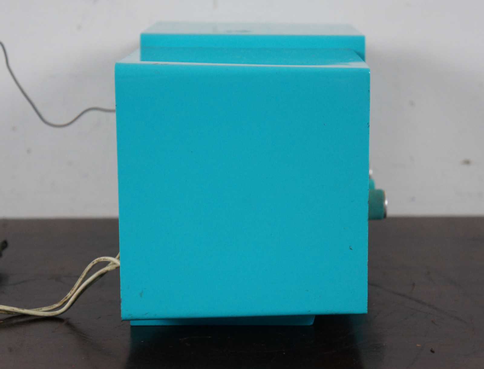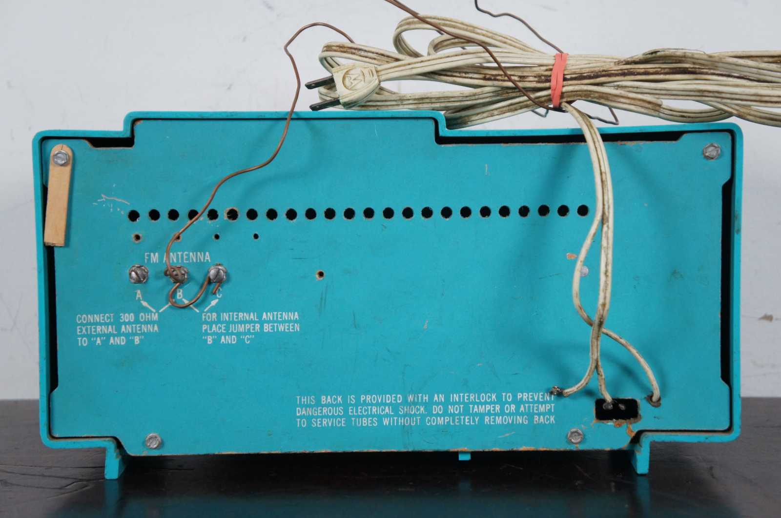 Vintage mid century modern 1961 Motorola B1J radio in vibrant turquoise.