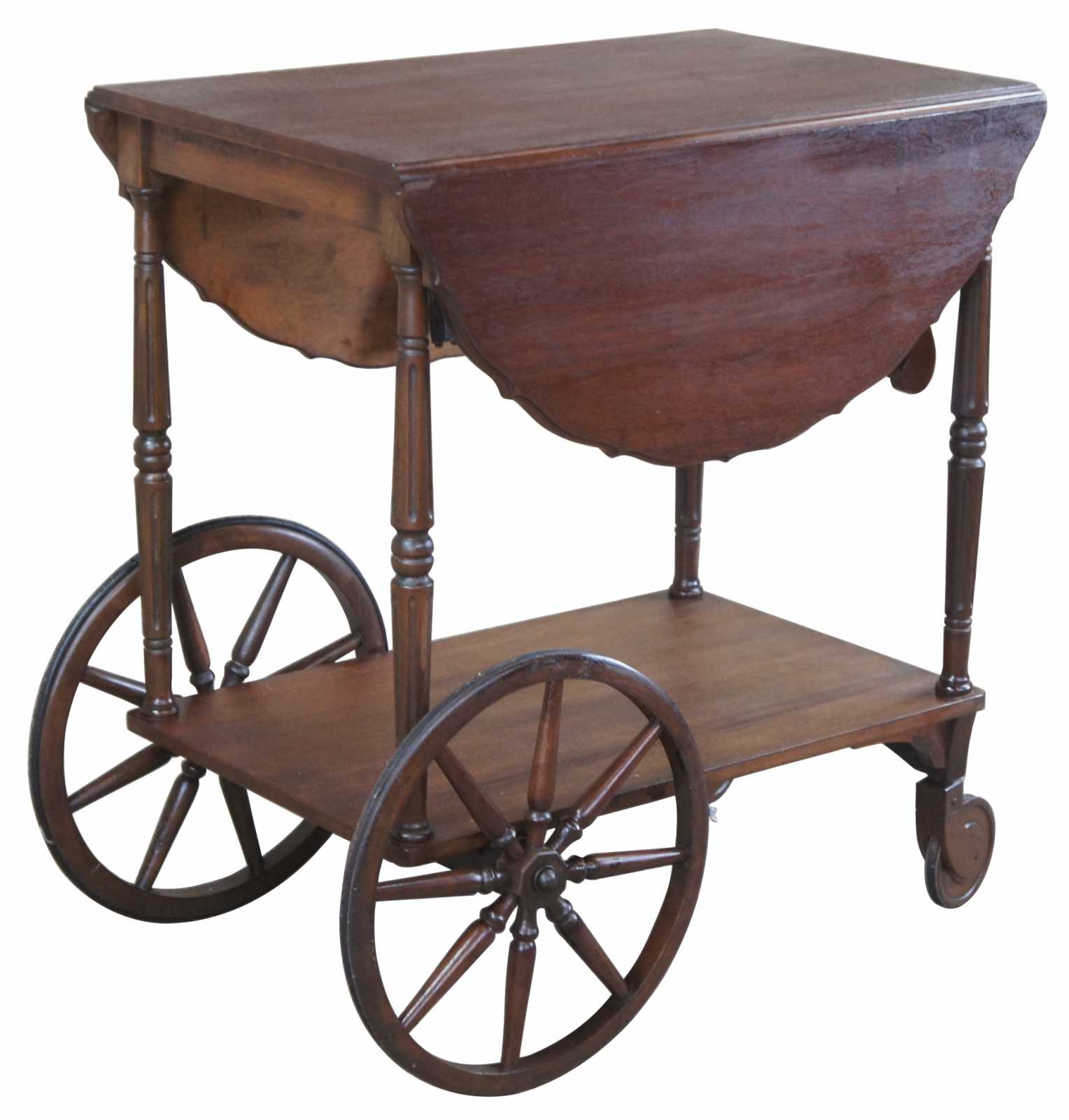 Circa 1970s Hammary tea wagon or cart #22229. Features French Louis XV / Provincial styling with scalloped top, drop leaves and large wheels and castors.