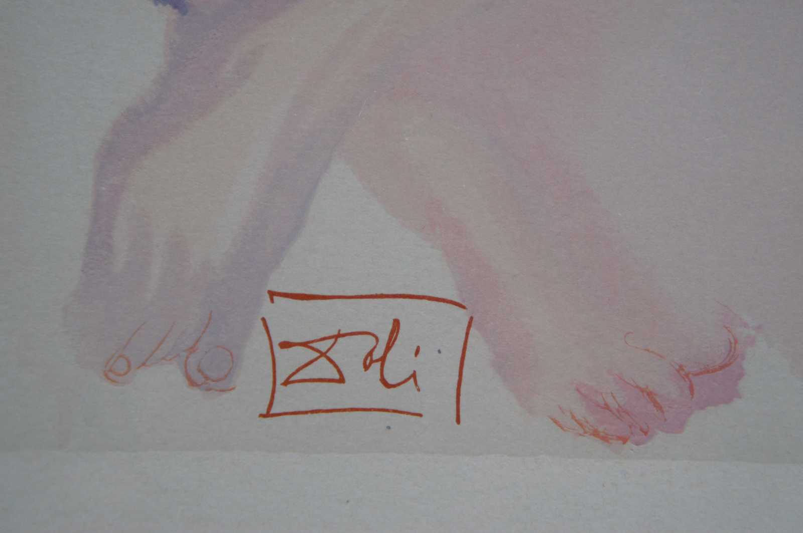 Framed original woodcut artist’s proof print on BFK Rives paper, pencil signed lower left by Salvador Dali – Plate 37 – Chant/Canto 3 – from Le Purgatoire (Purgatory) – “Les Indolents” (The Indolents) from the “Divine Comedie” series. Original certificate of authenticity covered 10 separate prints – photocopy included.