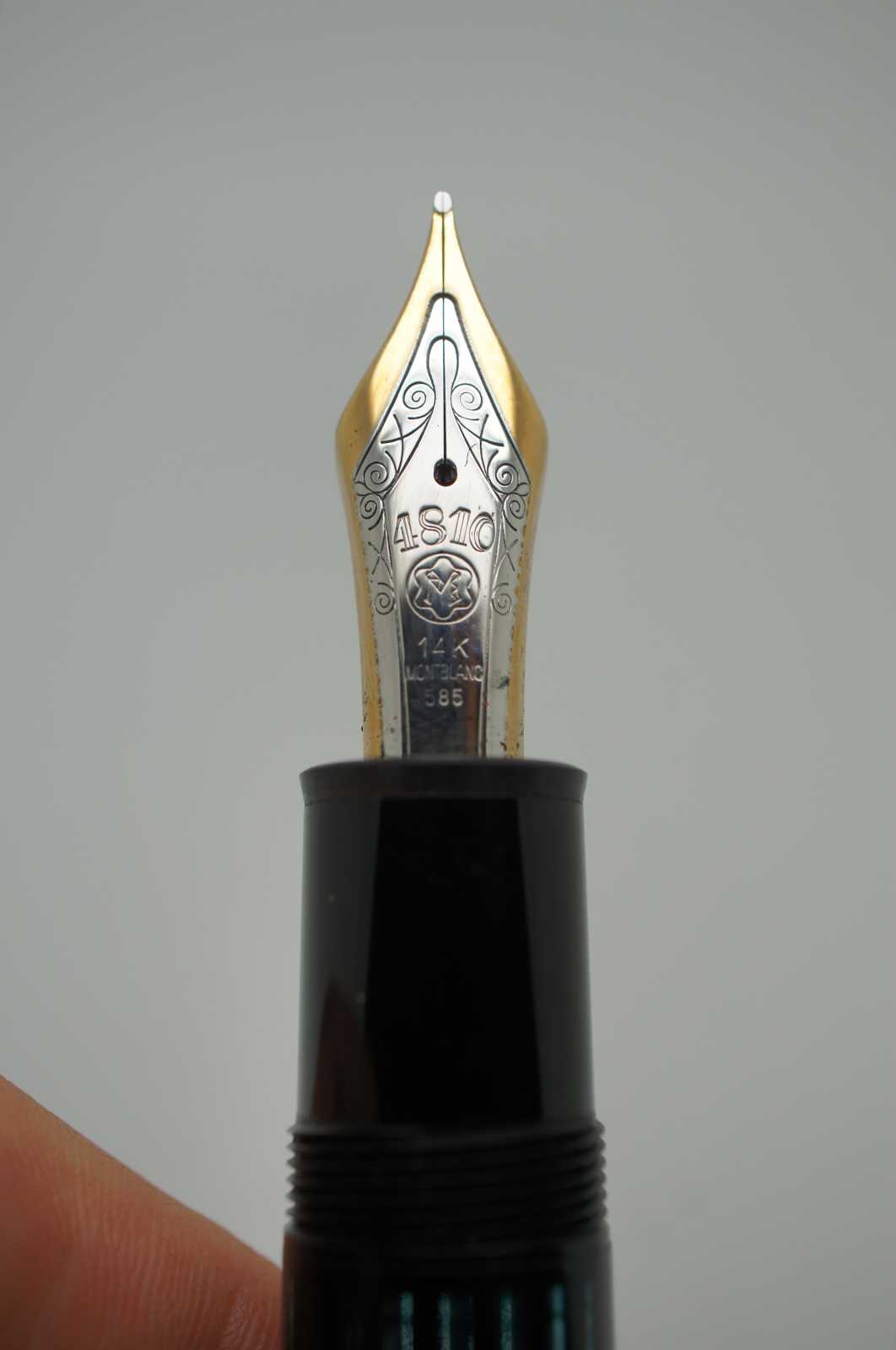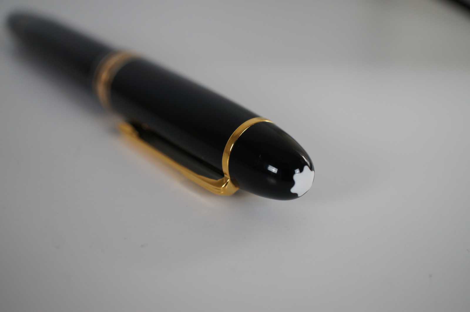 Vintage Montblanc Meisterstuck No 149 black reservoir style fountain pen with two tone 4810 14K gold 585; includes box.