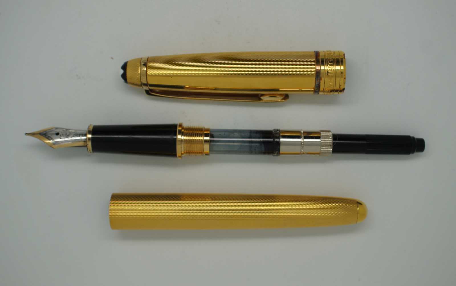 Vintage Montblanc Meisterstuck Solitaire Barley cartridge filled fountain pen with 4810 14K Gold 585. Serial number GB201206. Made in Germany. Two partial packages of Black & Royal Blue ink cartridges included.