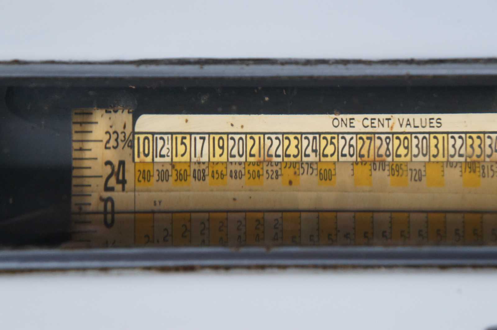 Vintage white enameled Dayton Scale Division meat scale, made at the Hobart Manufacturing Company, style 970, 30lb capacity.