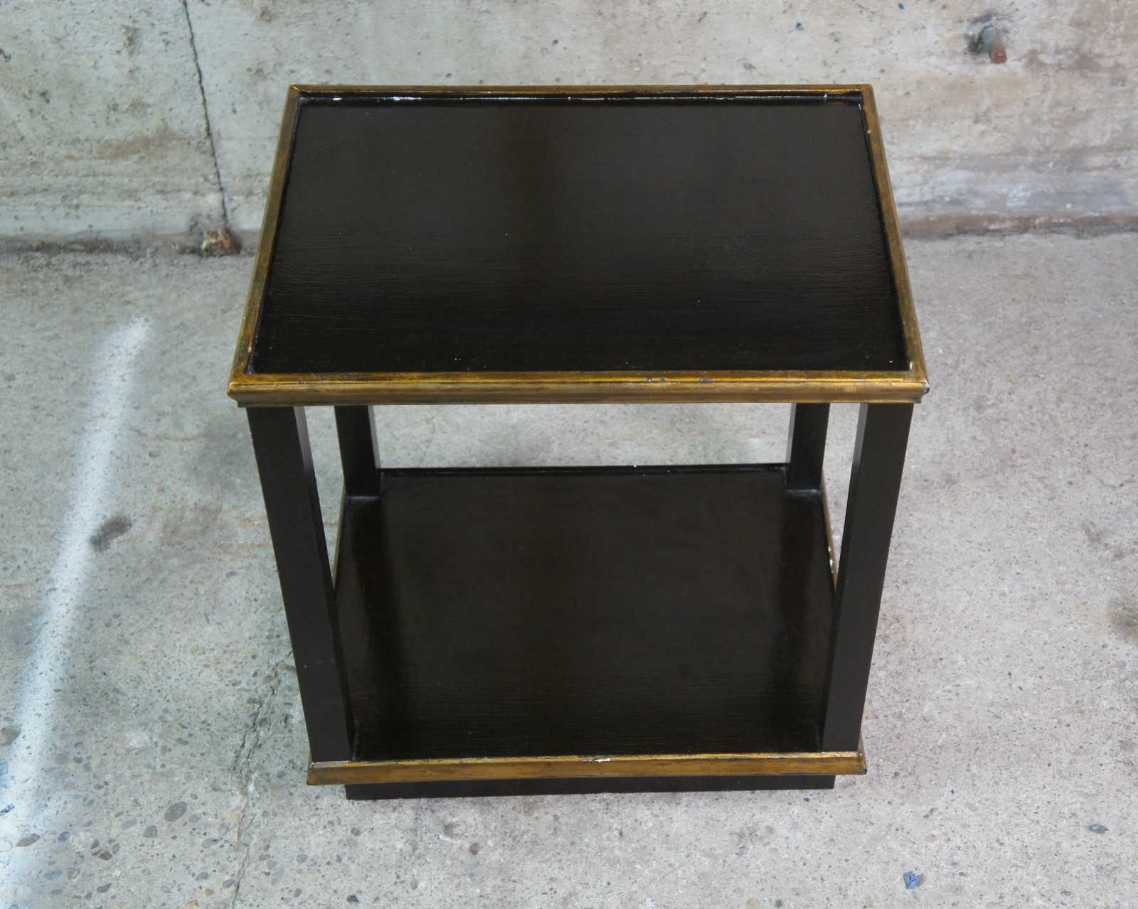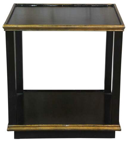 Late 20th century Black & Gold Accent Table. Rectangular form with platform base and two tieres for display.