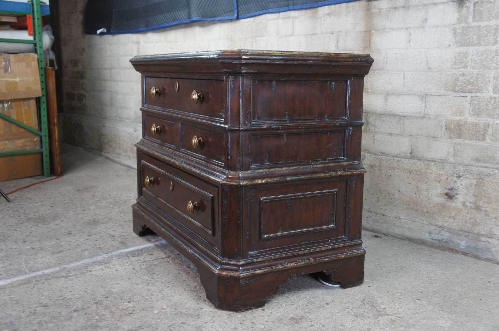 Vintage Marge Carson Bordeaux Collection nightstands. Made of wood featuring baroque / rococo styling with inset marble tops and brass hardware.