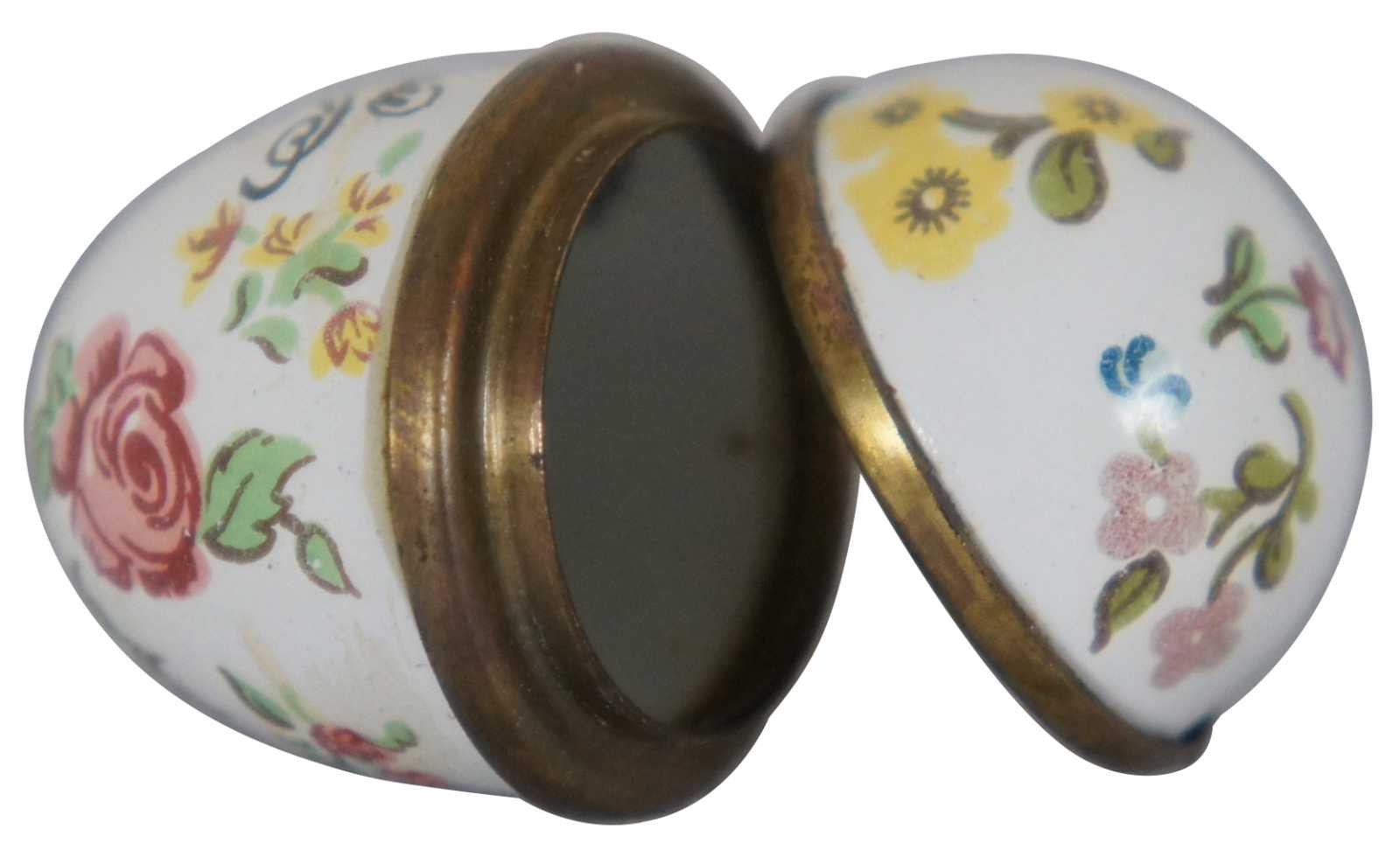 Bilston & Battersea Enamels Halcyon Days Mini Floral Limoge Egg Trinket Pill Box