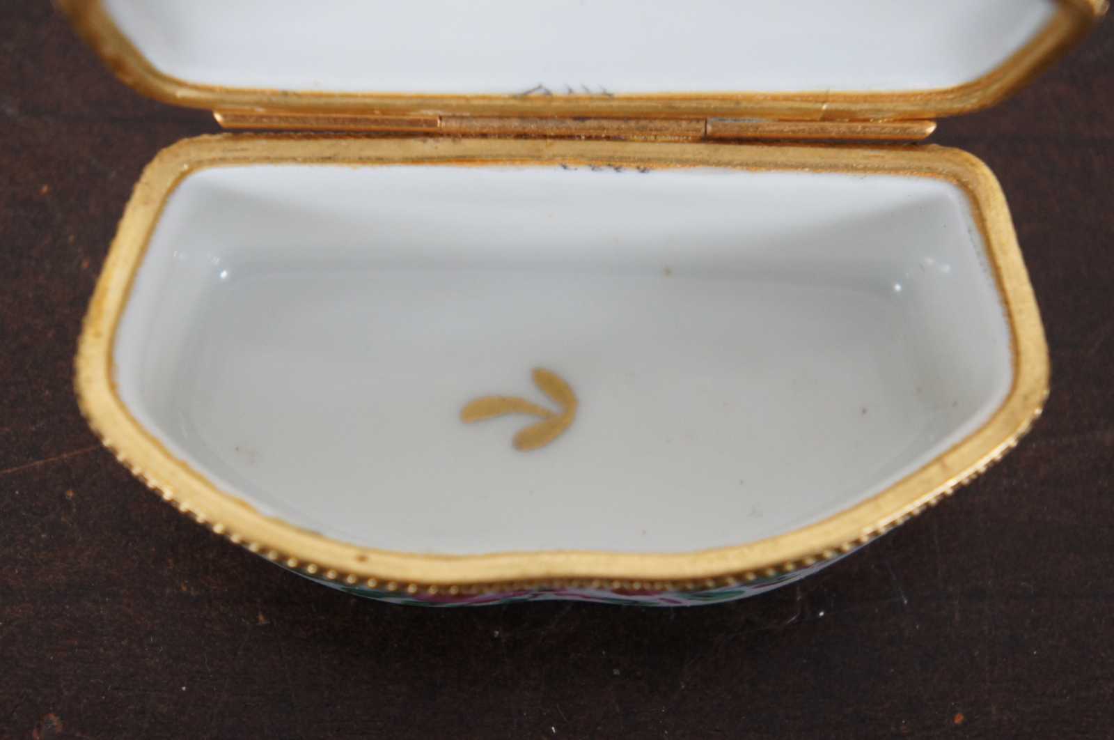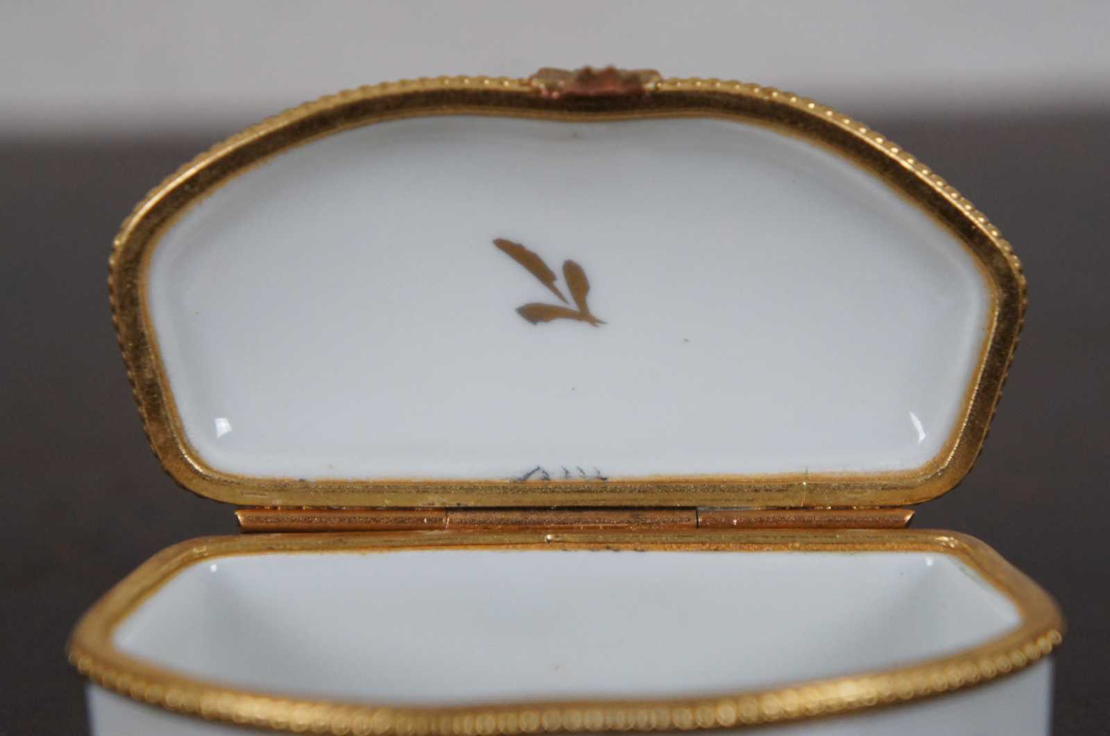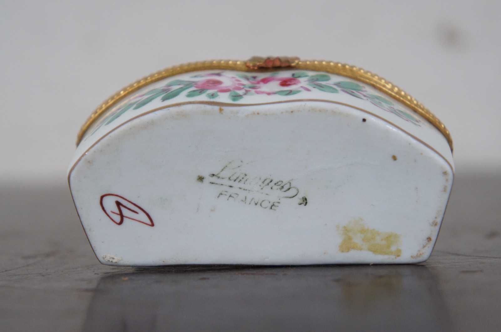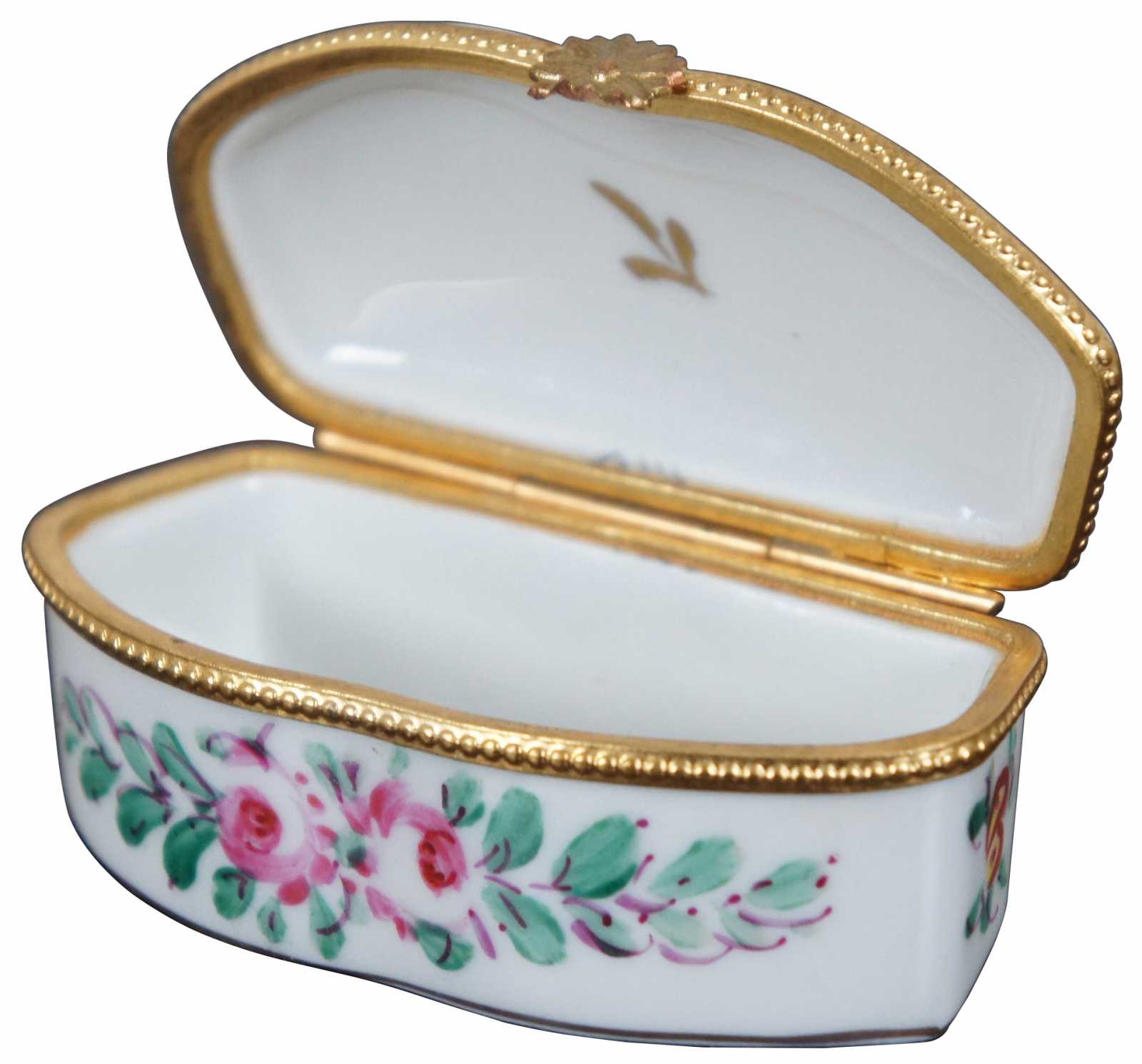 Vintage Limoges French hand painted porcelain trinket or pill box with flowers and the phrase “Vivre a Deux C’est Deux Fois Vivre” (Living Together is Twice Living).