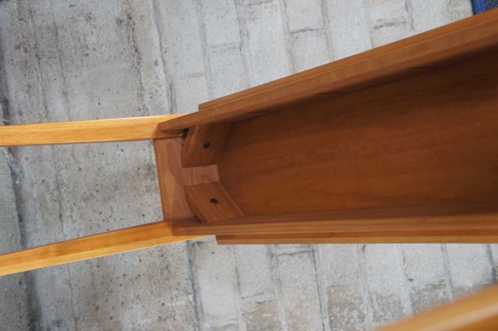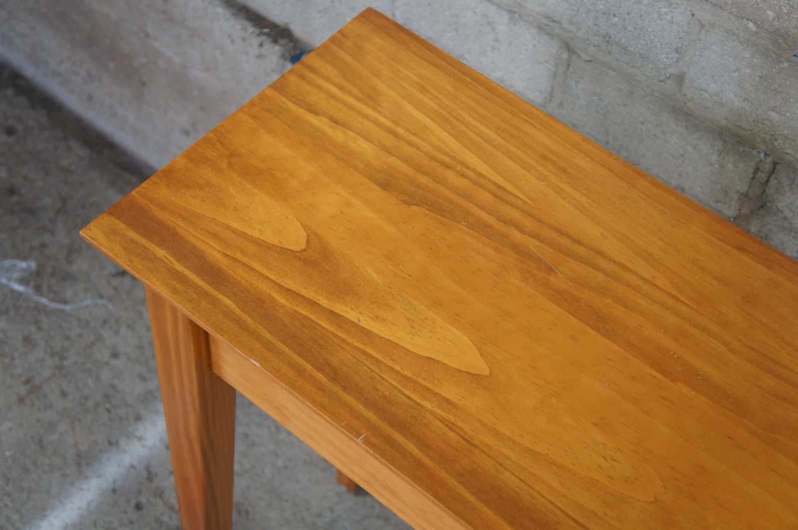 Vintage sofa or console table. Made of maple featuring shaker styling with rectangular top and tapered legs.