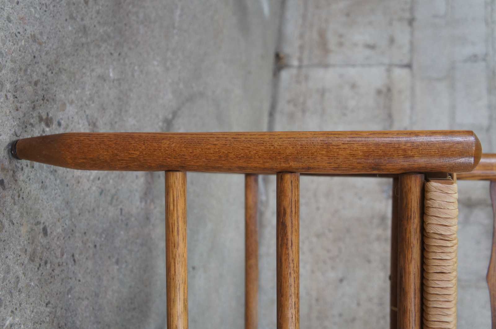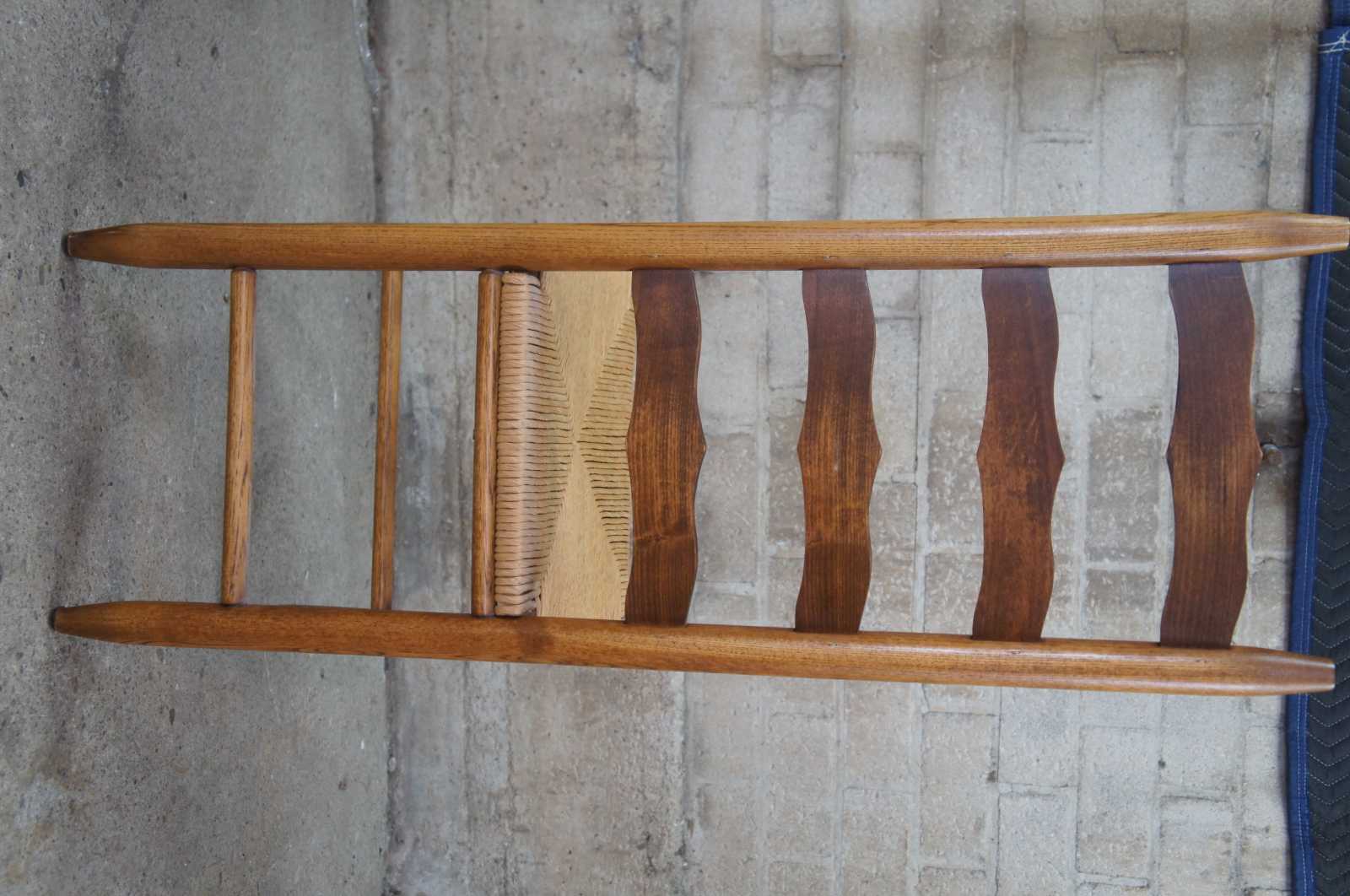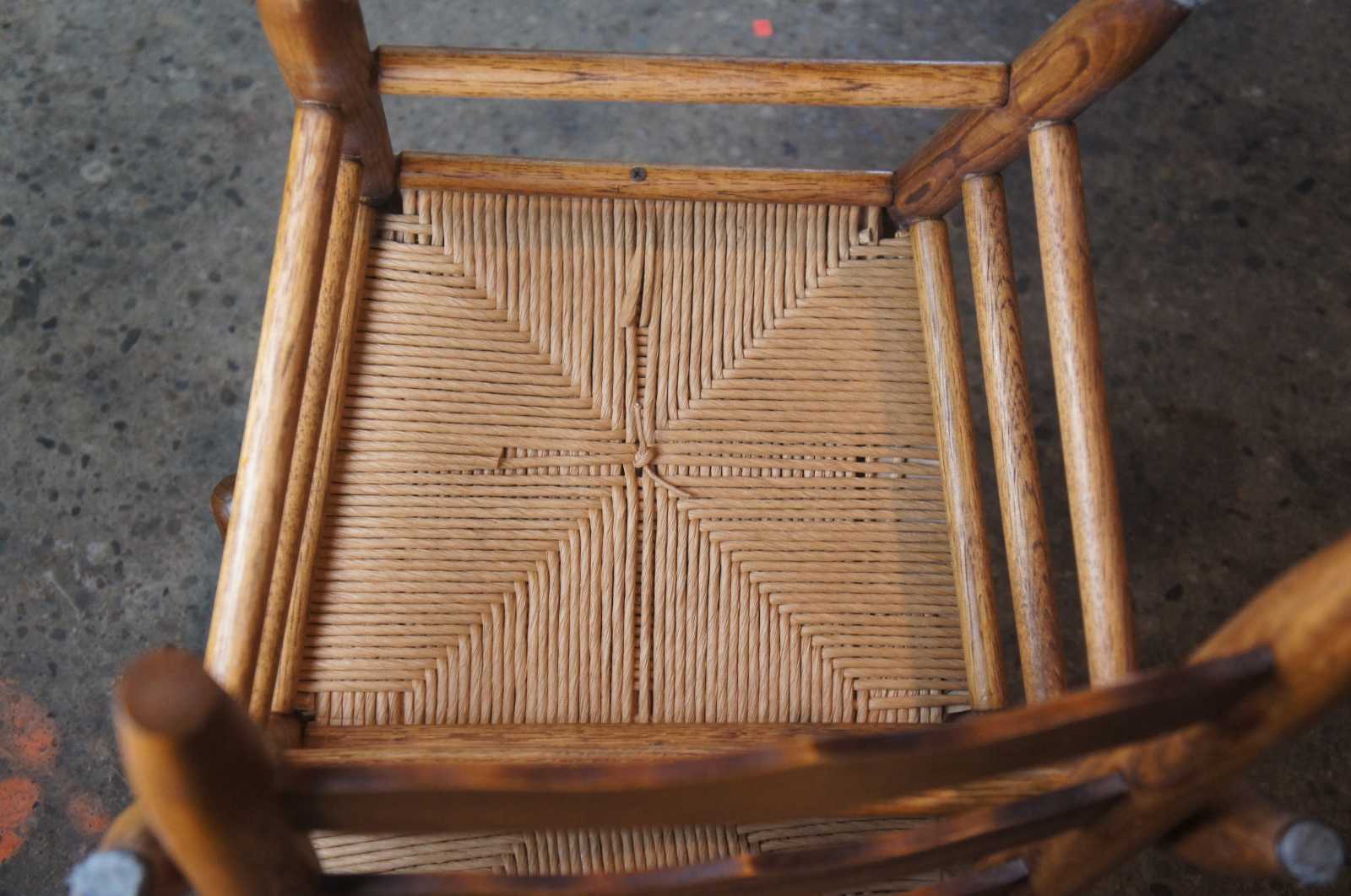 Pair of two ladder back side dining chairs. Made of oak featuring woven rush seats and tall ladderback with serpentine form.