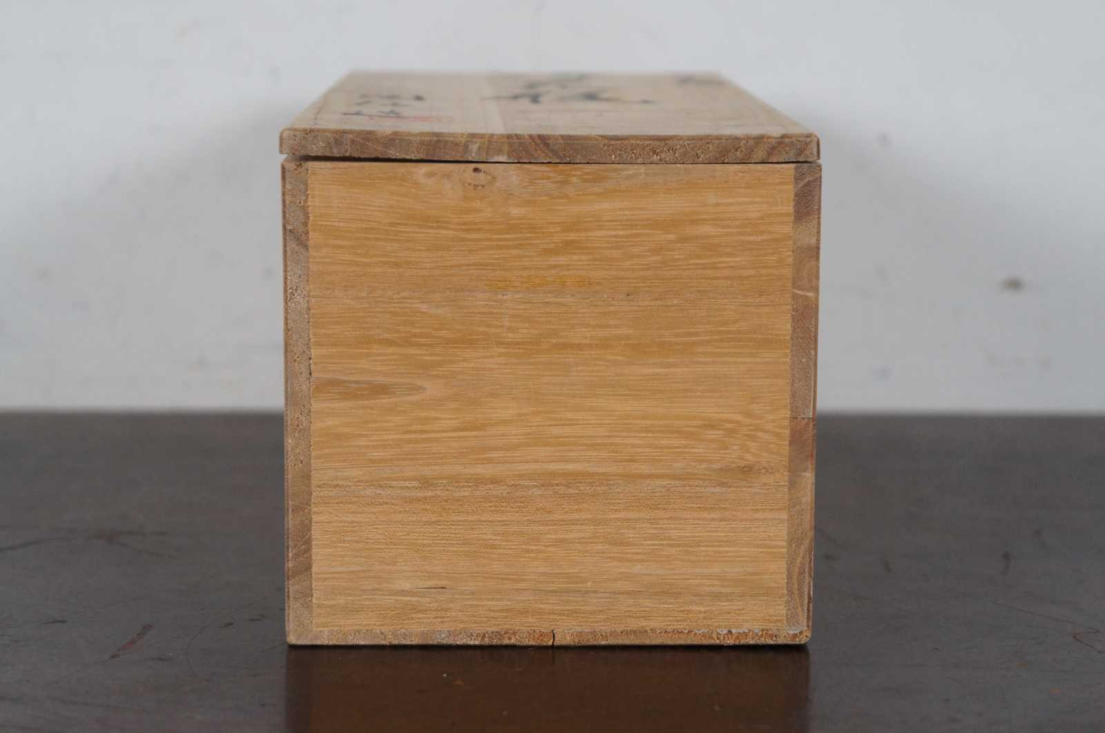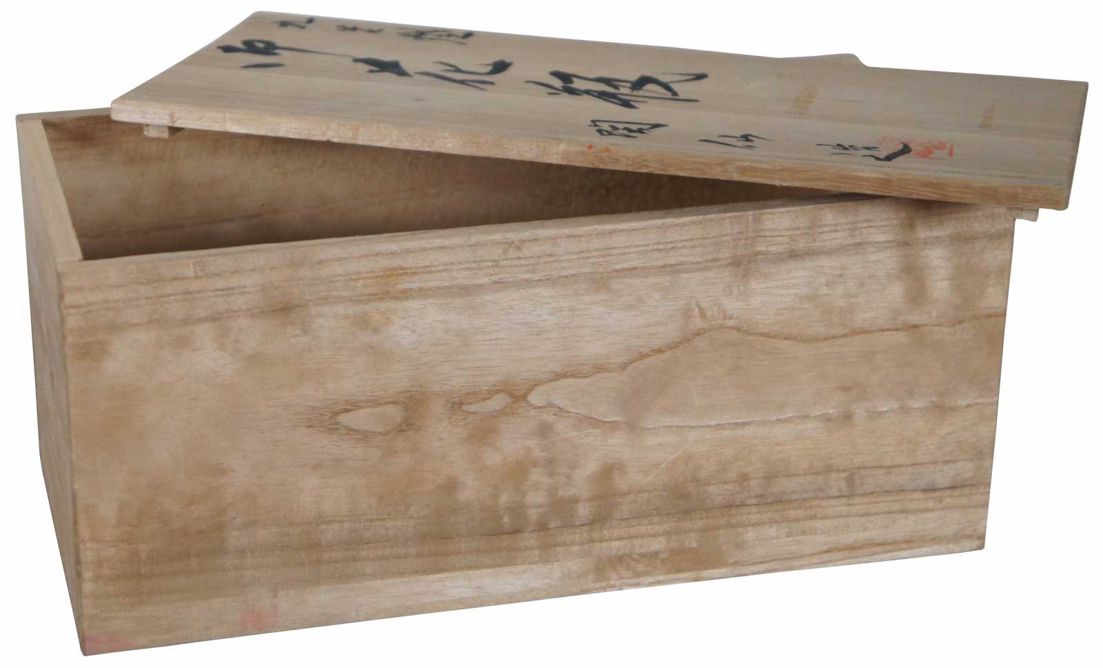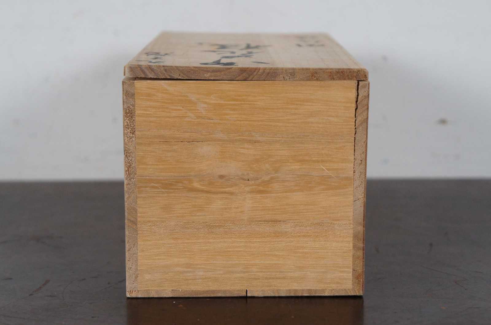 Vintage Japanese wooden keepsake box with calligraphy on the lid.