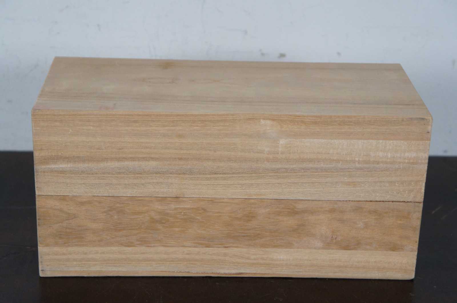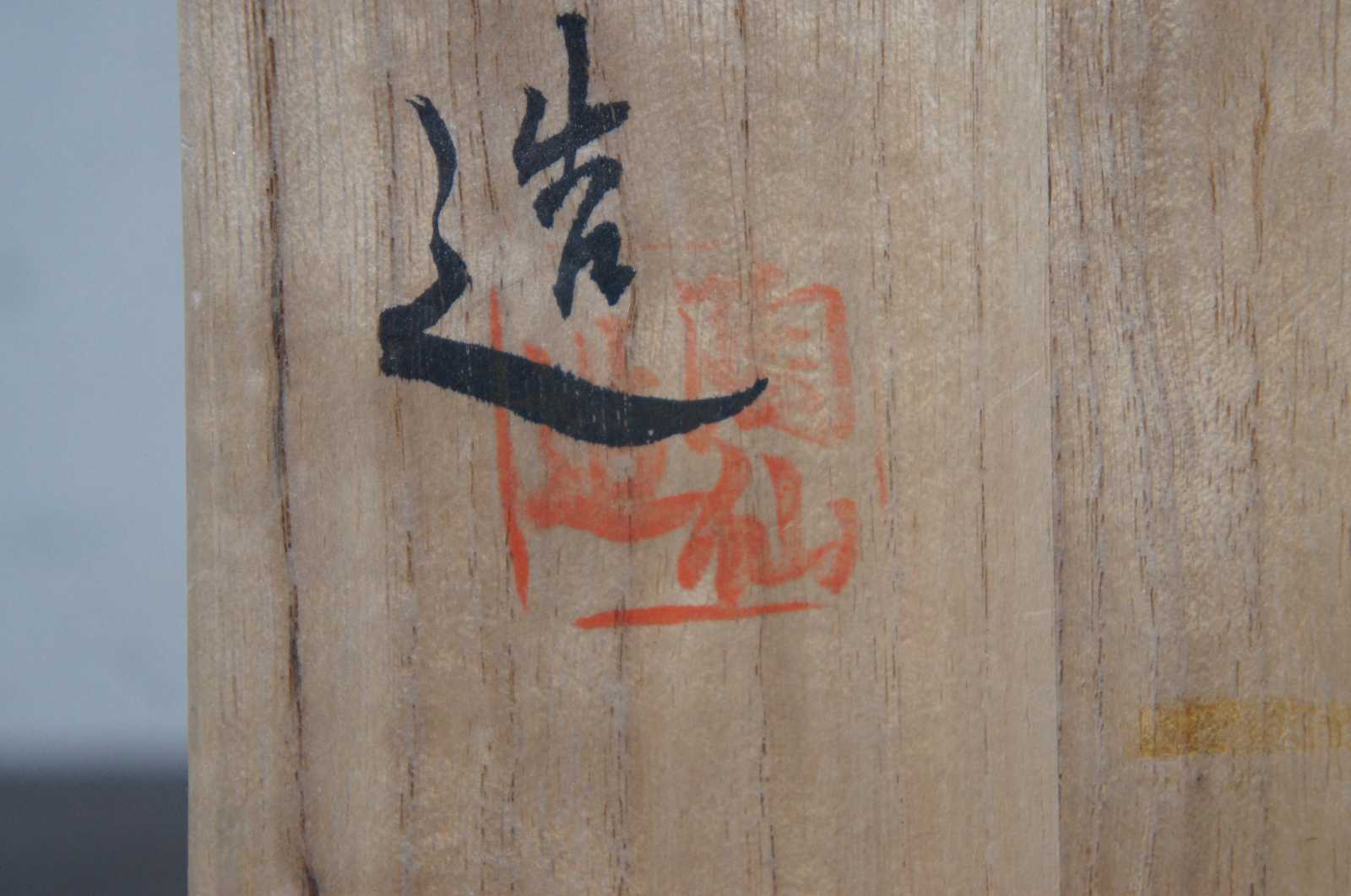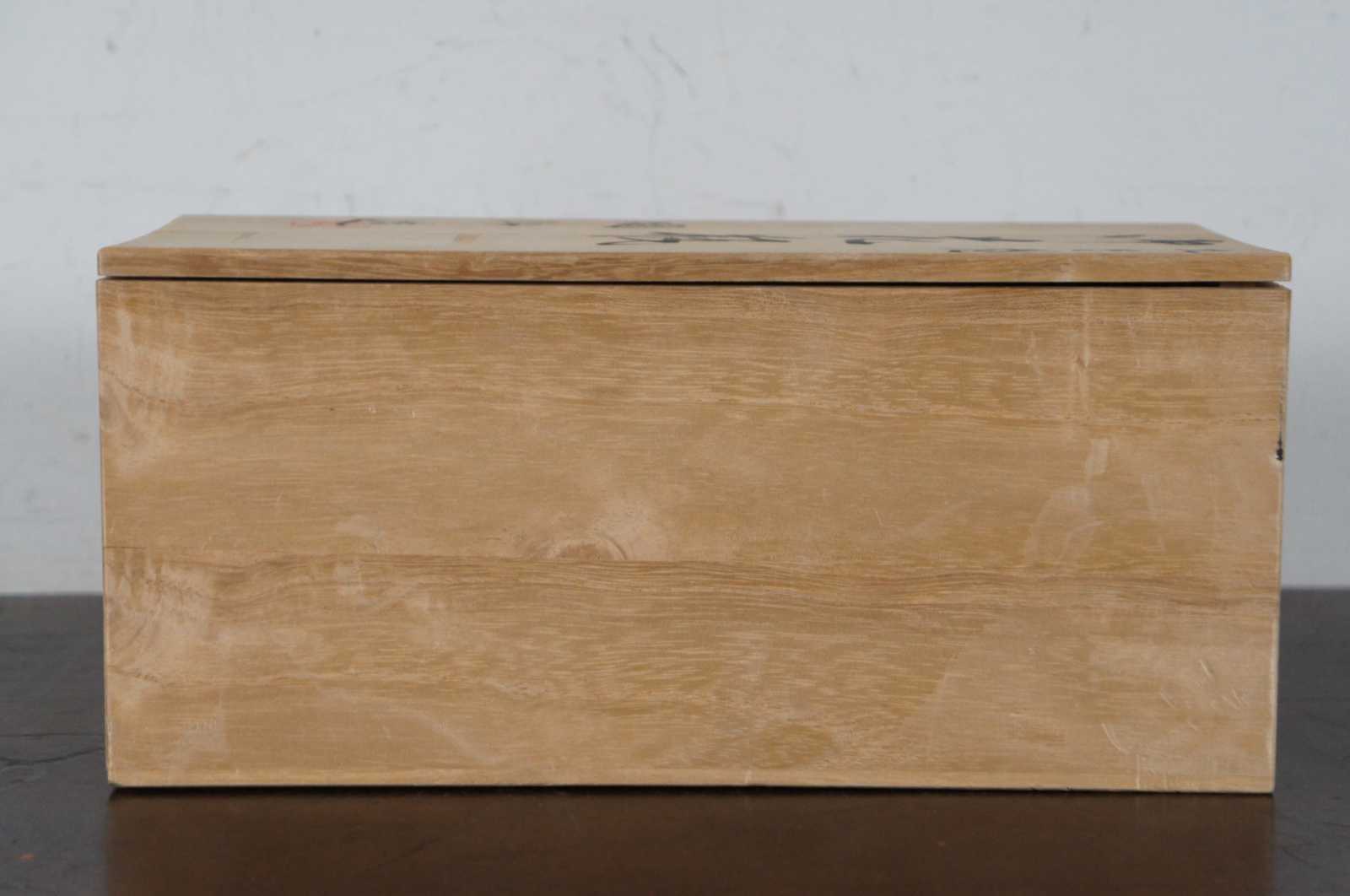 Vintage Japanese wooden keepsake box with calligraphy on the lid.