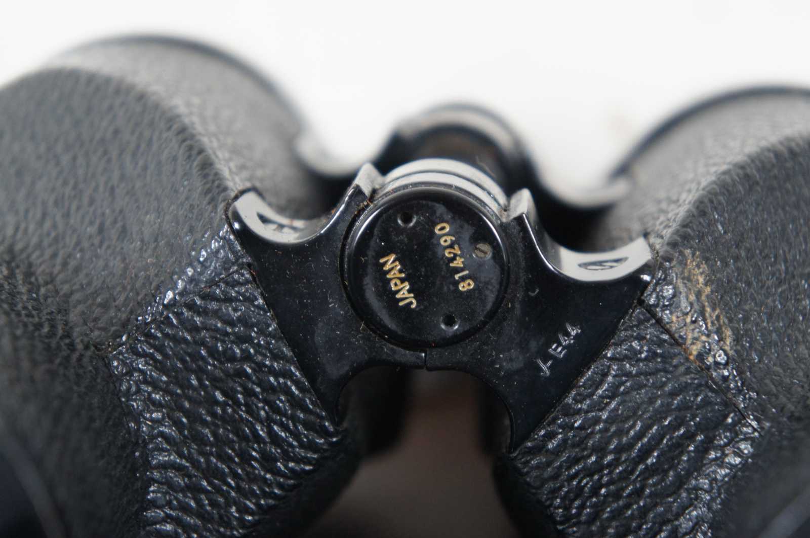 Vintage Nippon kogaku Tokyo J-B7 A series binoculars or field glasses, 7x50 7.3 degrees Coated lenses, with original brown leather case, labeled by previous owner. 814290.