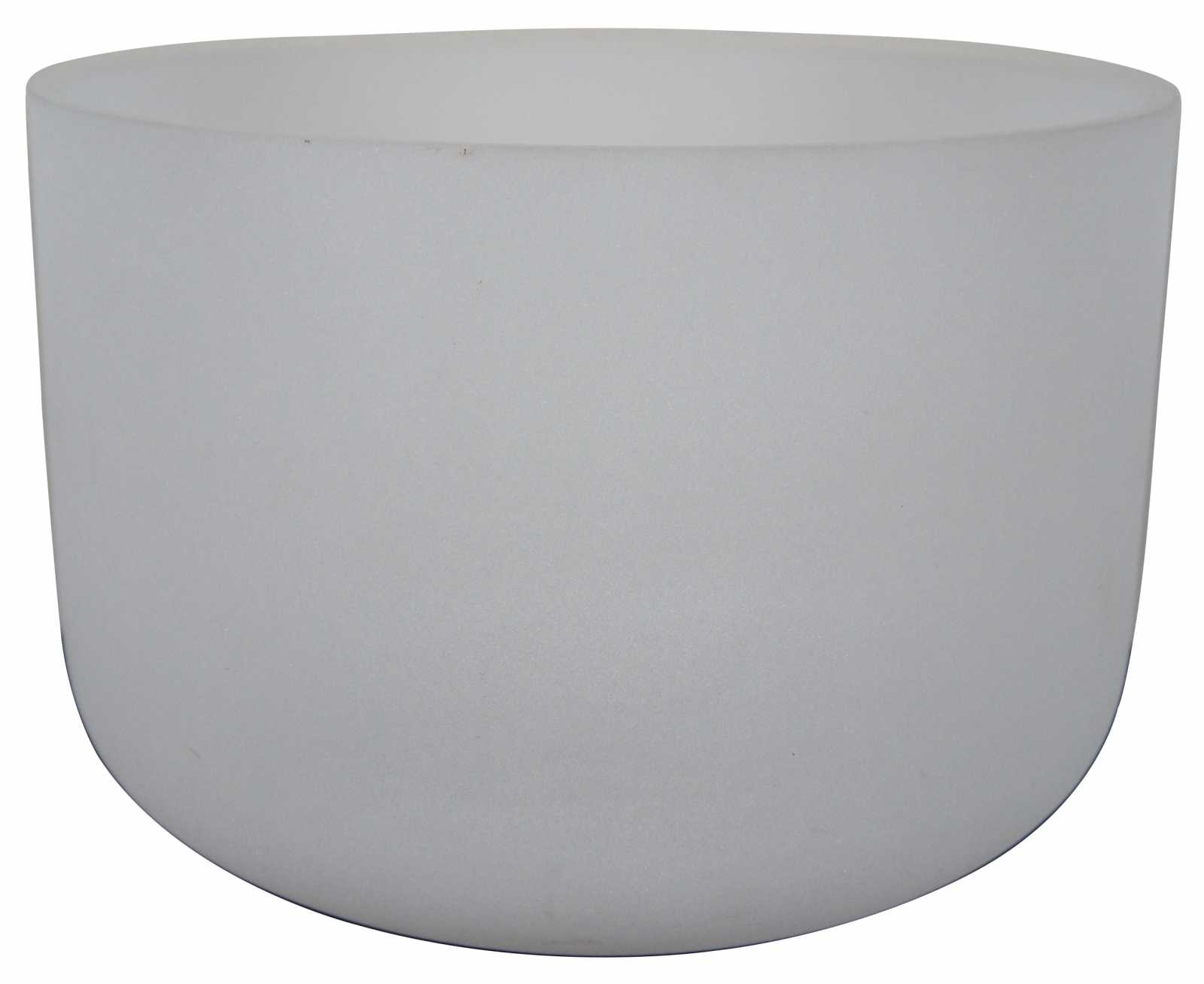 Crystal Tones frosted quartz crystal meditation singing bowl, playing the musical note D to resonate with the sacral shakra; includes rubber O ring stand and suede striker.