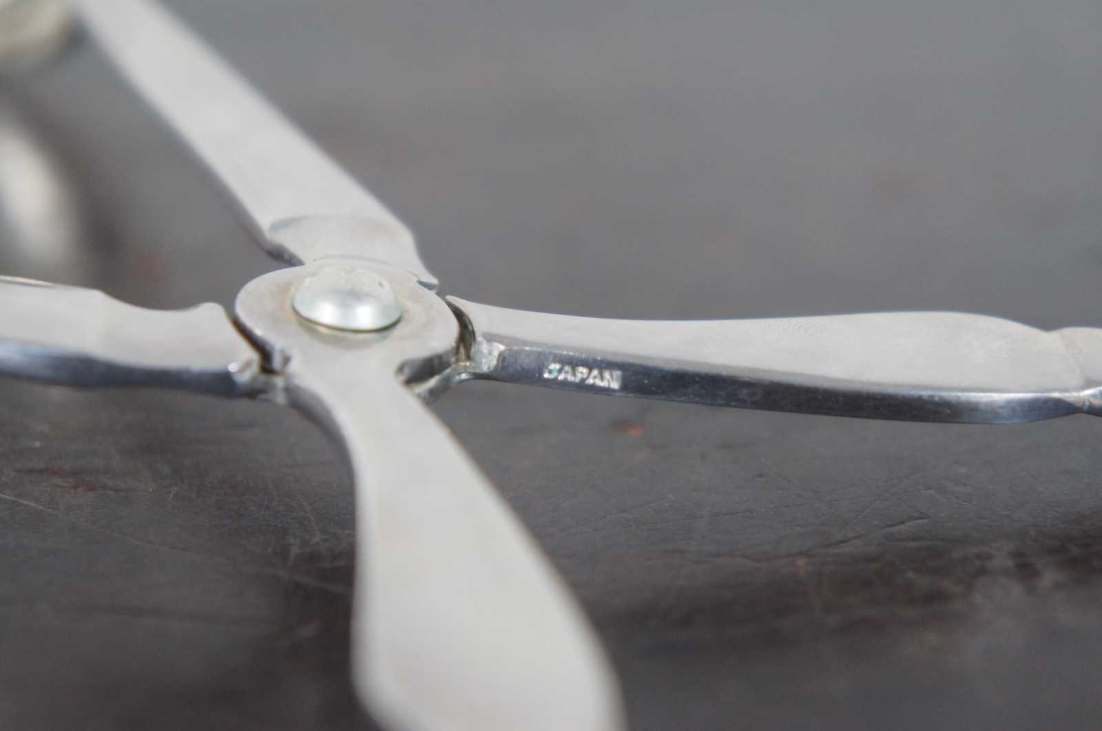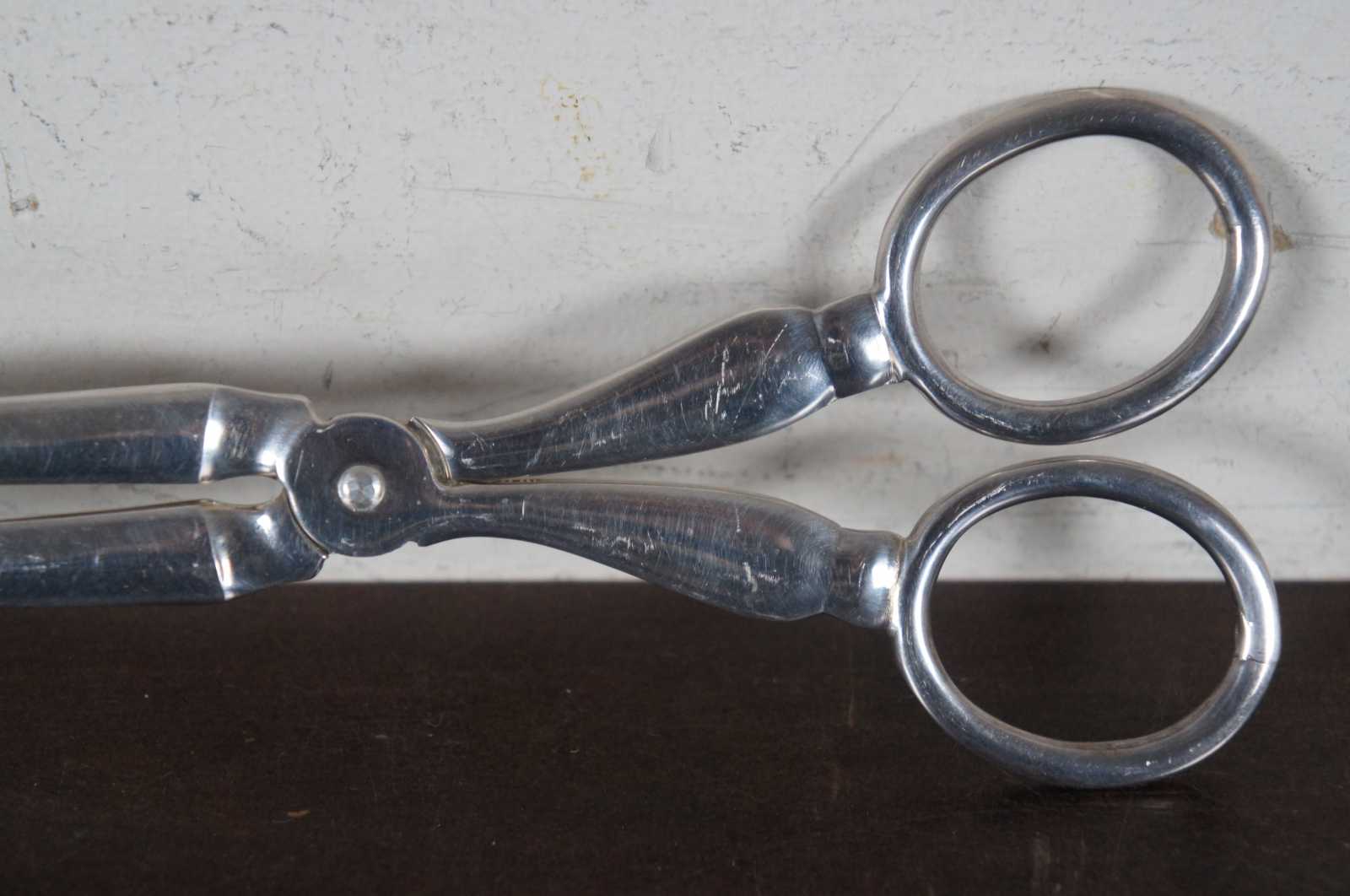 Vintage FB Rogers scissor style silver plate salad tongs and pouch.