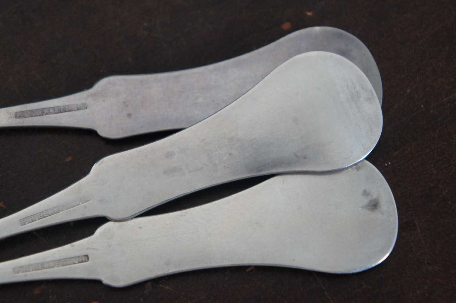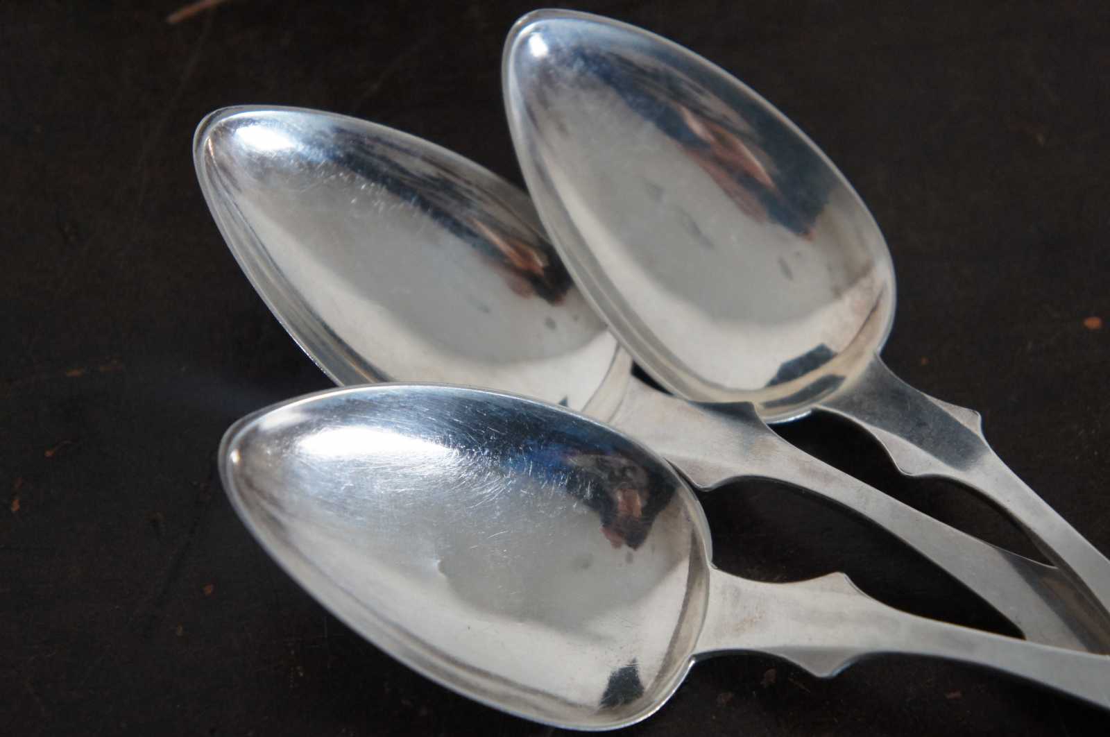 Set of three antique coin silver table spoons crafted by P.R. Bennett Jr, a mid 1800’s Ohio jeweler, monogrammed E.C.