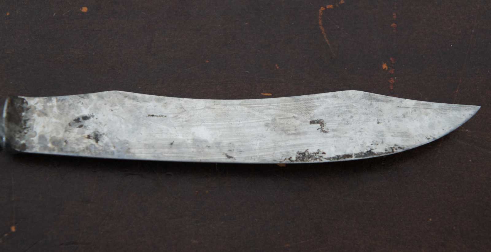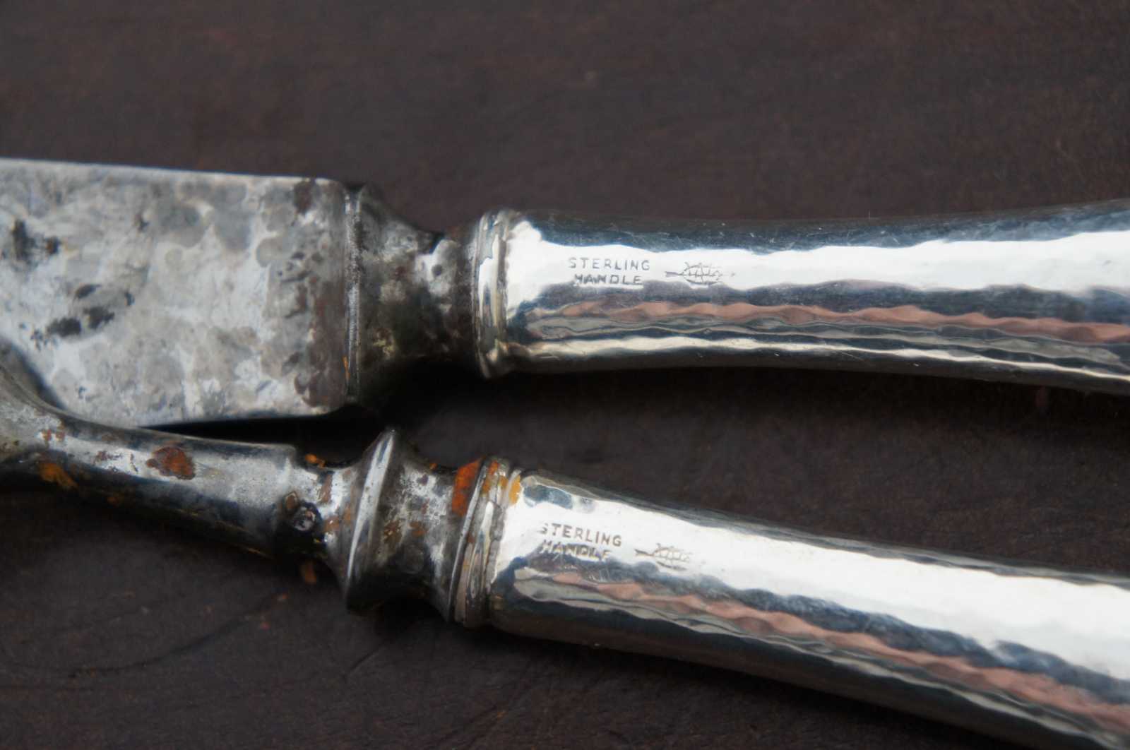 Vintage Webster Company carving knife and fork set with hammered sterling silver handles with shield accents and monogrammed with an F.