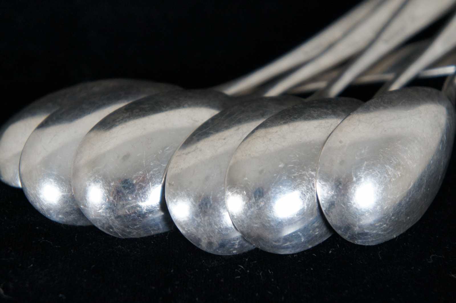 Set of six vintage Duhme & Co silver plate demitasse coffee spoons with lovely etched handles.