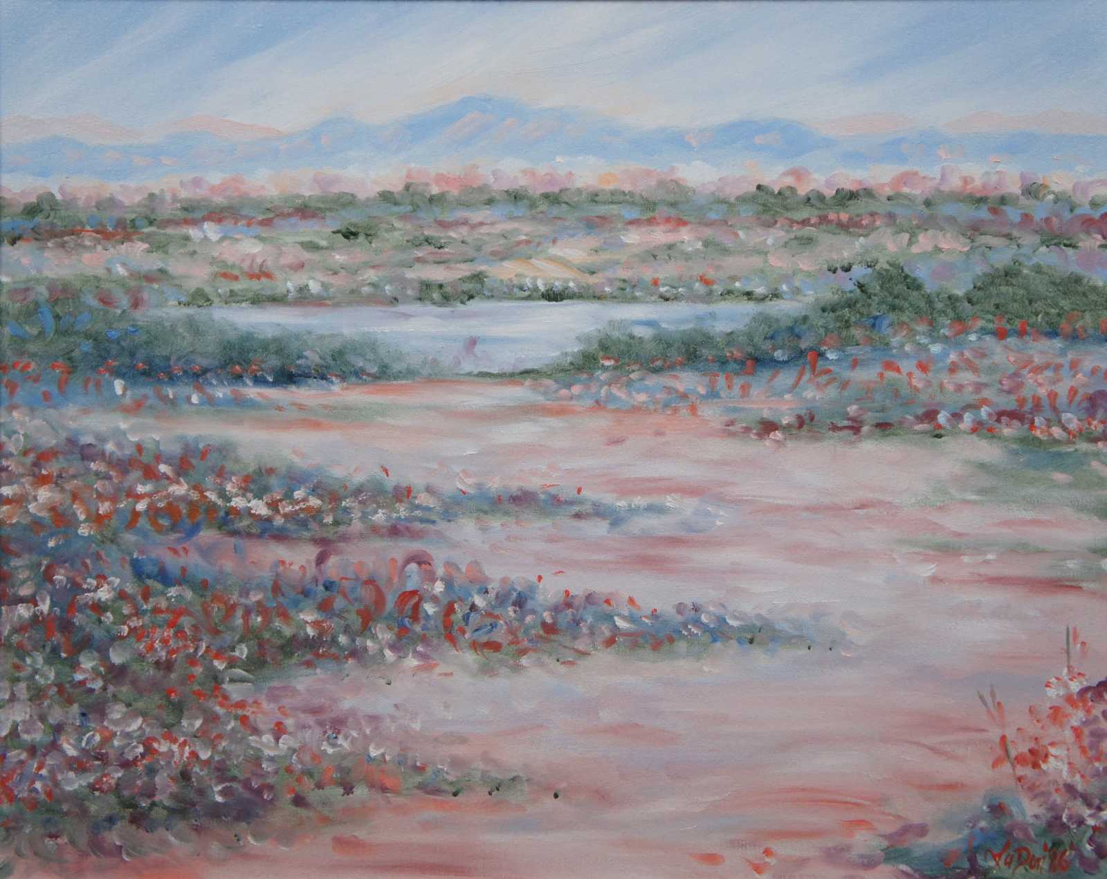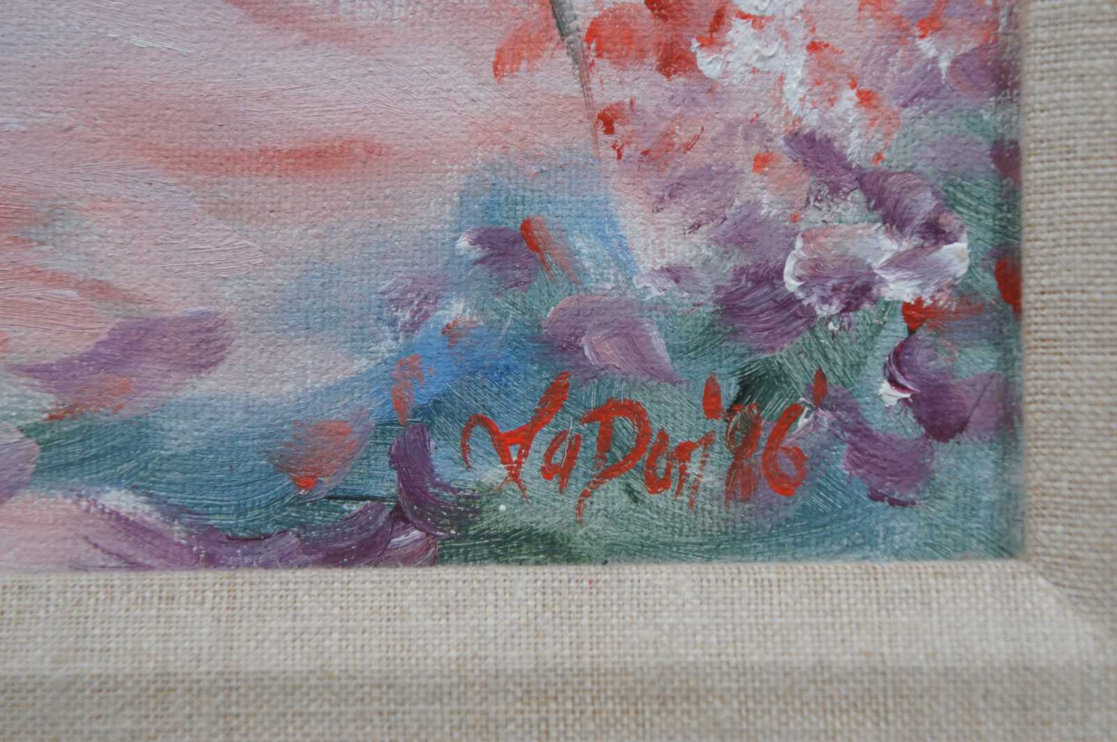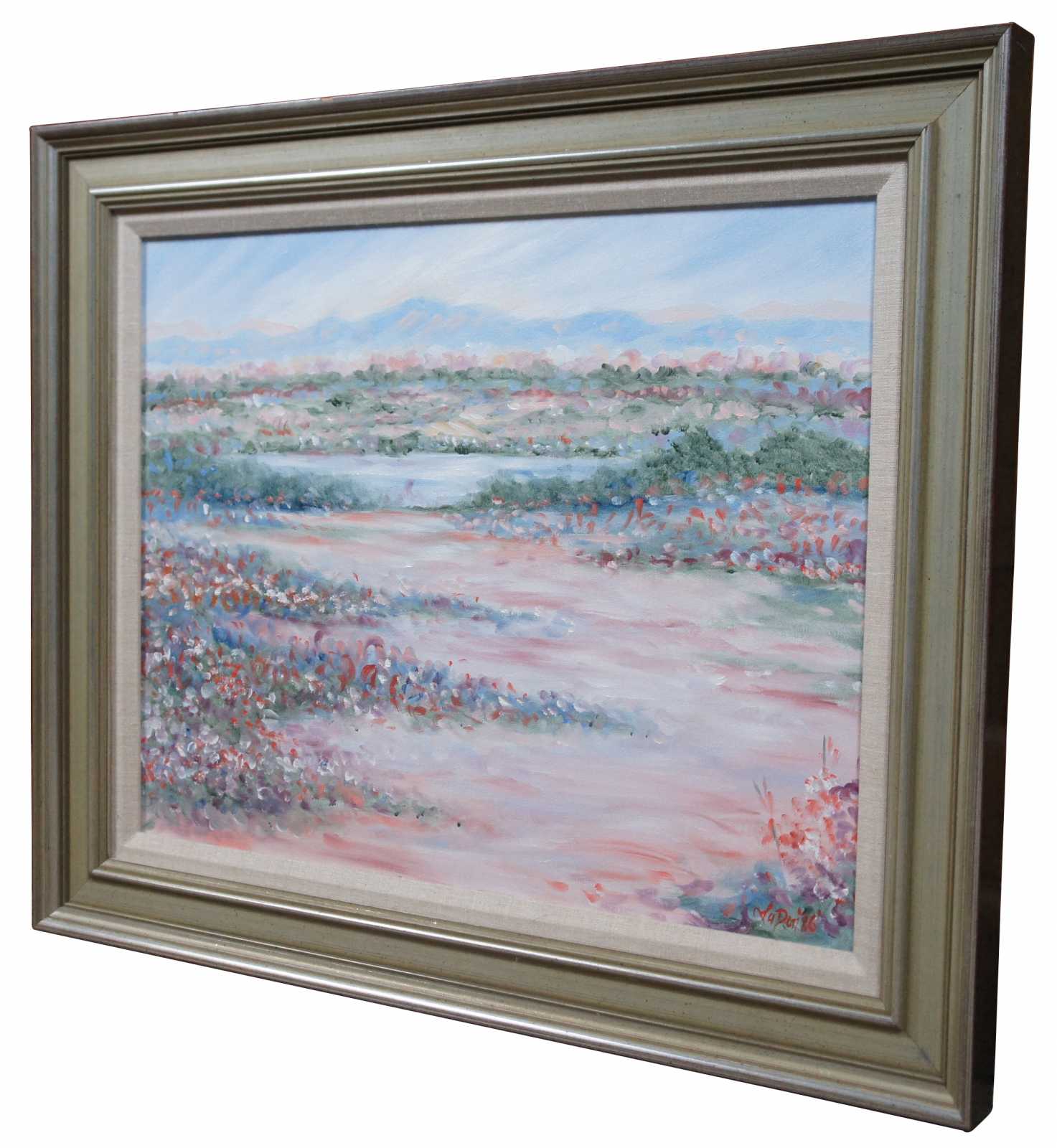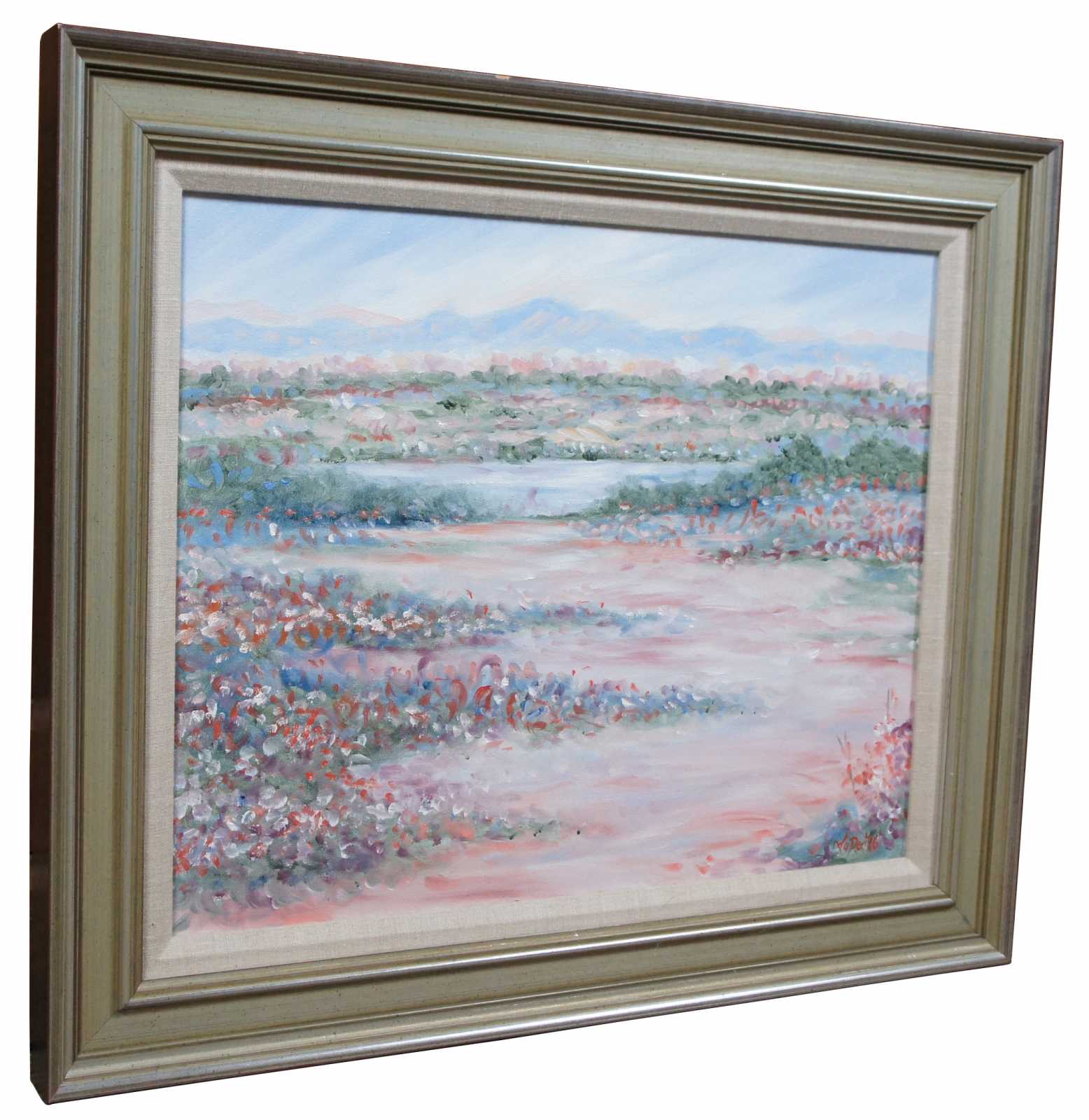 “Narrow Pathway” original oil on canvas painting by Theodore “la Don” Ferguson for Ethan Allen. Theodore “La Don” Ferguson was born in 1960 and raised in Oklahoma. He studied oil painting with Nettie Lintz, watercolor instruction with Betty Braig and received a B.A. in Fine Arts at Arizona State University. He has worked as a professional artist since graduation and has exhibited in juried art shows where he has won many honors. His work is included in many collections.